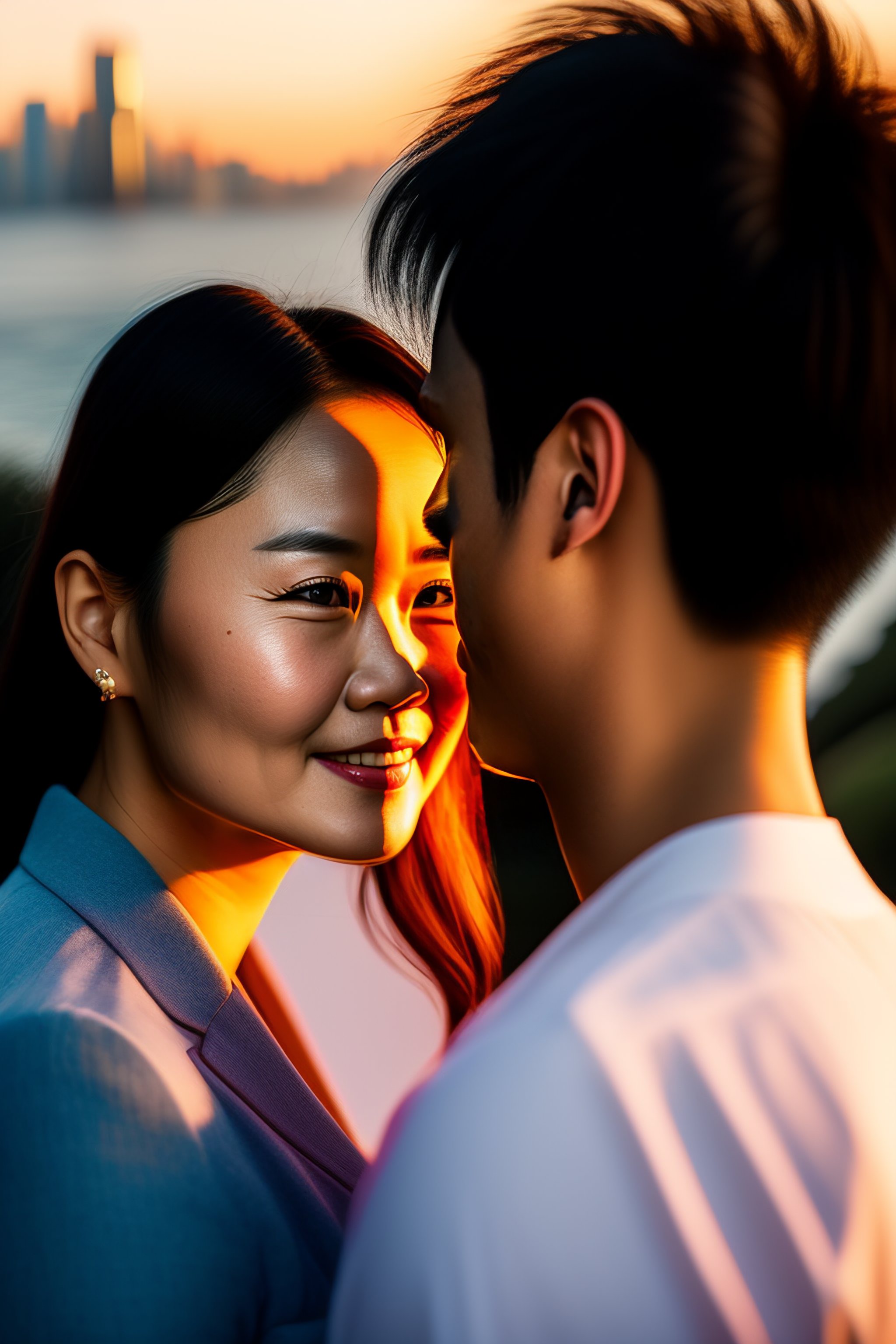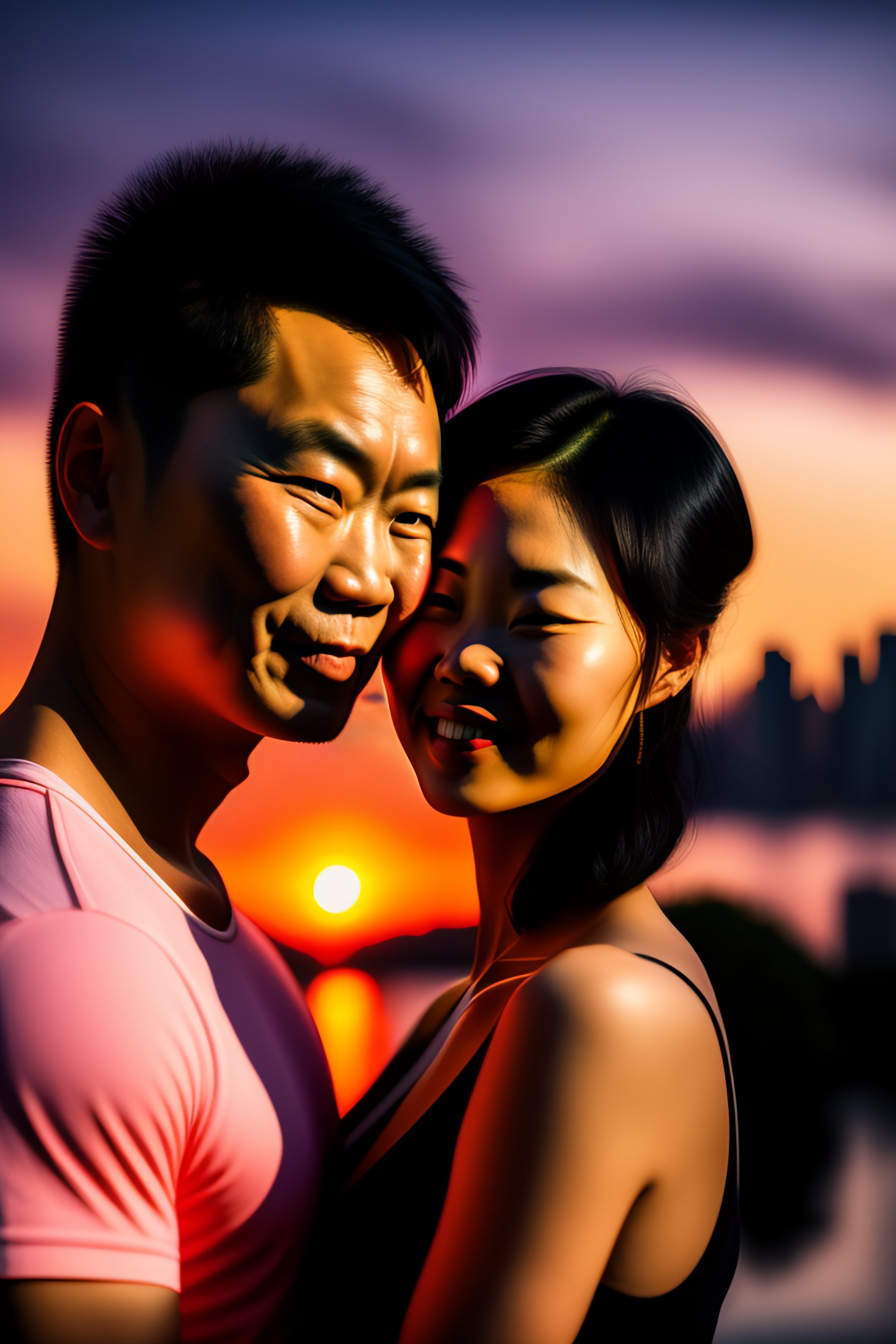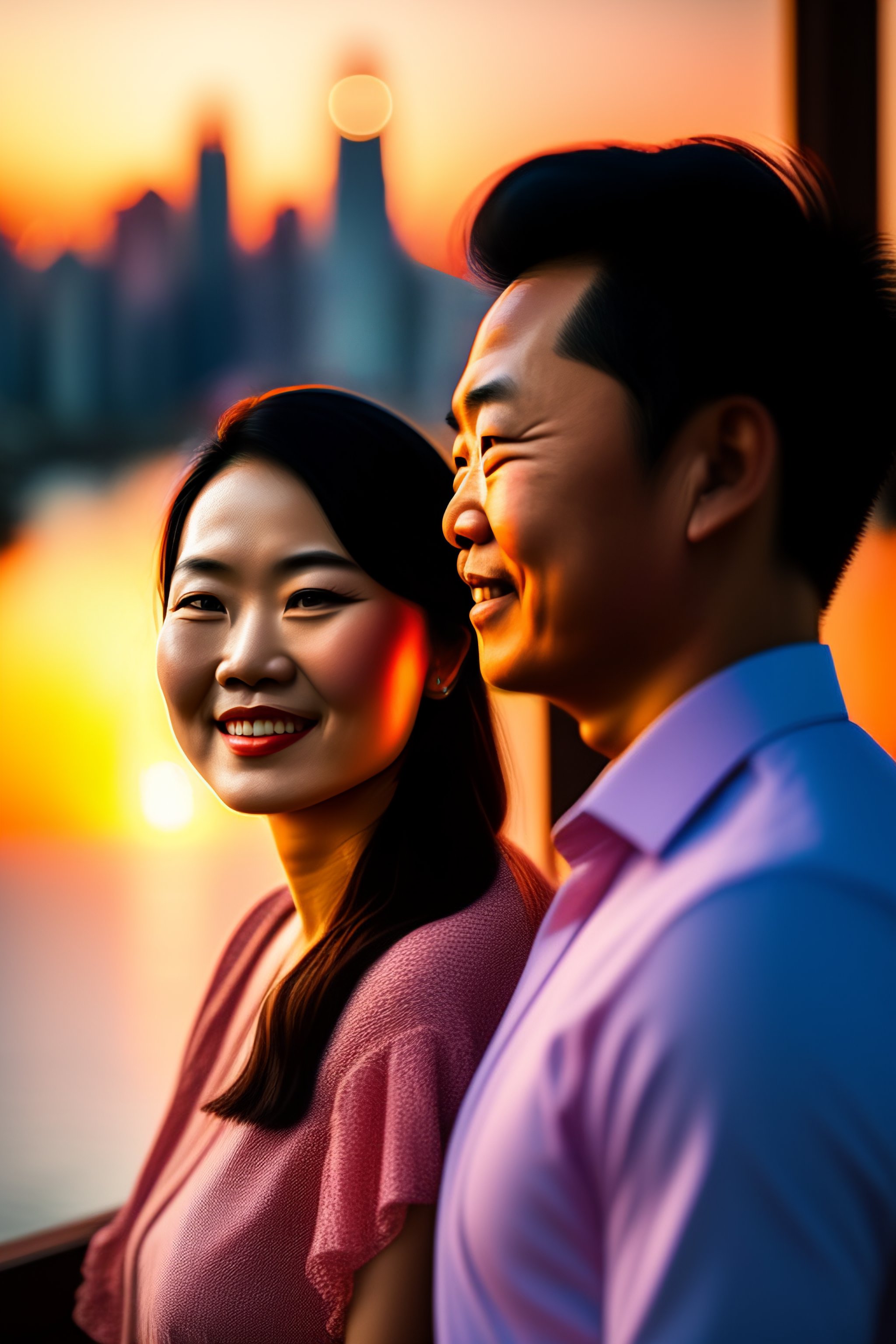 Portrait of a hong kong couple living in sydney australia on a beautiful day with sunset in the background