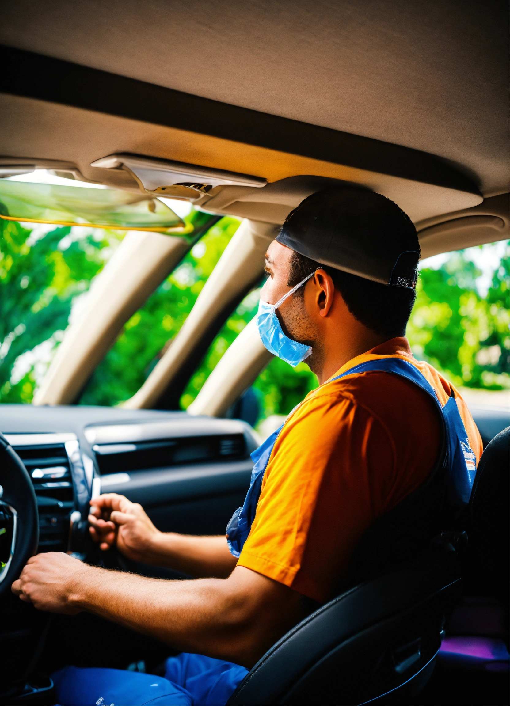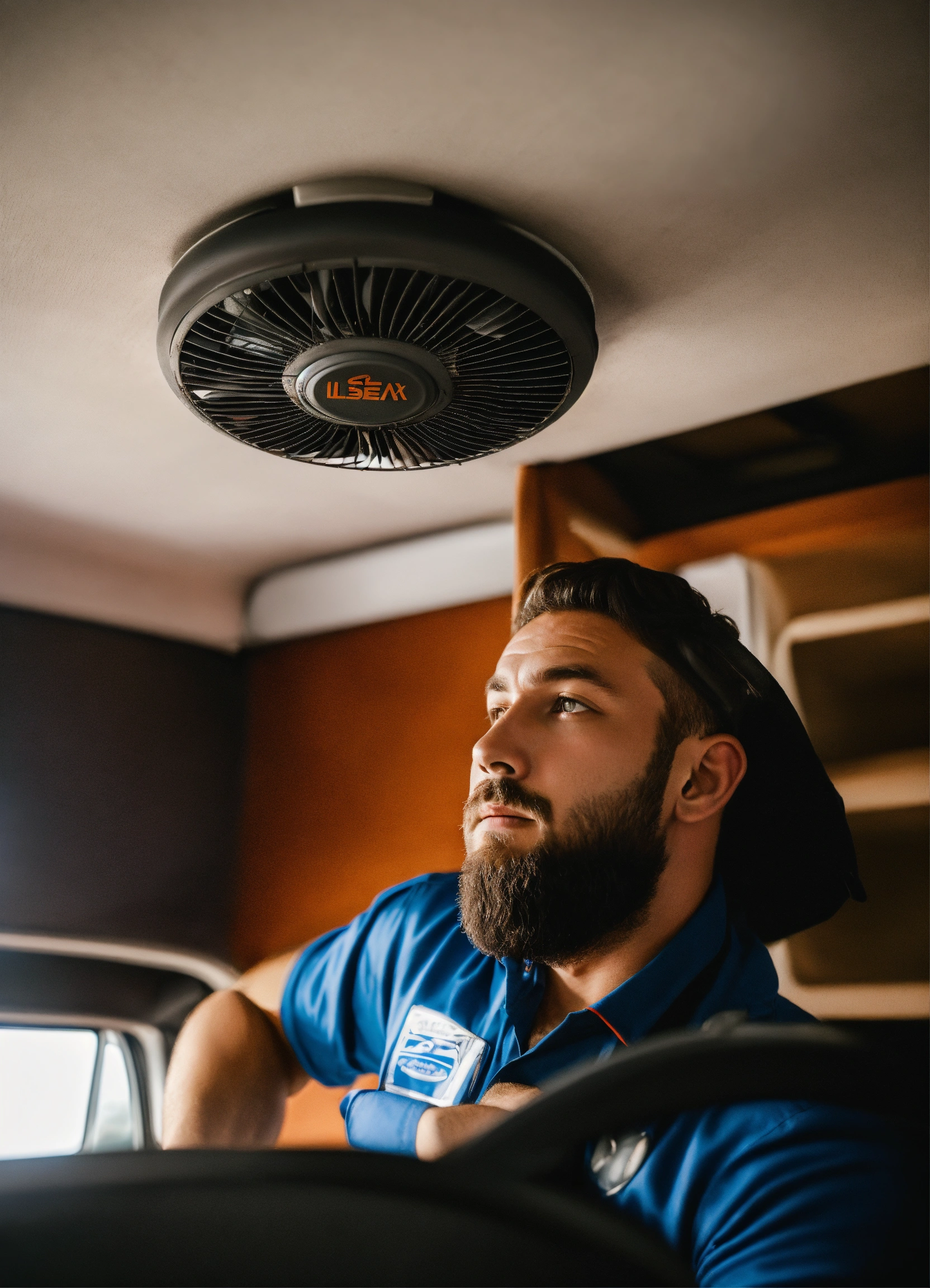 Un homme se sent mieux car la fraîcheur d'un ventilateur de plafond lui fait du bien il transpire car il fait chaud