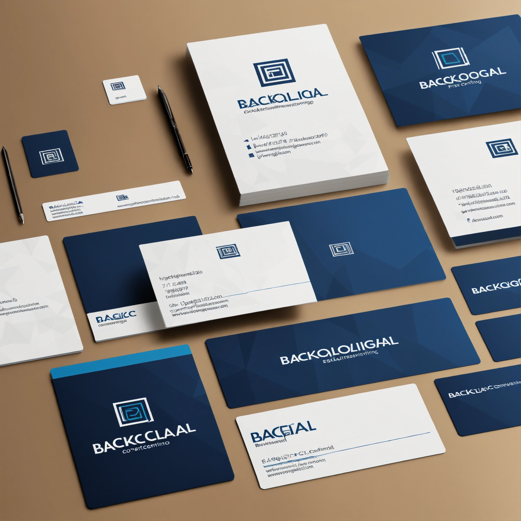 High resolution icon of a extremely simple 2d, elegant, clean and modern geometric business identity, business card, letterhead for software process consulting company "backlogical" in conveying terms "logic", "software", "development"