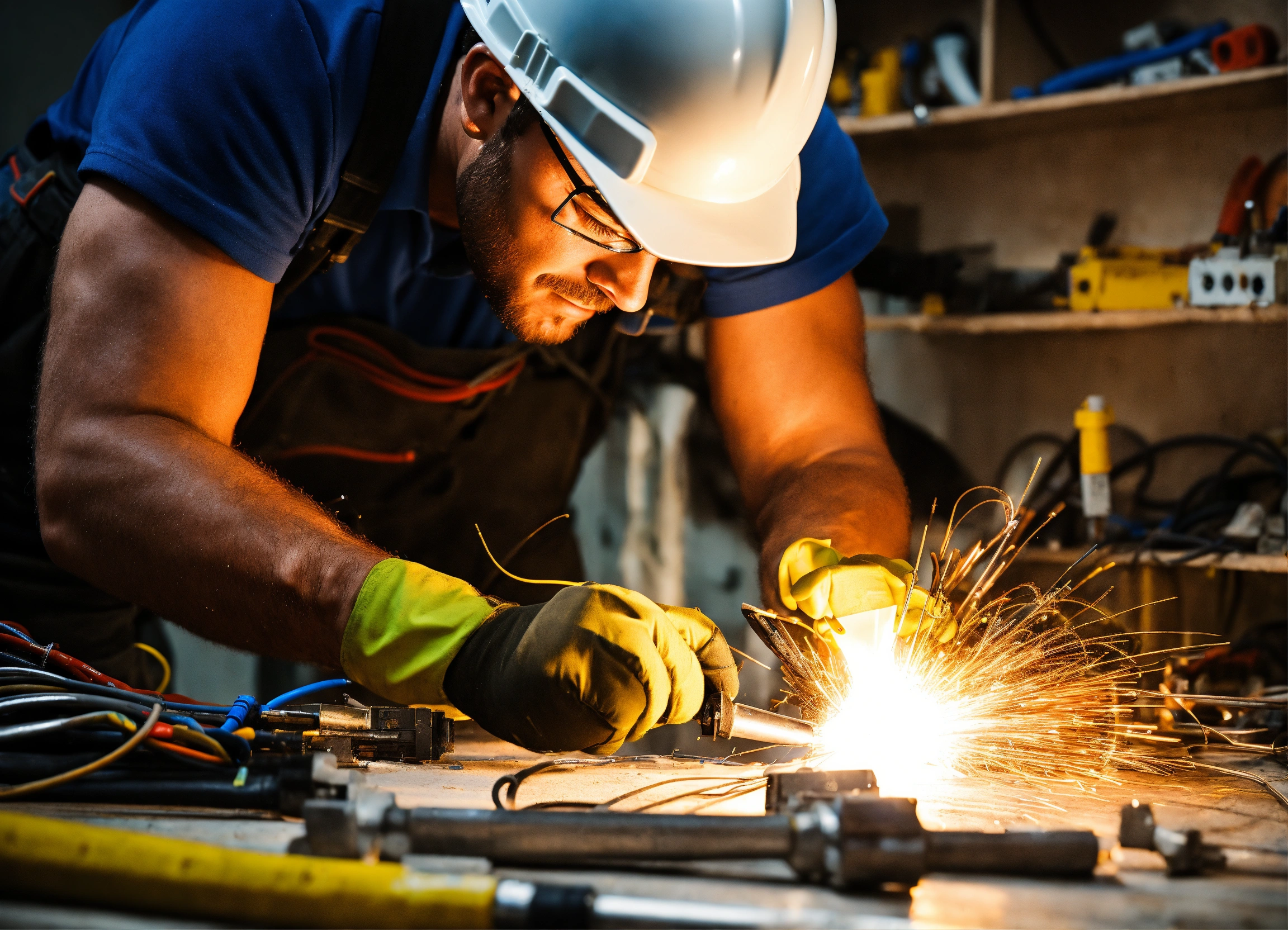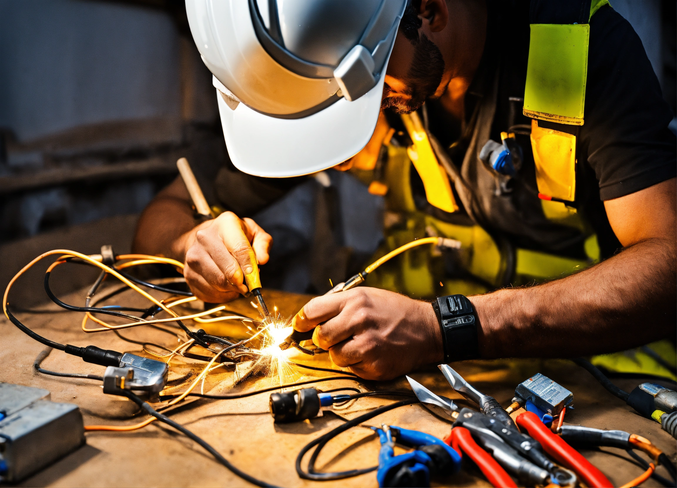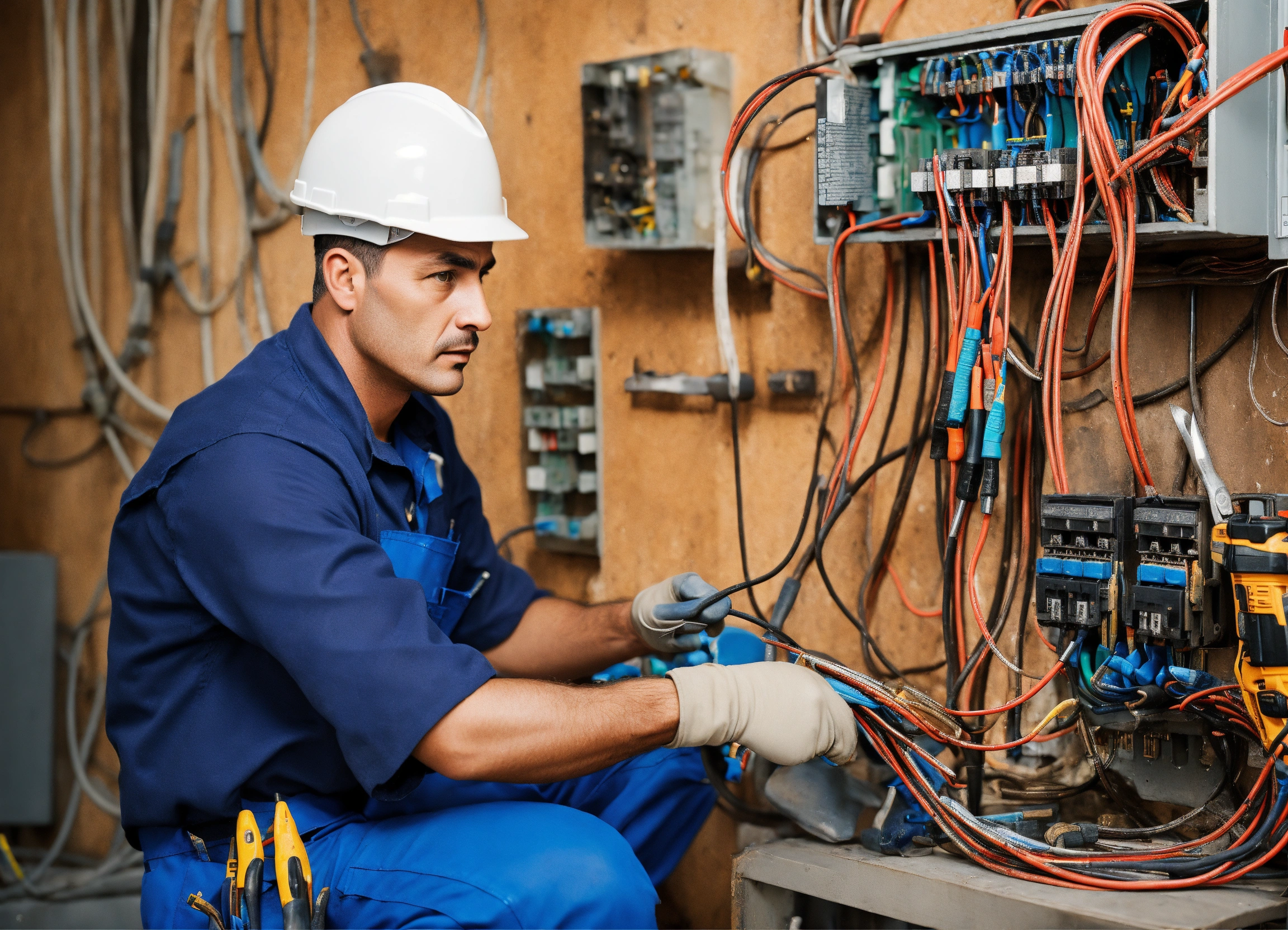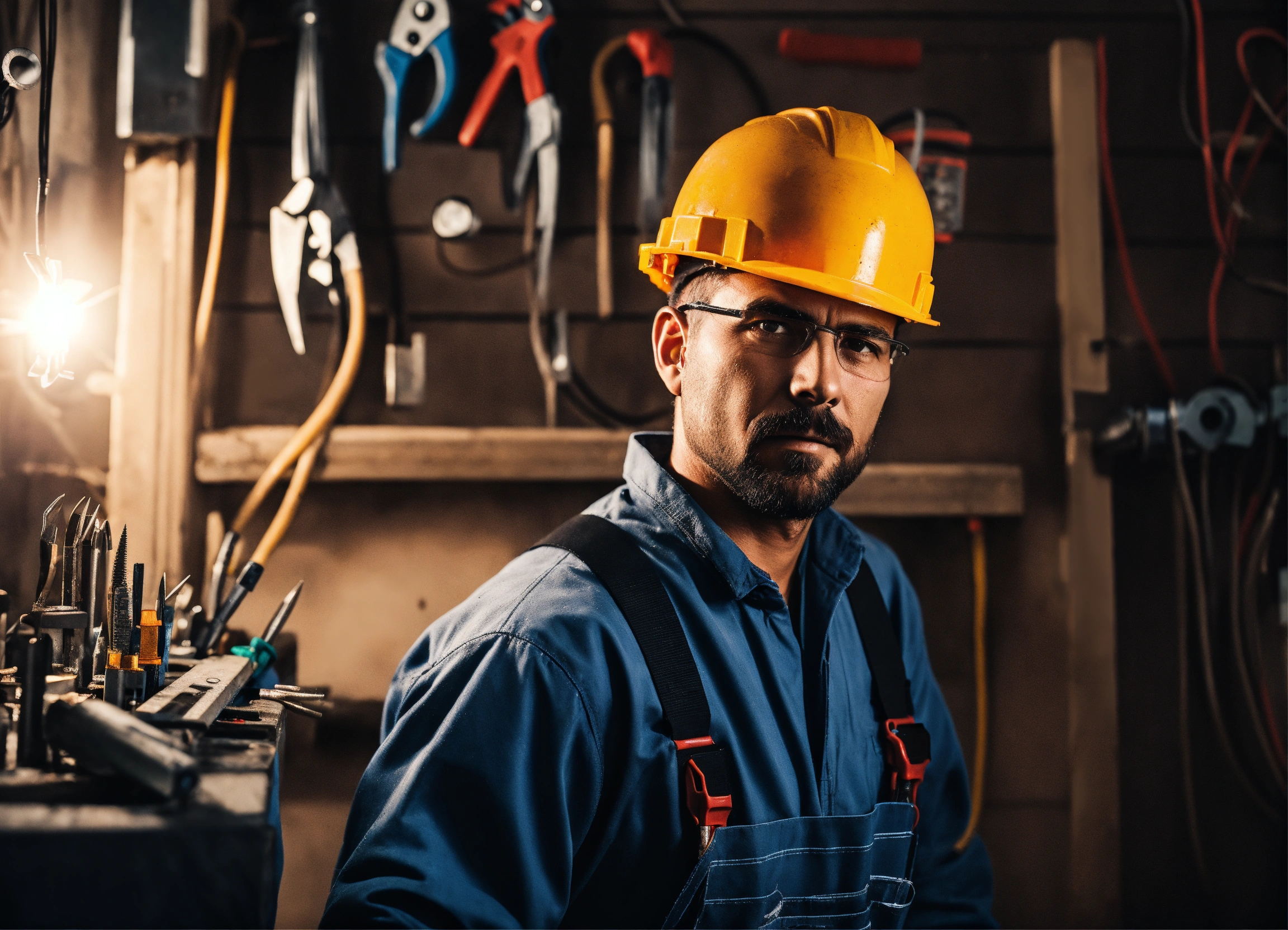 Photo of an electrician man. with tools