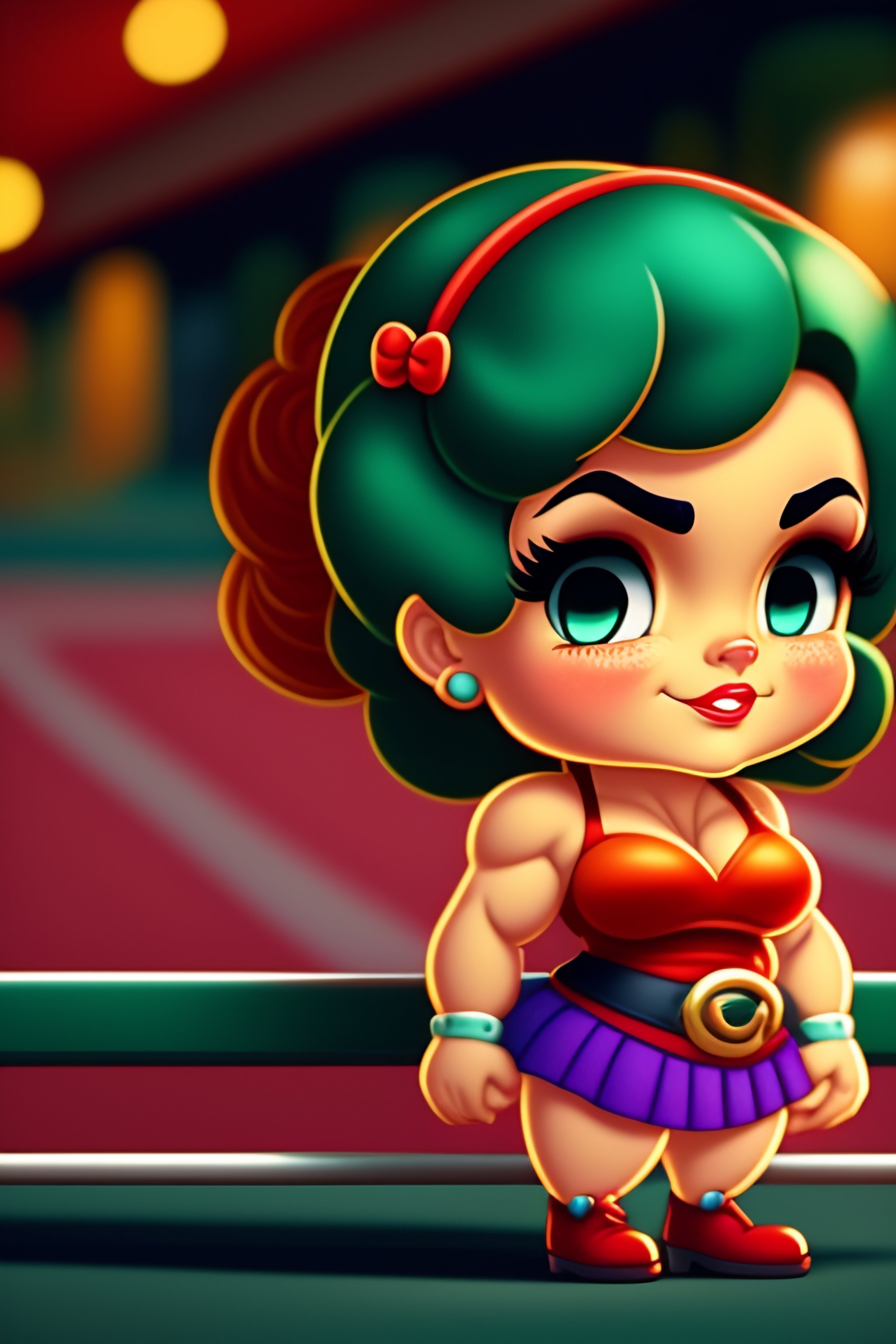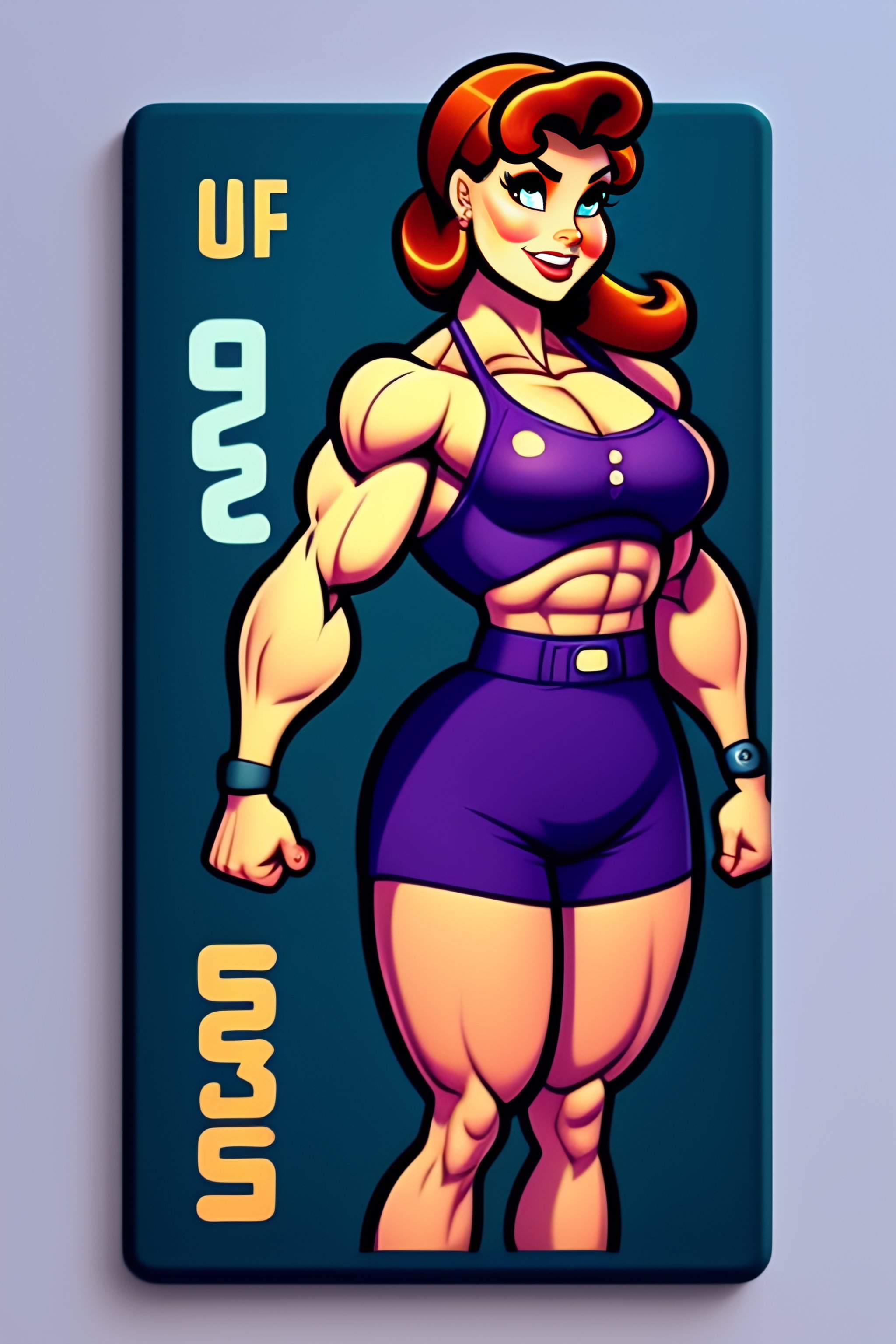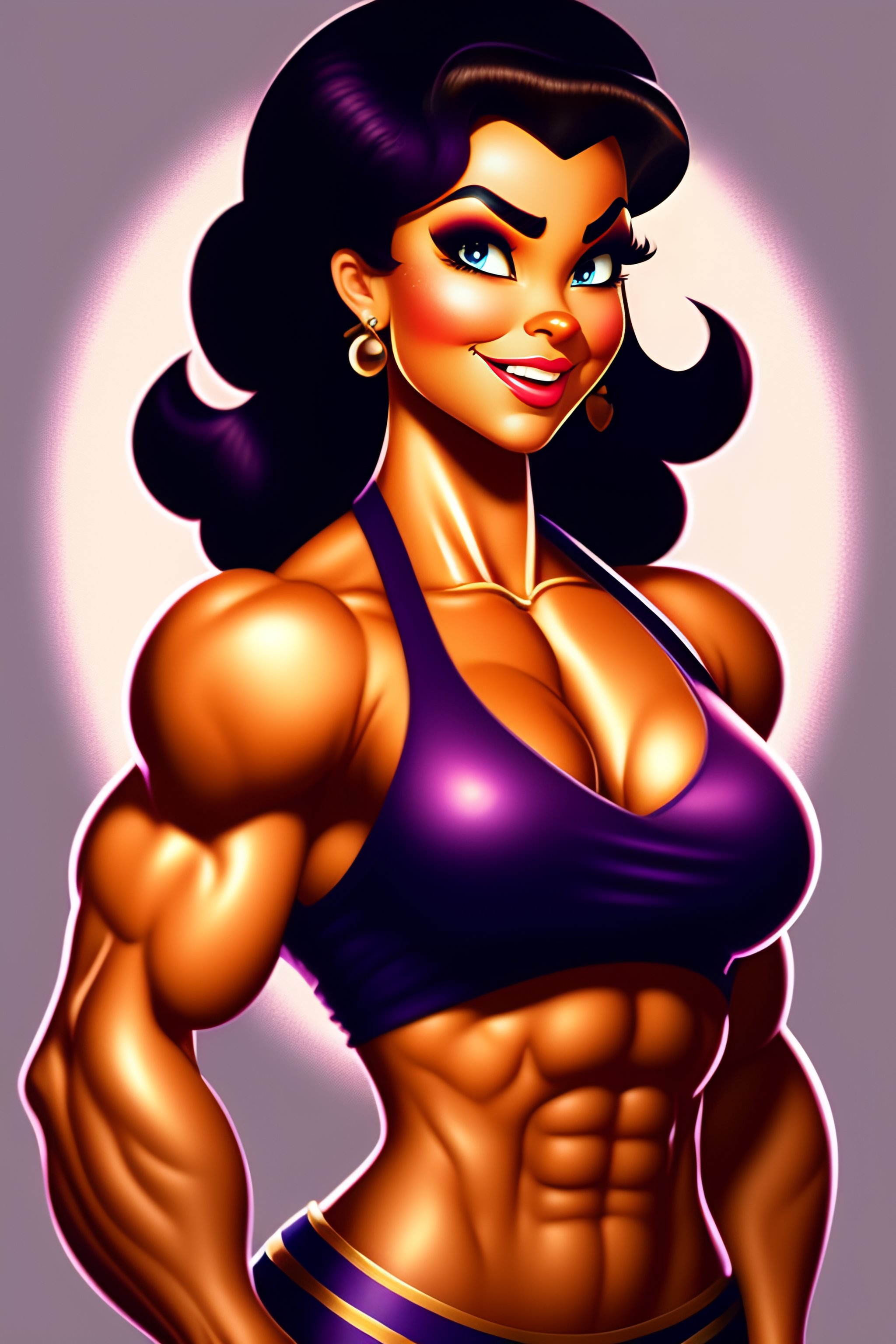 Sad cute woman bodybuilder cartoon character in old disney style in 2d