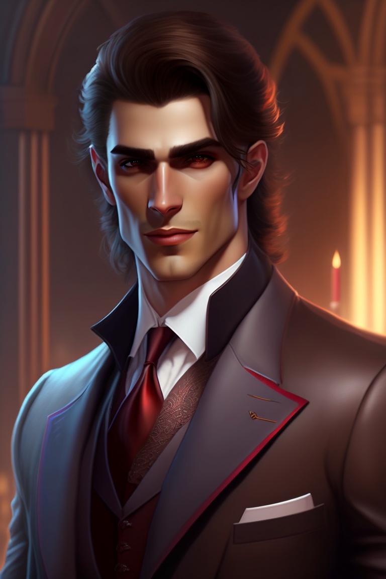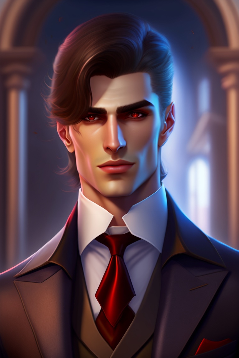 A male vampire, art by hildegard rodrigo a branco, formal suit, dark medium hair, italian man, vampire the masquerade character, brown eyes, pale skin, photorealistic, world of darkness, wod