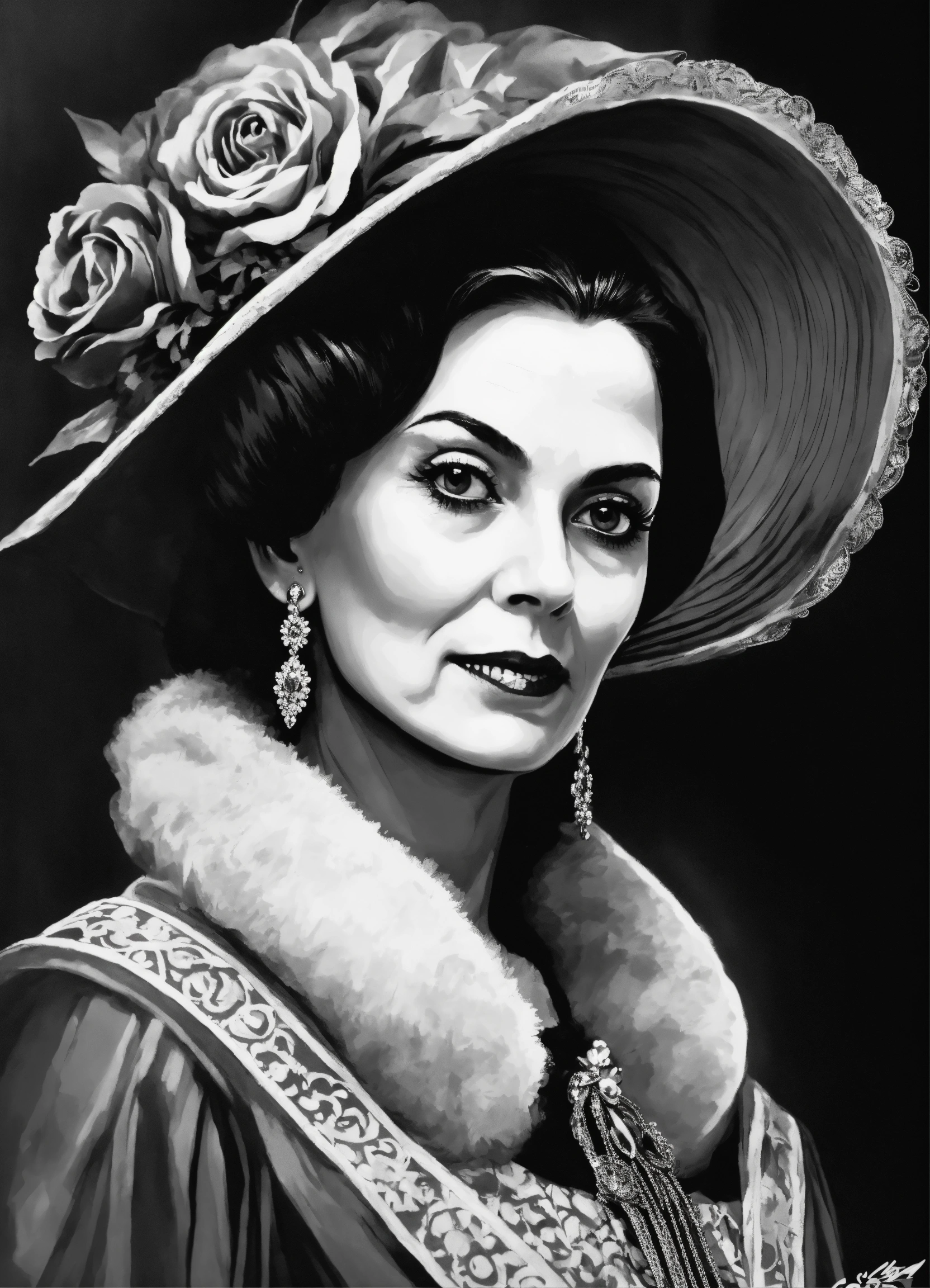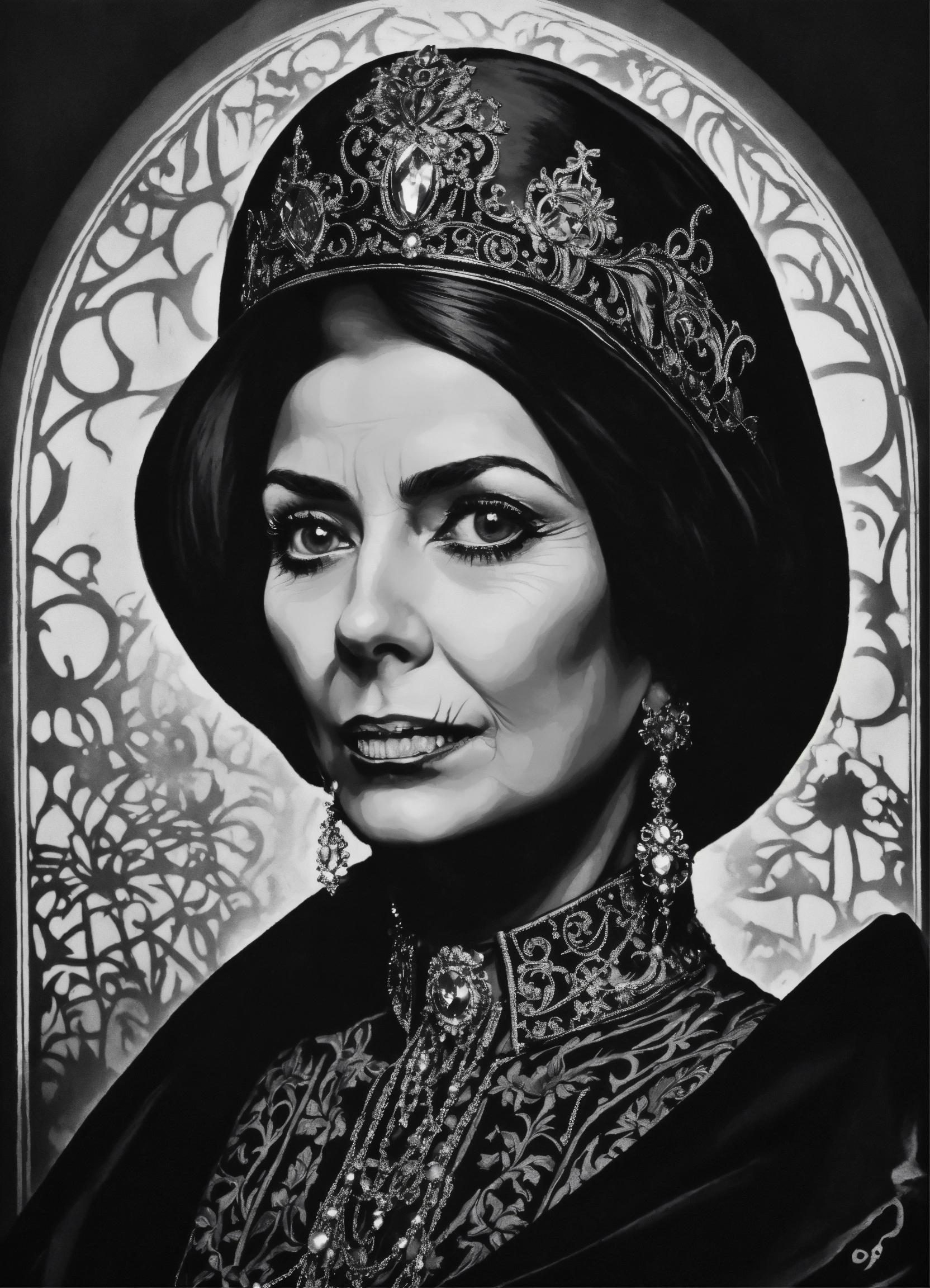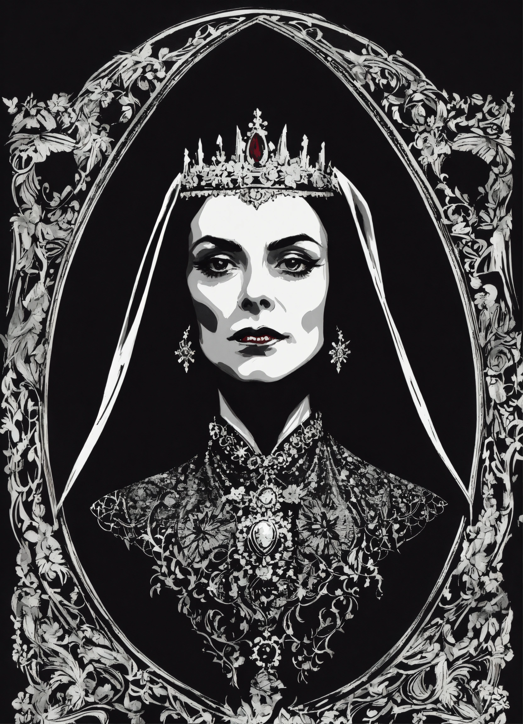 A portrait of queen sofia of spain, turned into a vampire in the style of the film nosferatu. in black and white with a realistic style to use as a stencil template in graffiti style