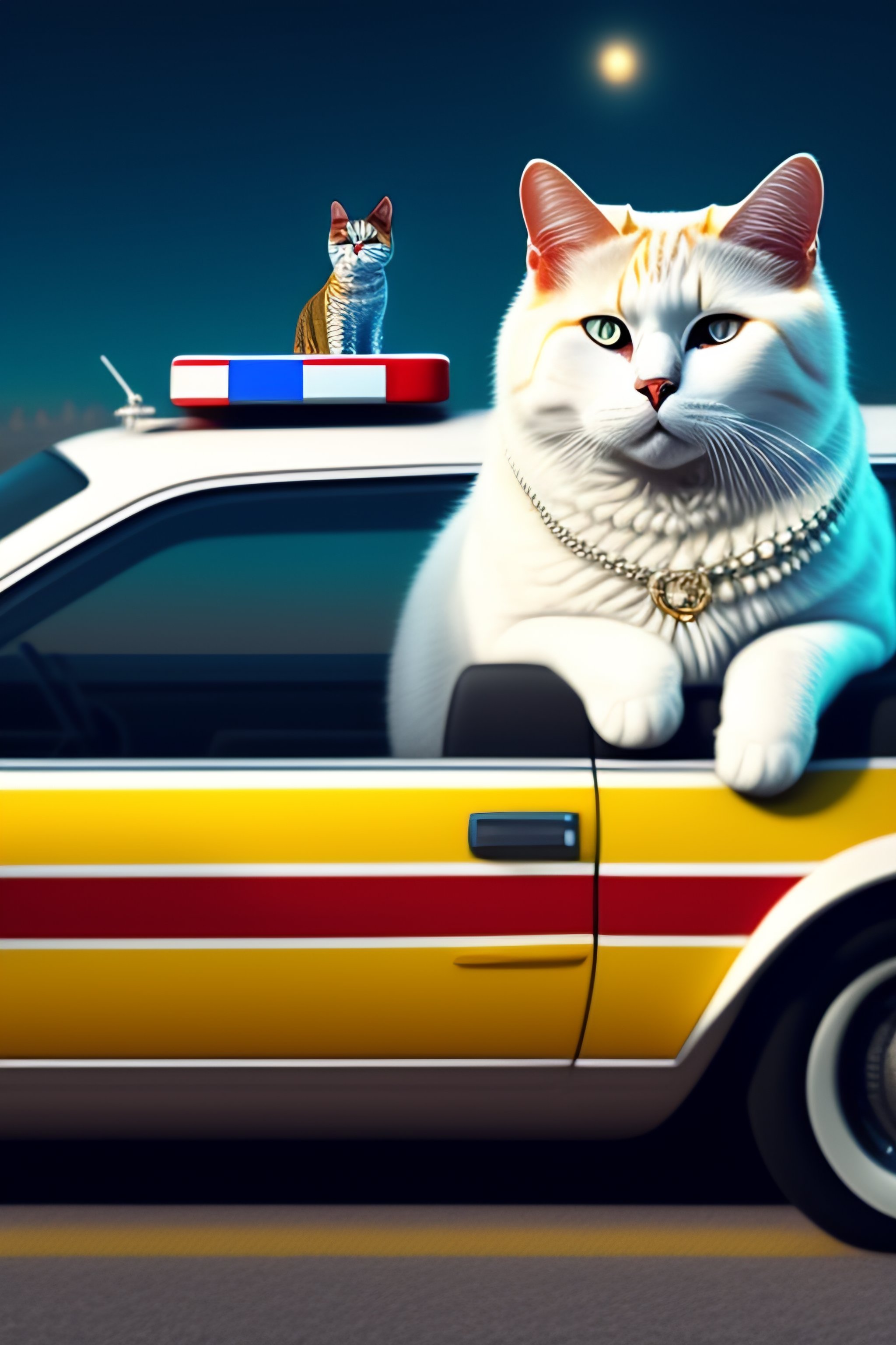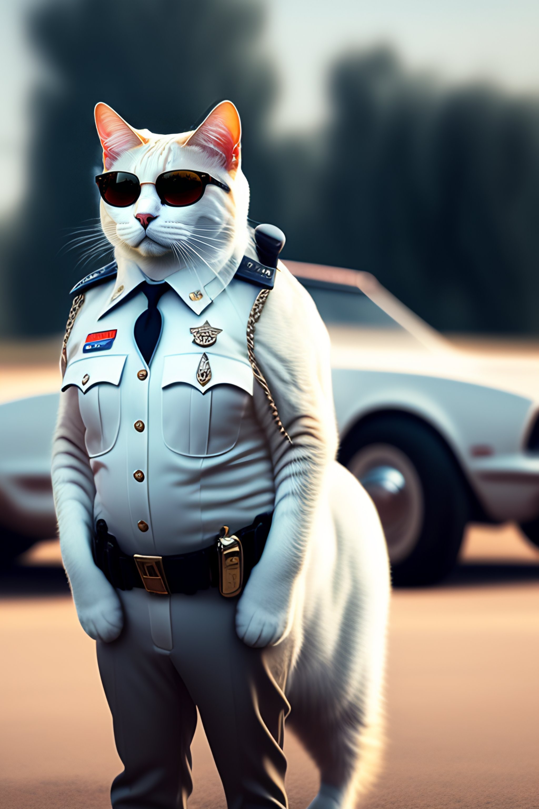 A white cat as an american cop