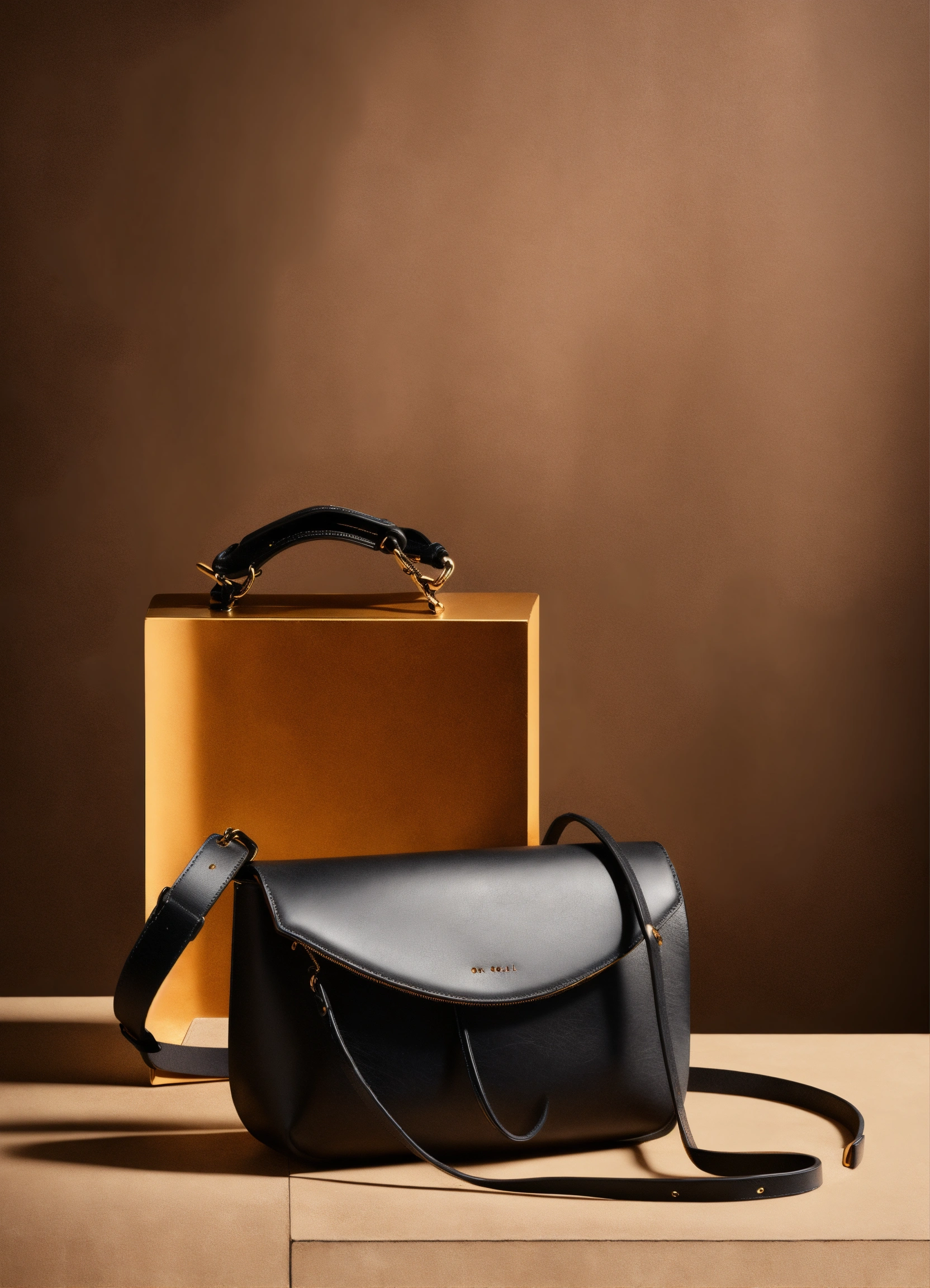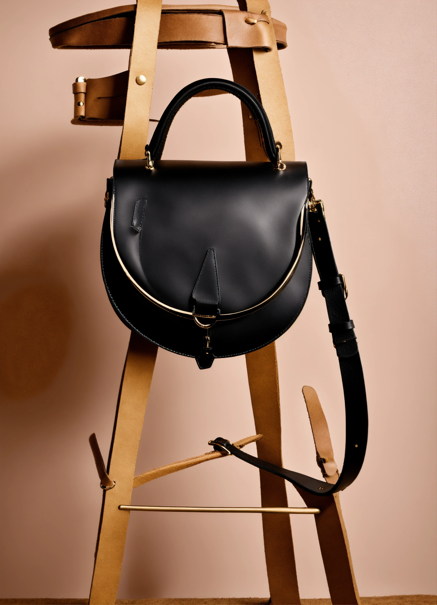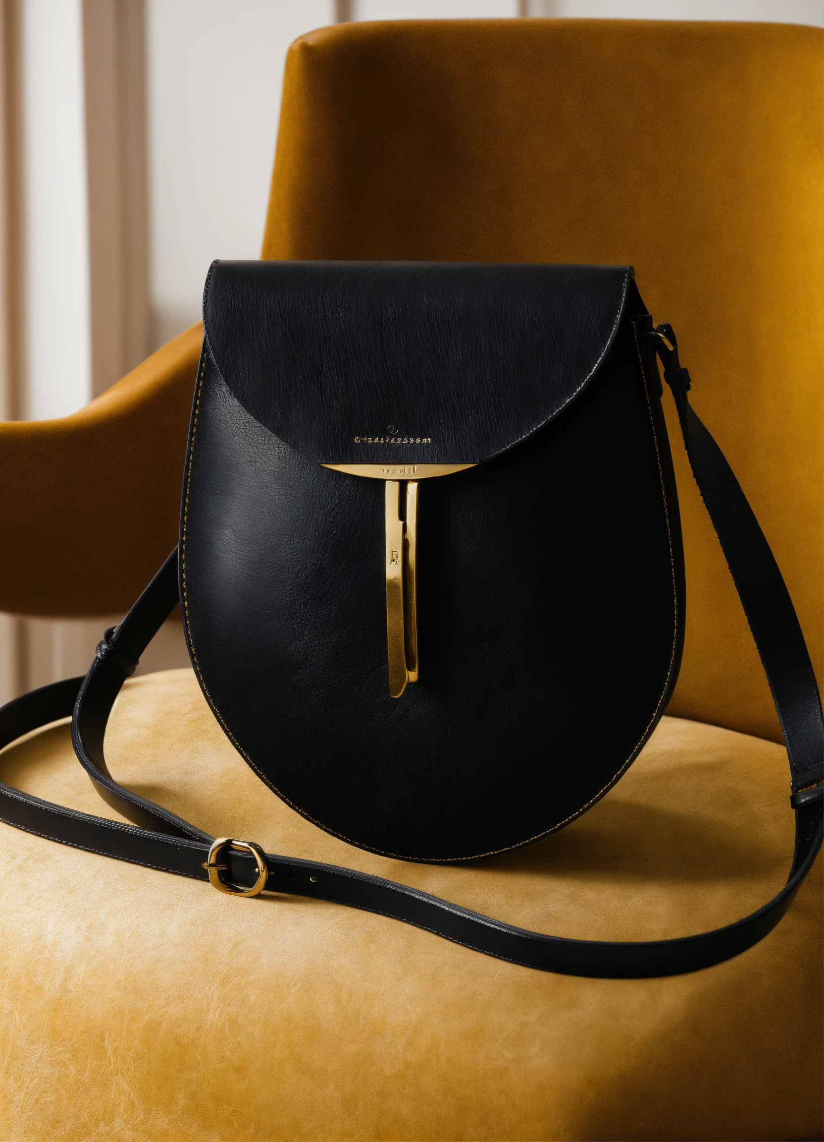 well-designed crescent-shaped black-grained leather bag. with the well-designed strap