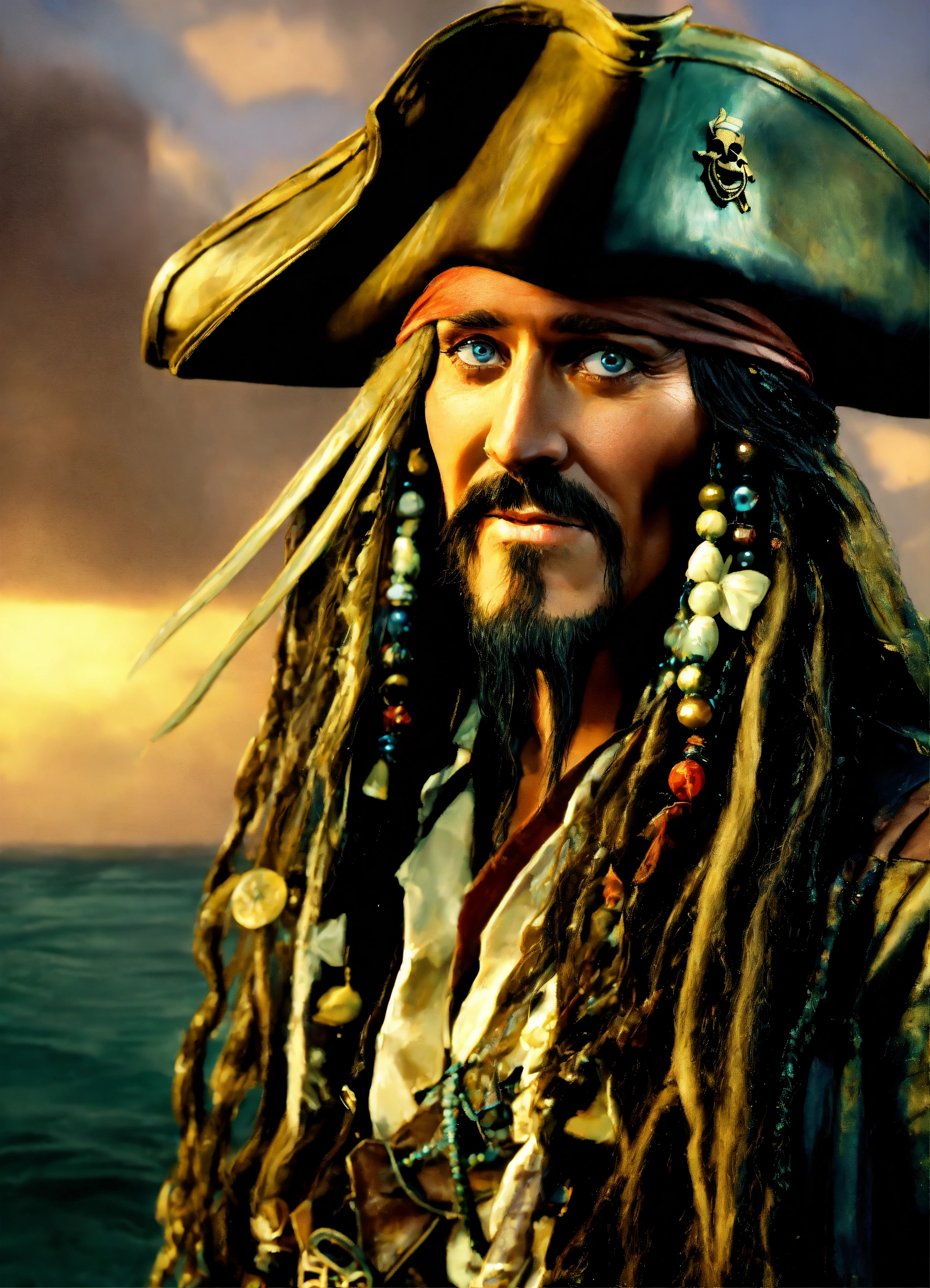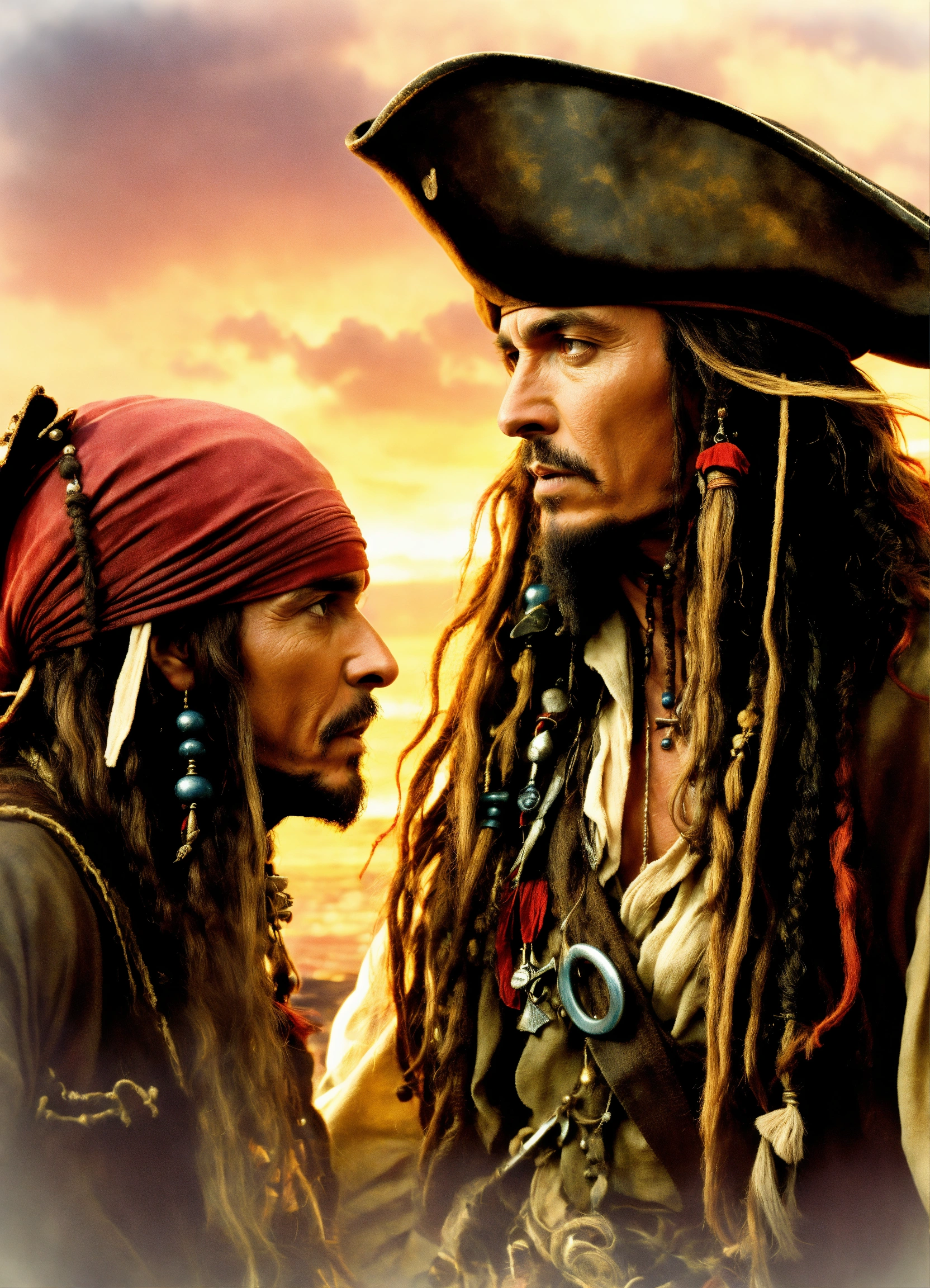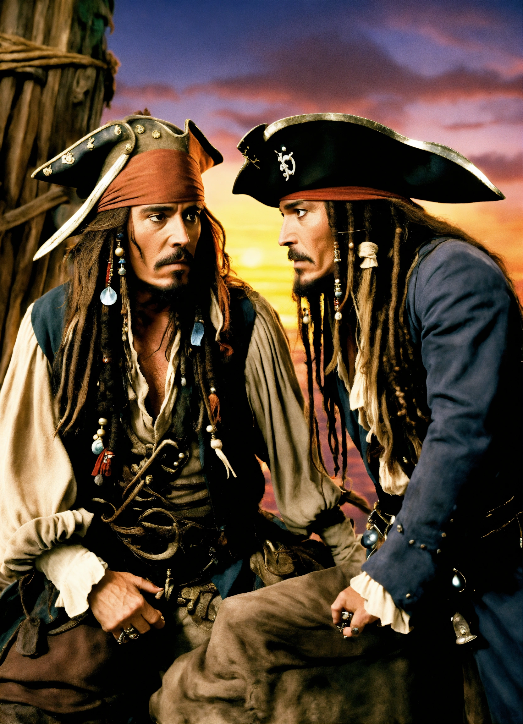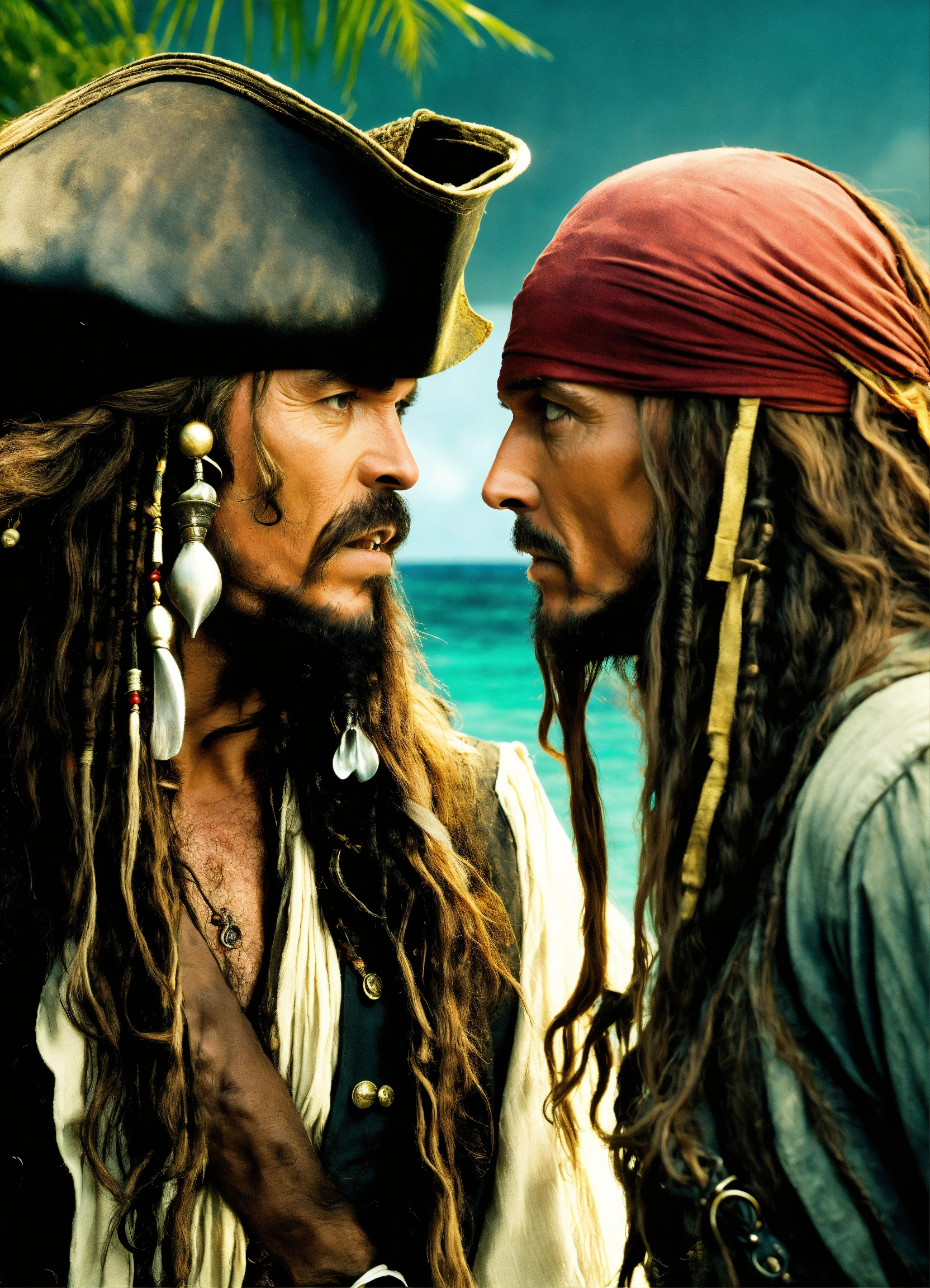Davy jones is looking at jack the sparrow they are looking at each other