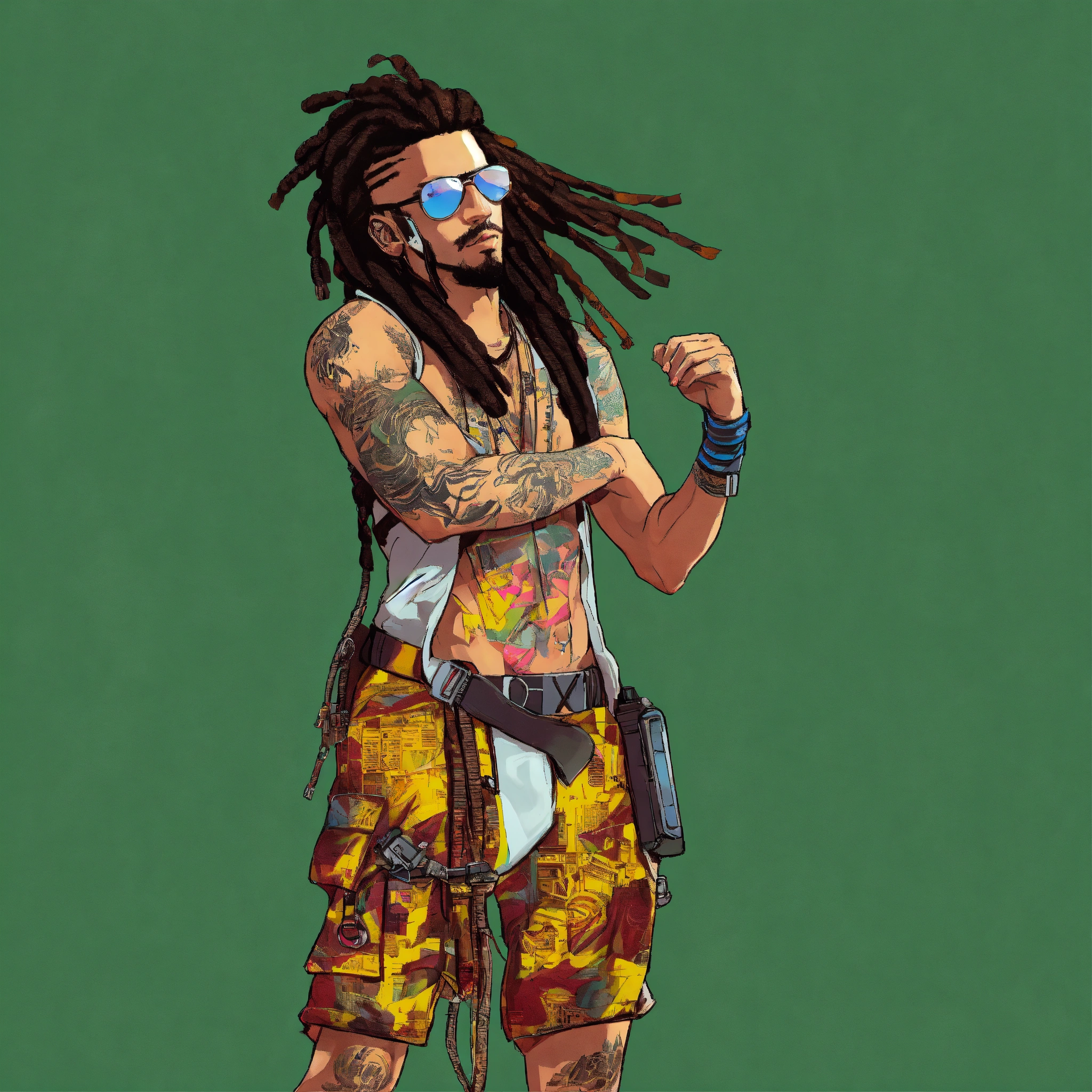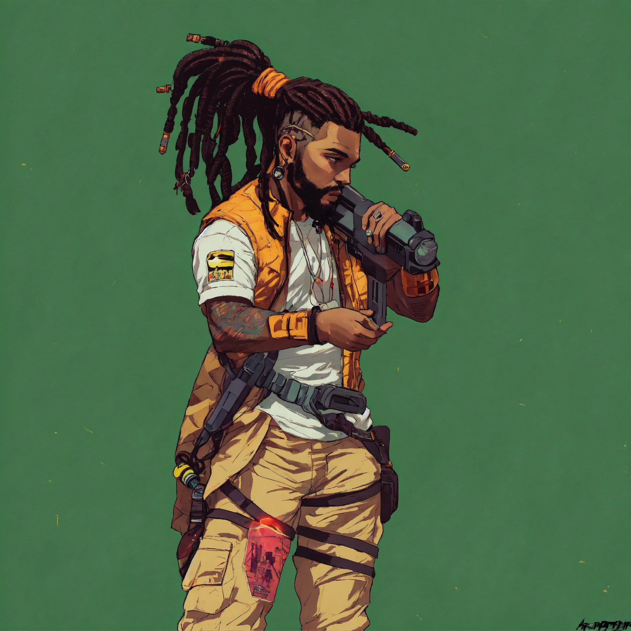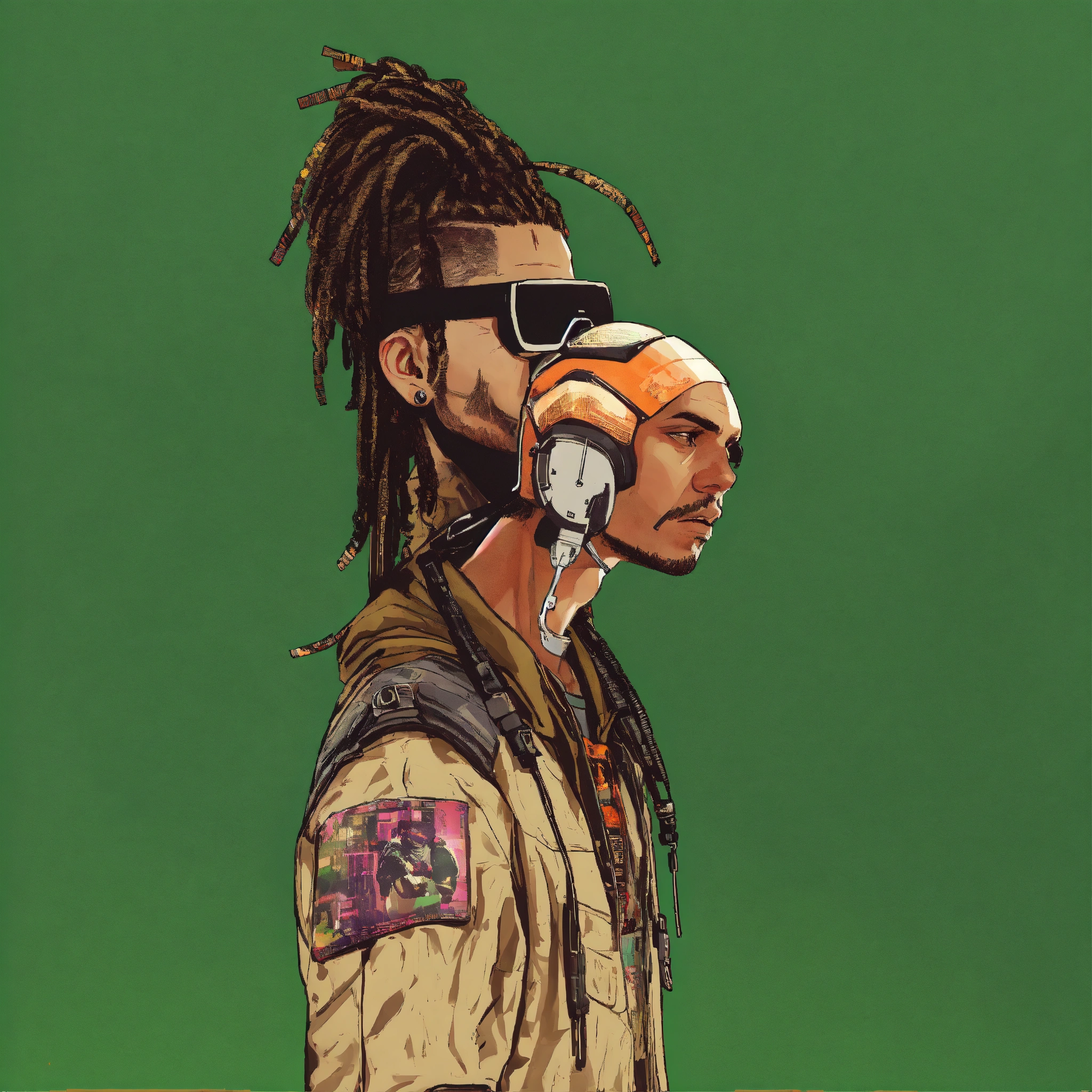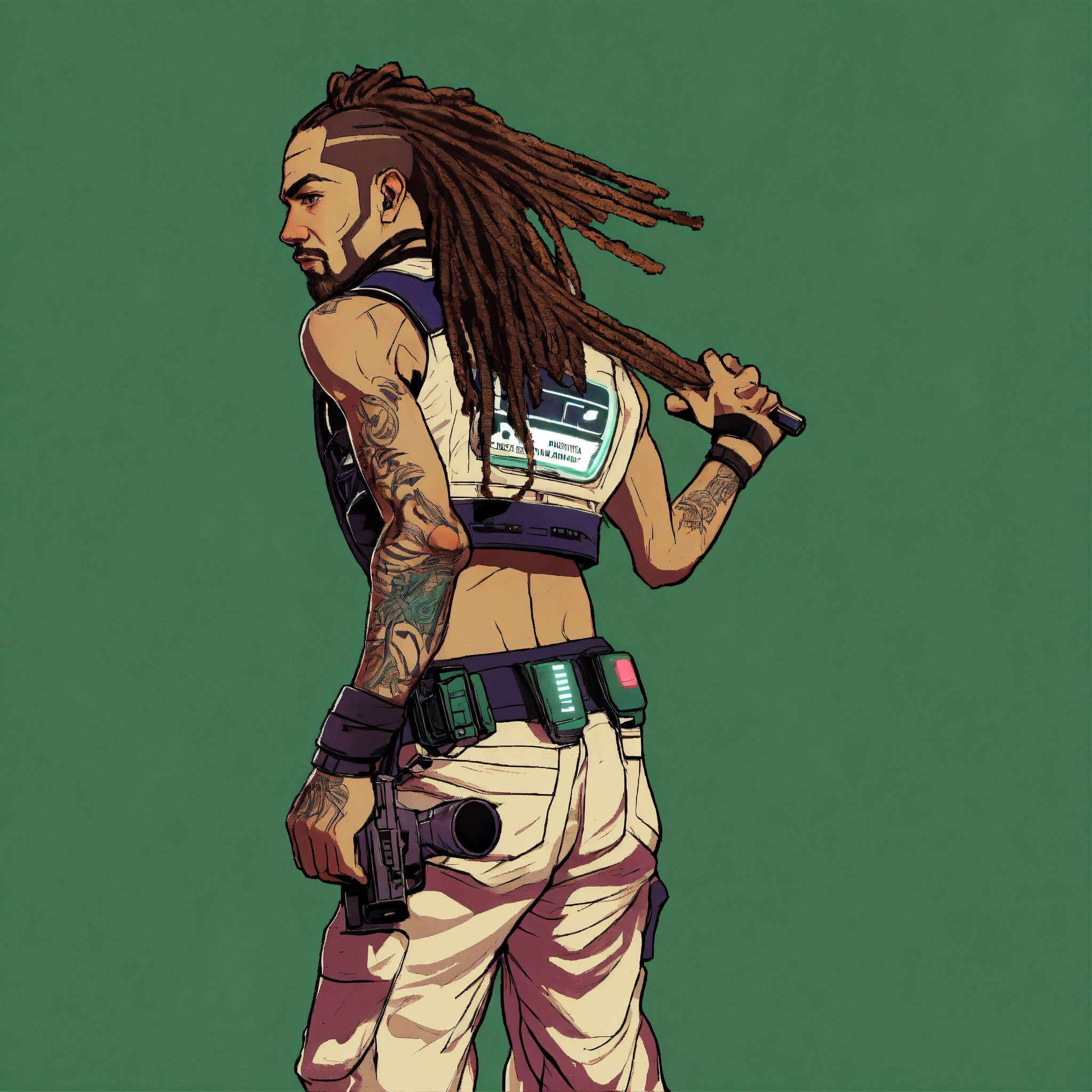 Cyberpunk white man with dreadlocks cyberpunk gang member gta poster style art