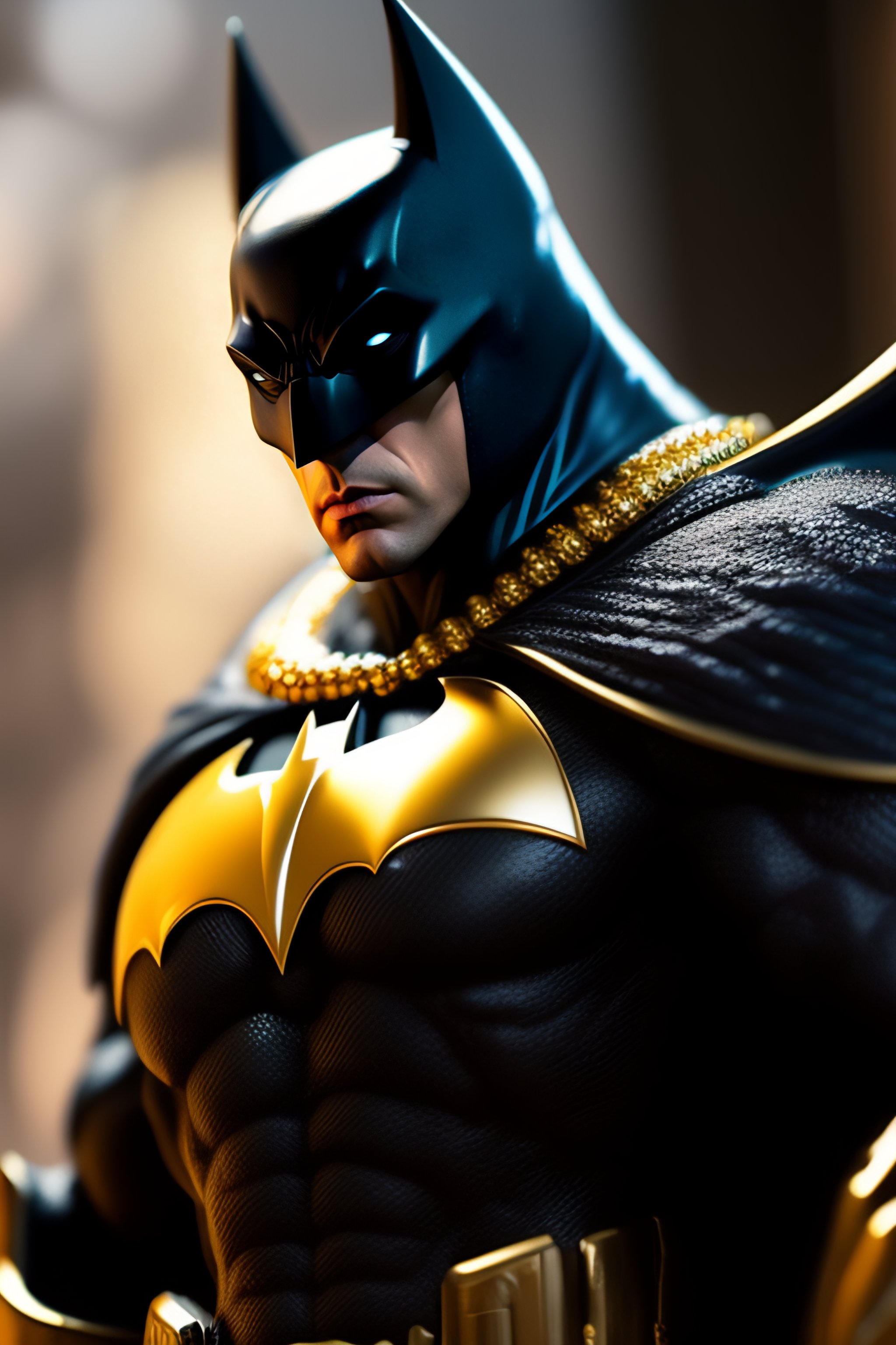 Batman is acquired by venom symbiote, the armor filled with gold and jewelry, guns and destruction background