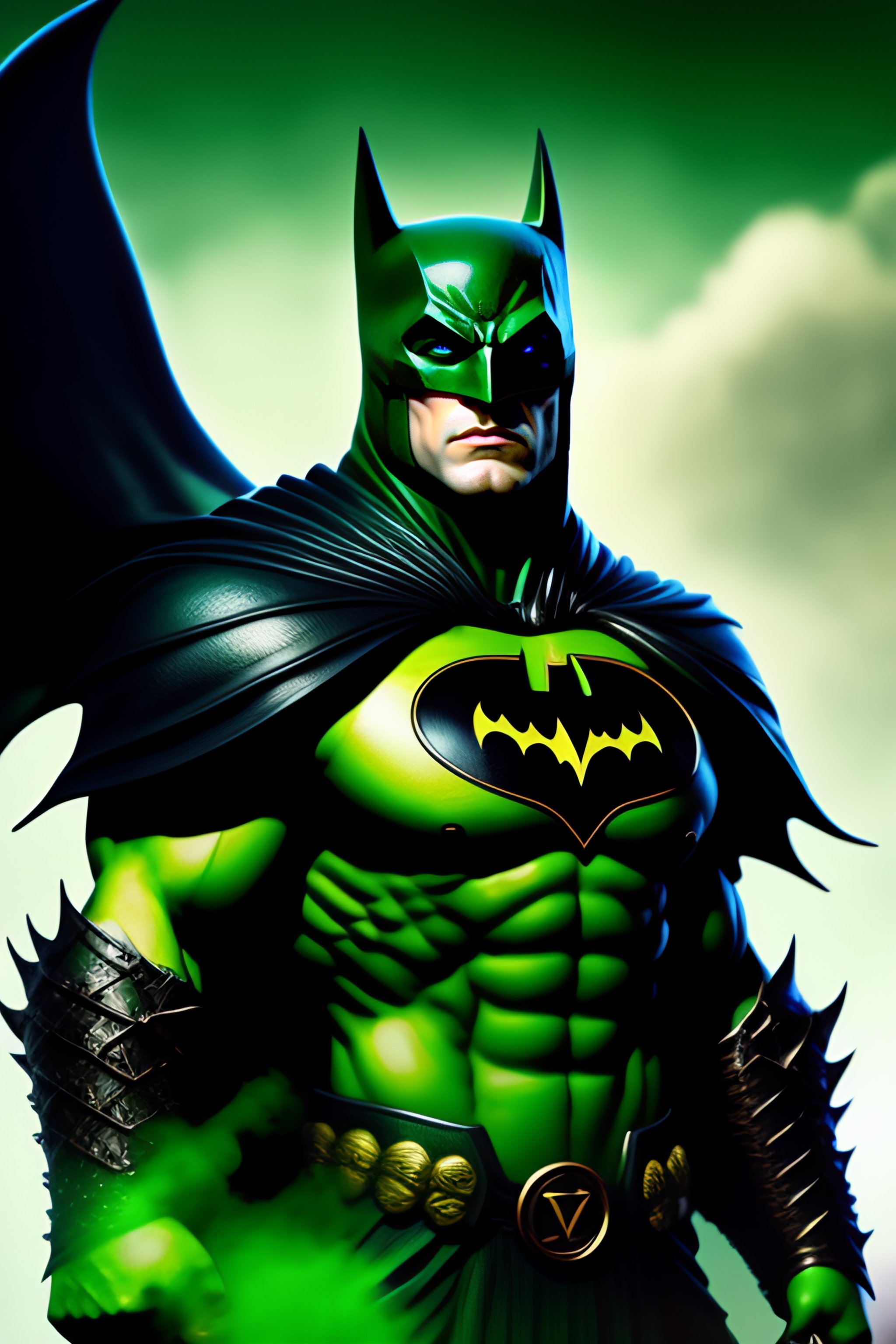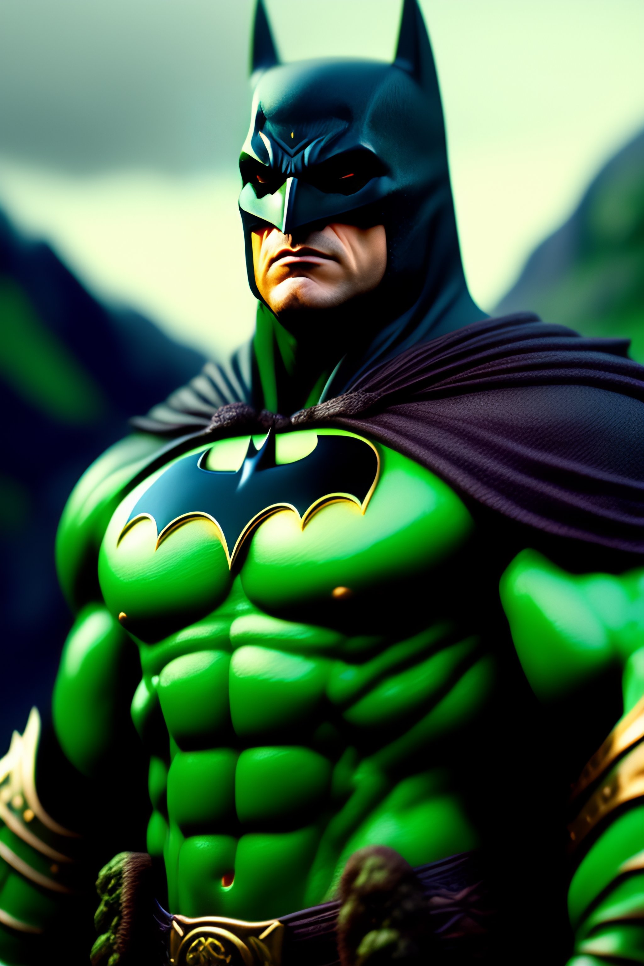 Batman with green skin hulk like a real viking, lord of the rings, norway lake, elden ring style, ragnar lothbrook valhalla