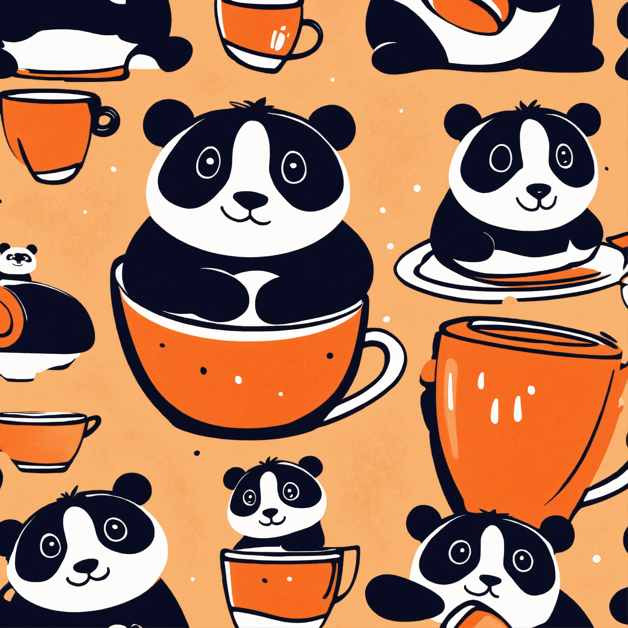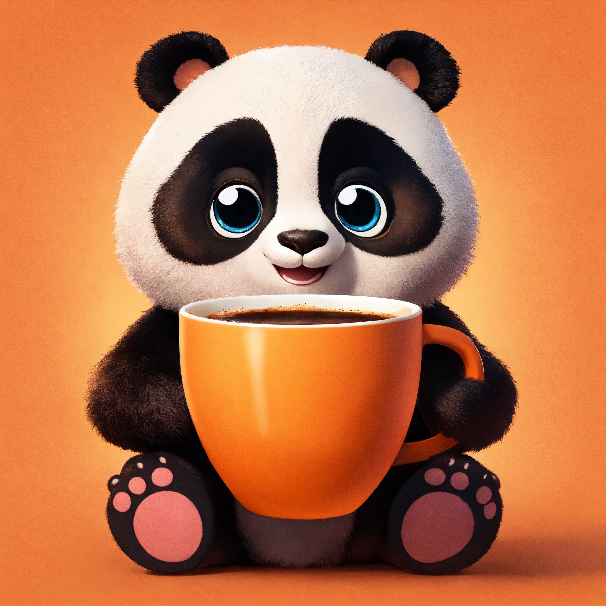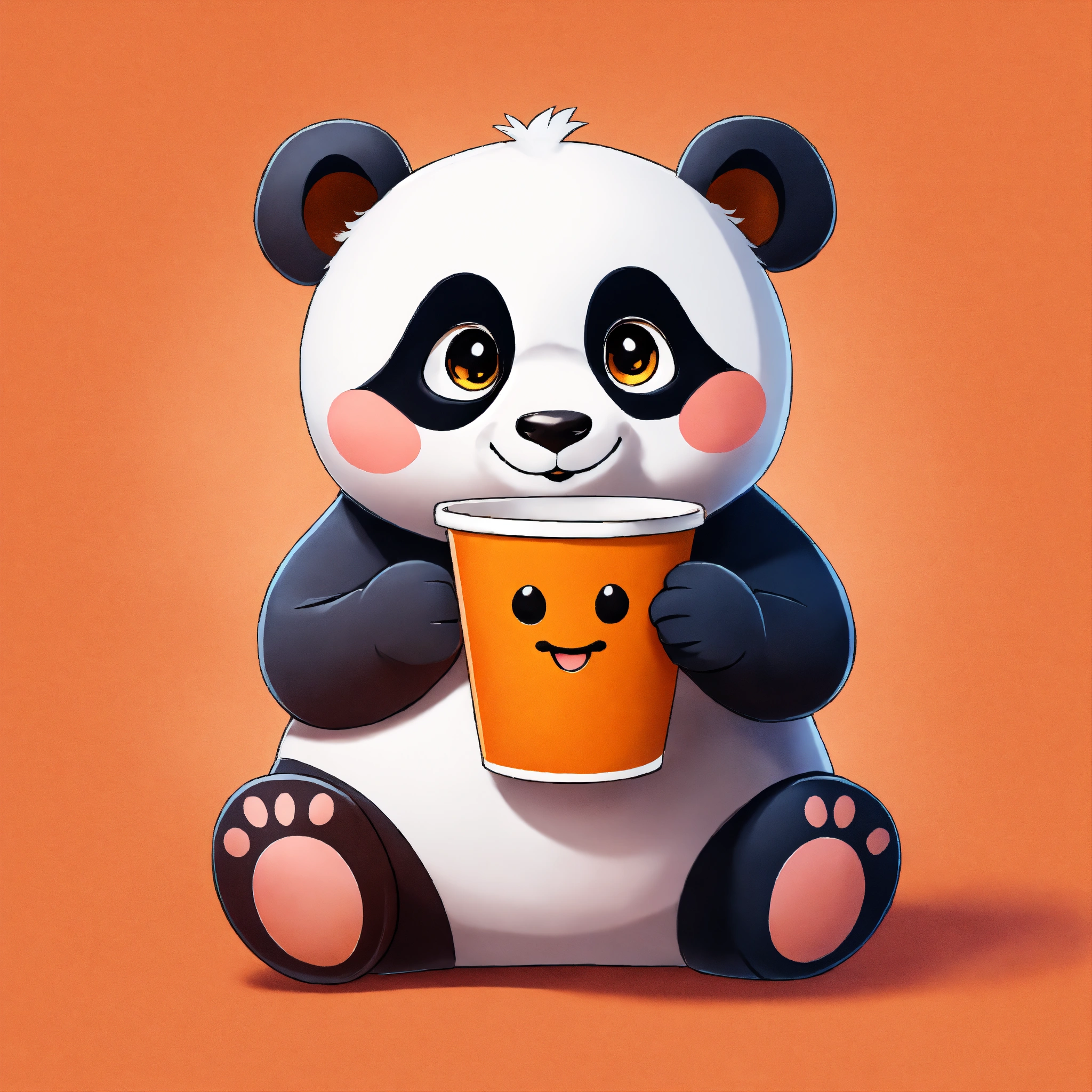 Panda with orange coffee cup