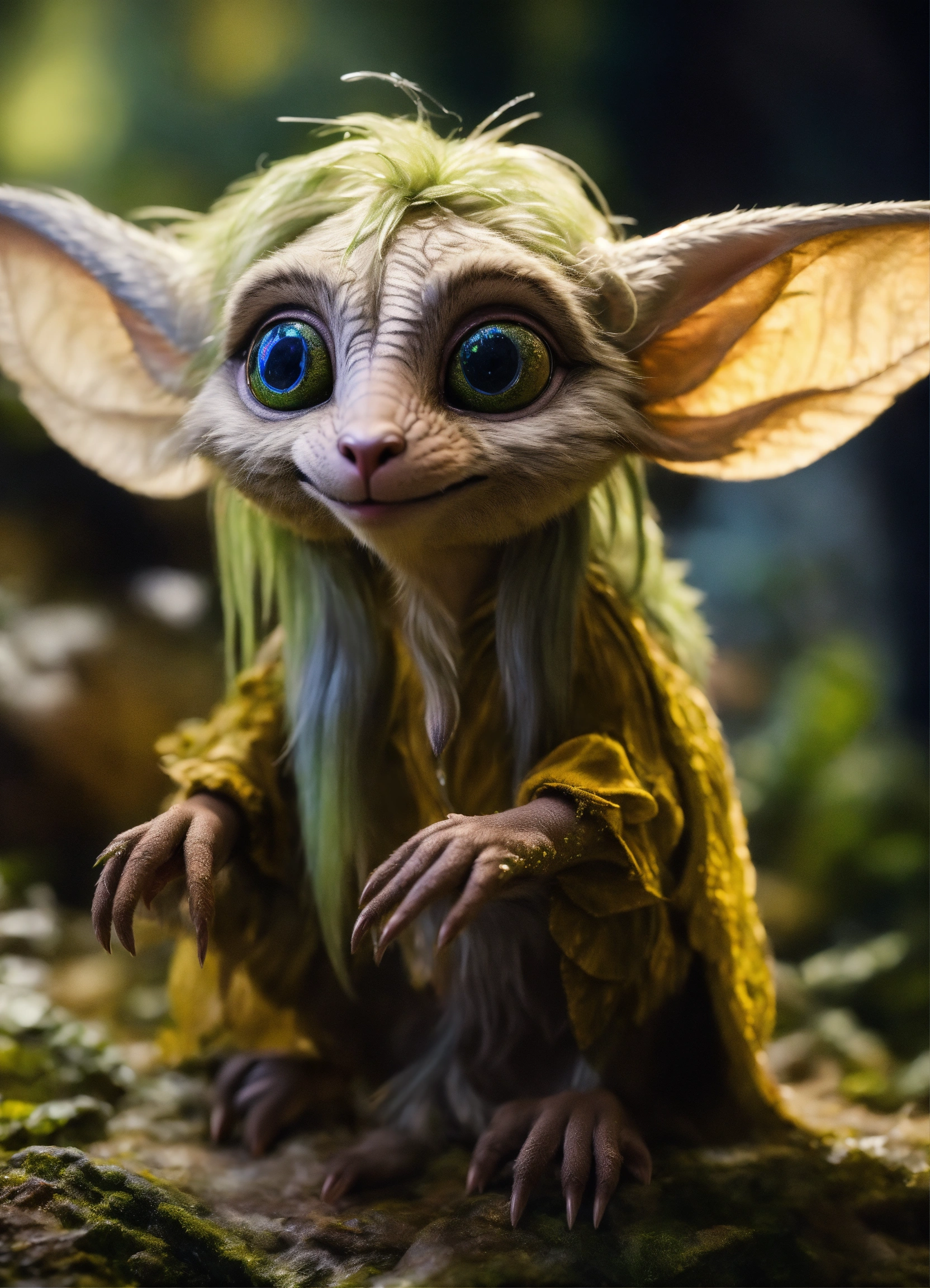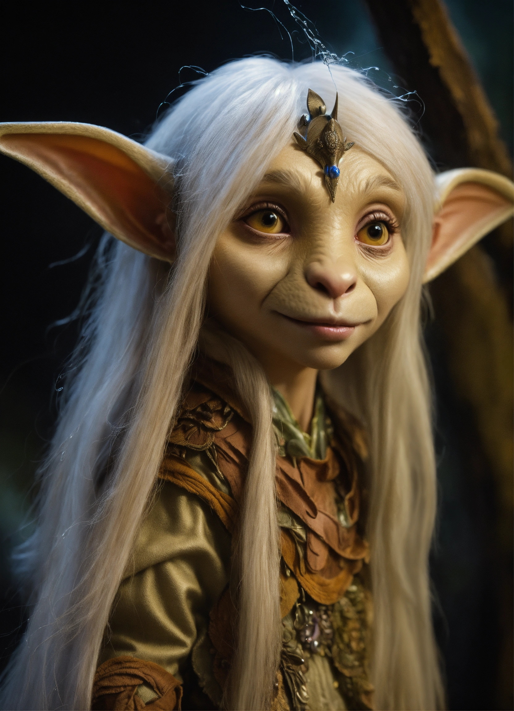 A gelfling furry animal like princess full body life size from the dark crystal hyperrealistic, splash art, concept art, mid shot, intricately detailed, color depth, dramatic, high definition