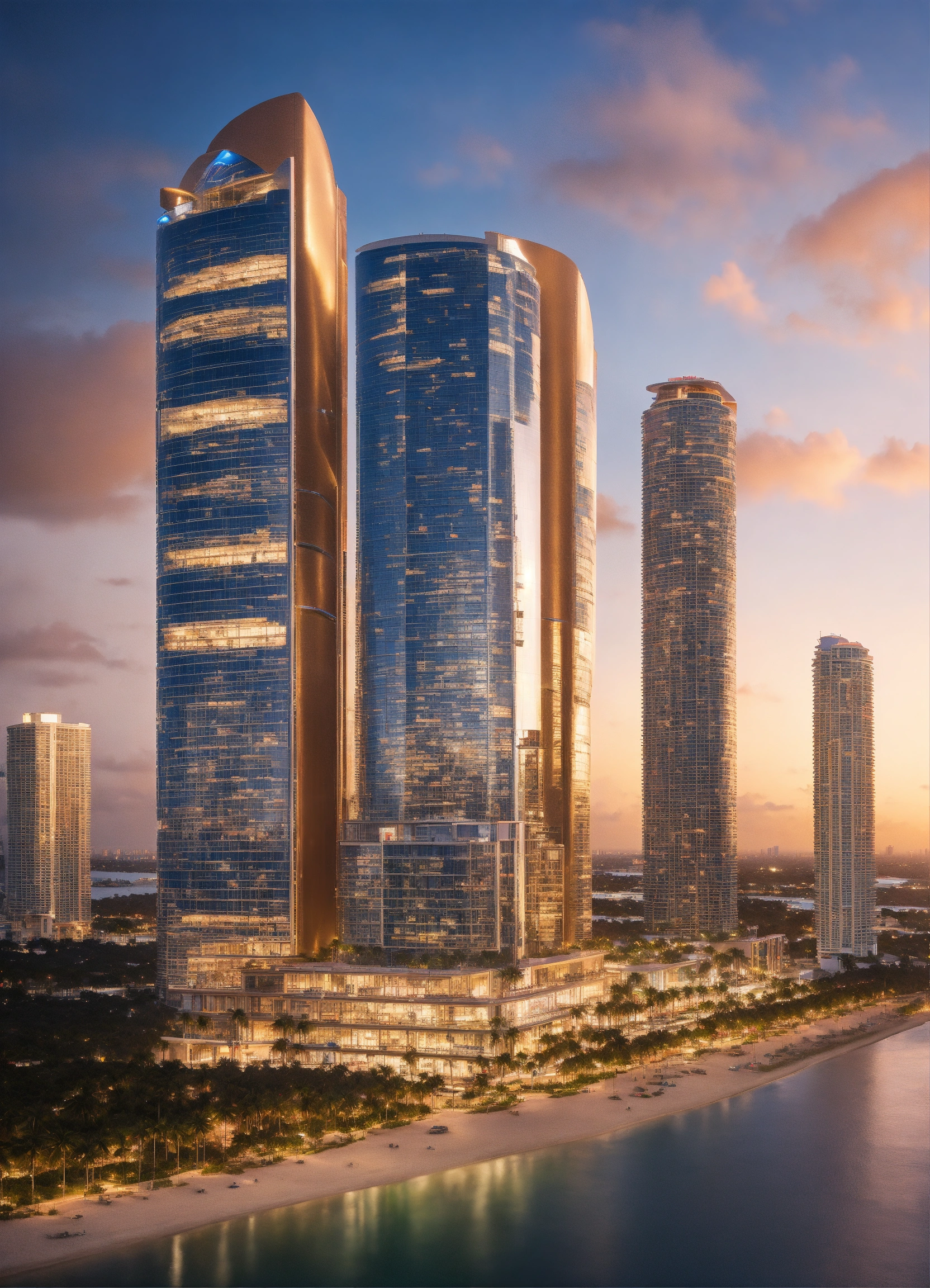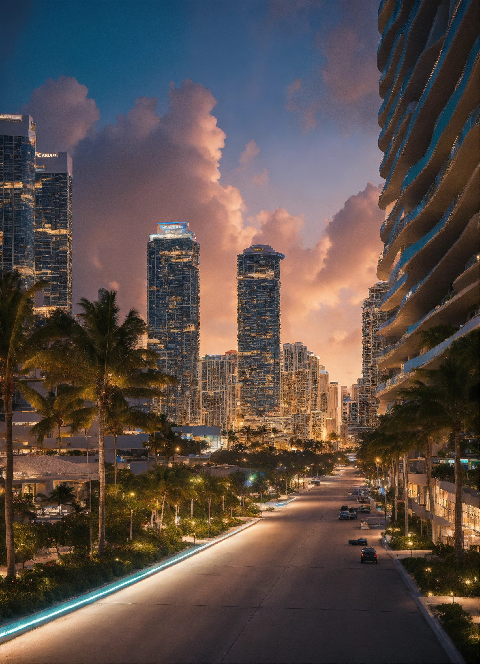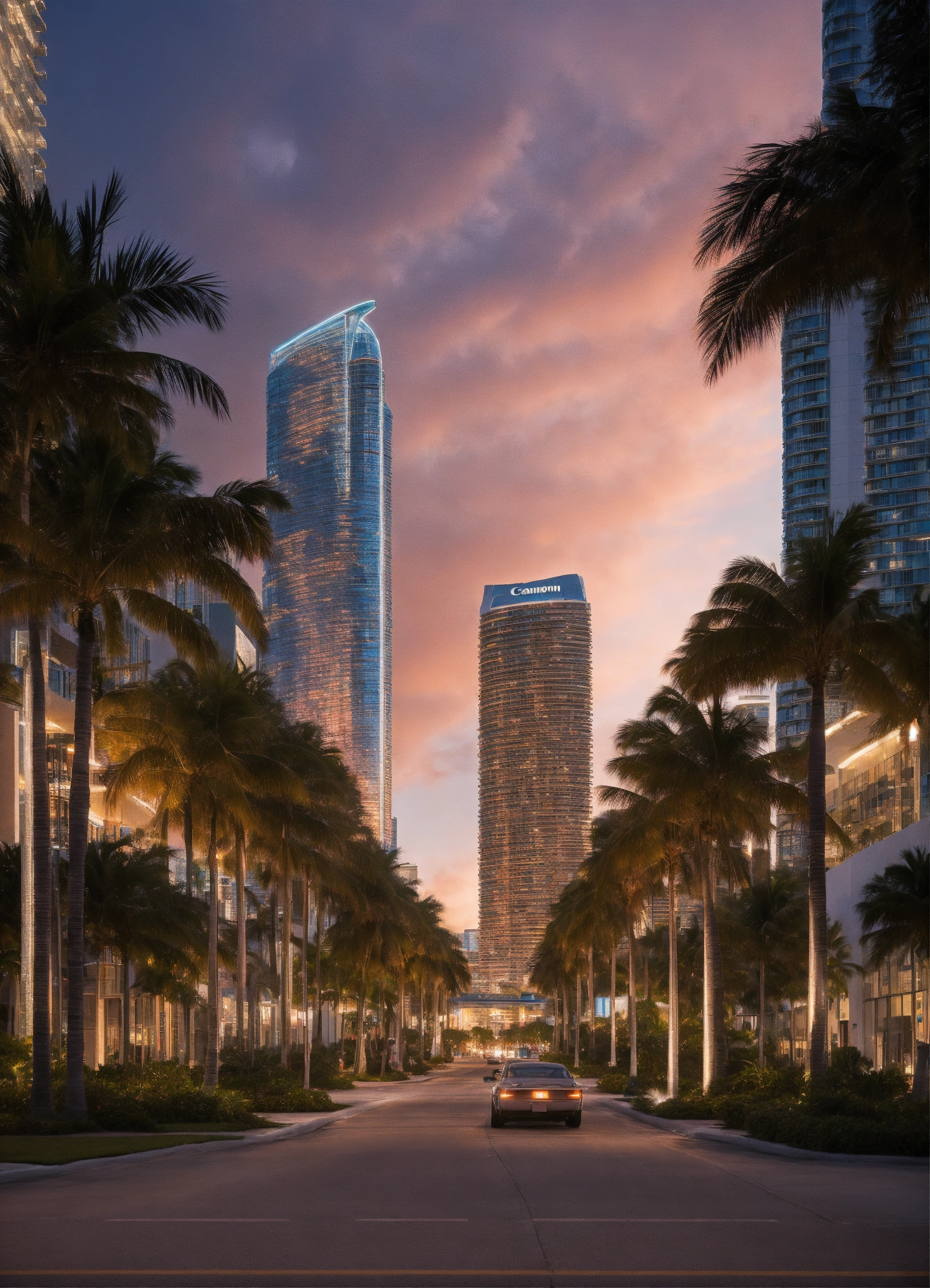 Jeff bezos, sophisticated futuristic miami city, realistic photograph with a 50mm lens realistic photograph, high detail, neutral lighting, canon