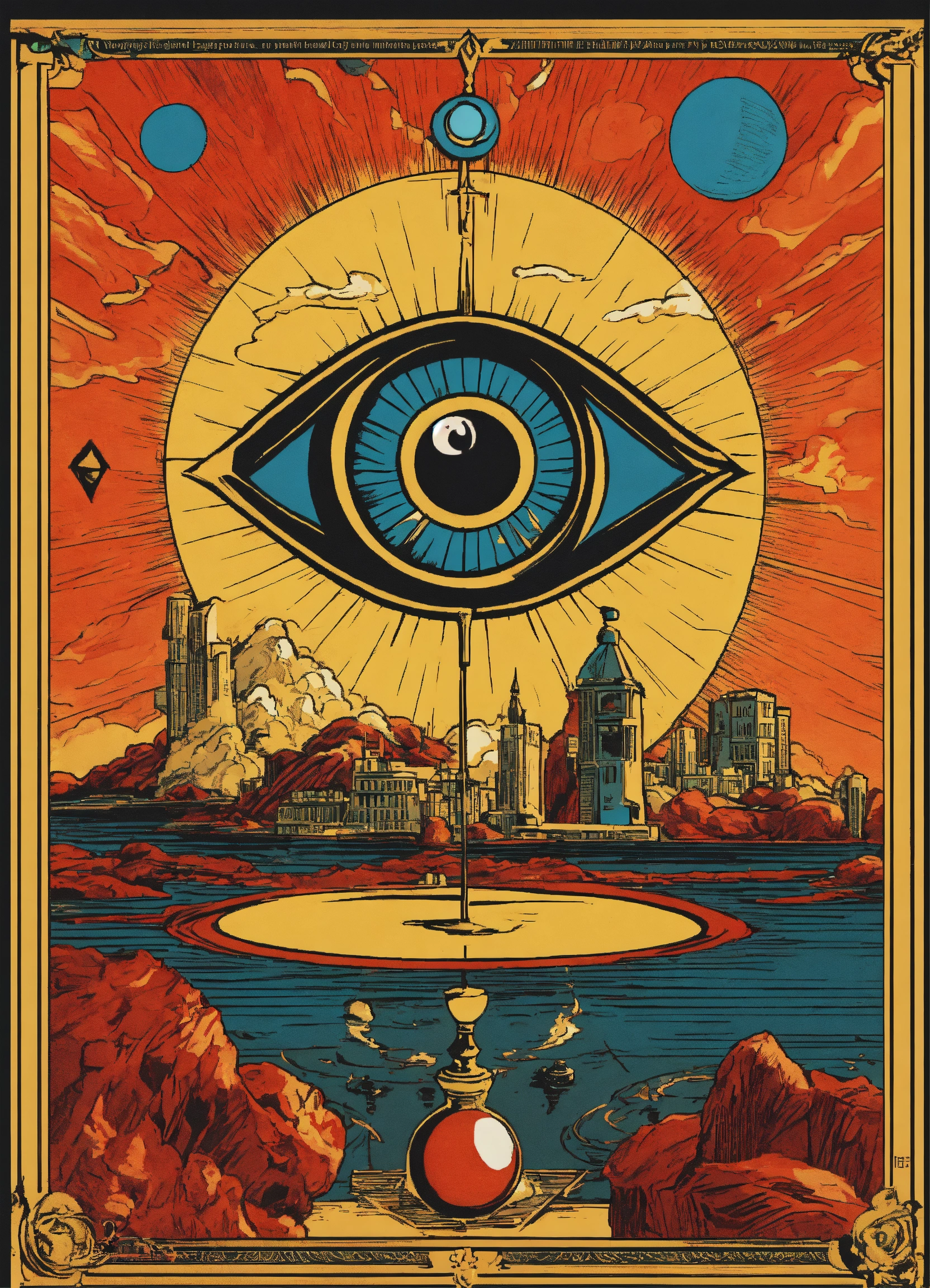 Text language of cards where "the eye" is the power to play, it is therefore the symbol of a task, comics