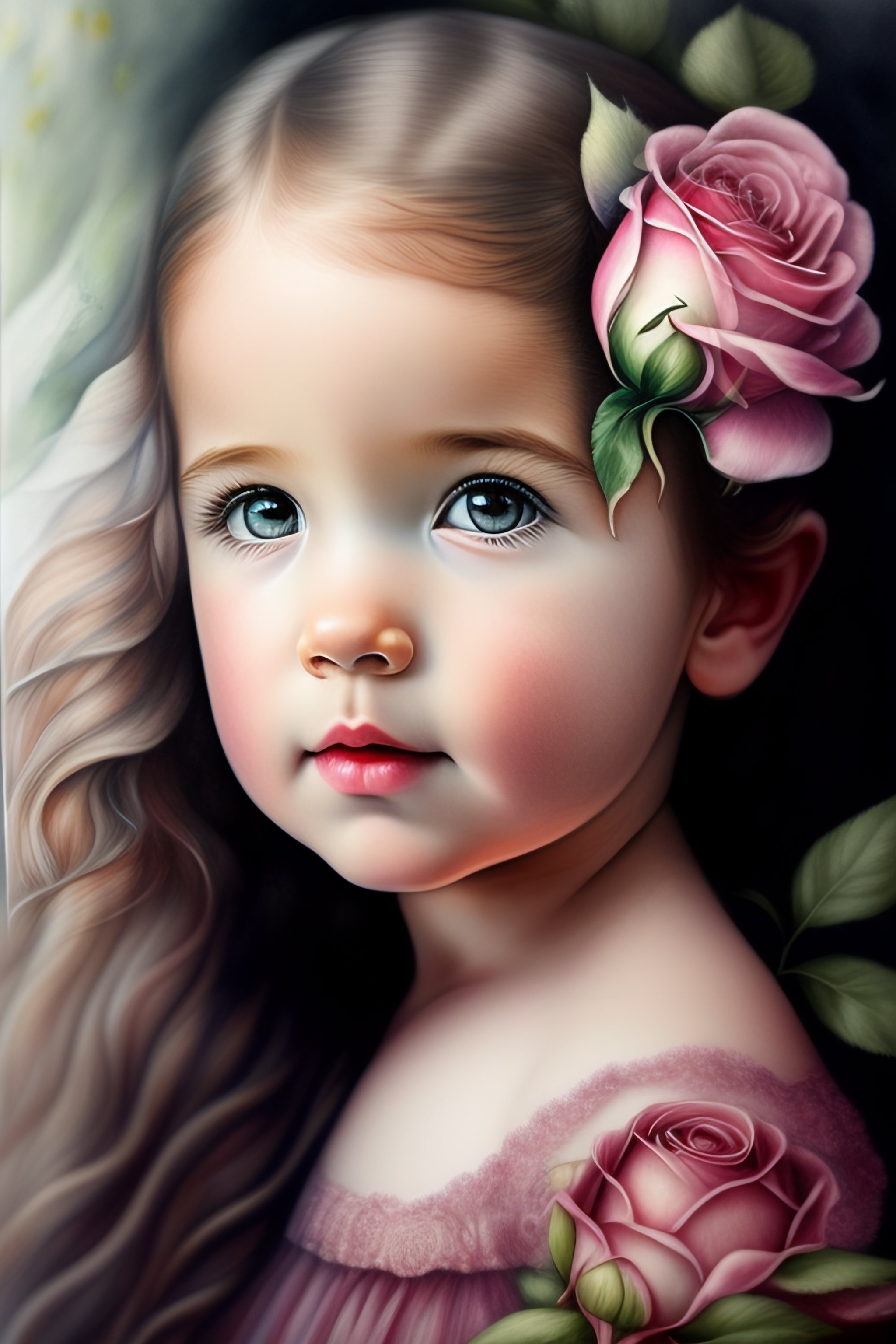 Hyper realistic full figure pencil drawing, toddler rose fairy, water color, detailed, by anna dittmann