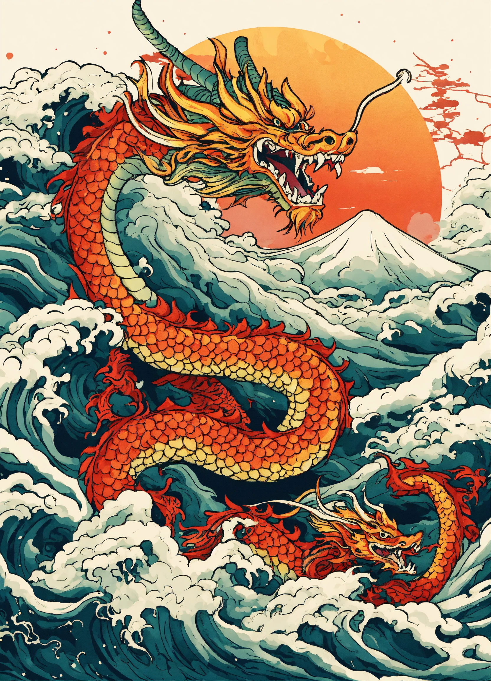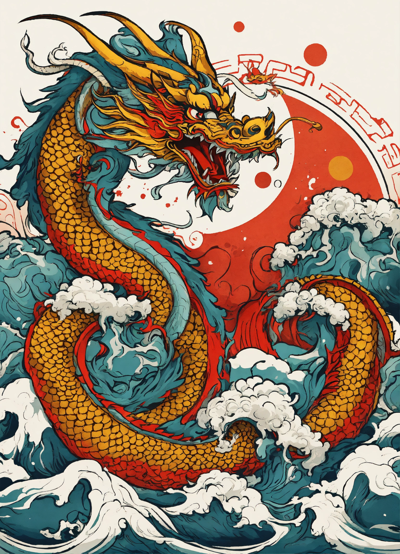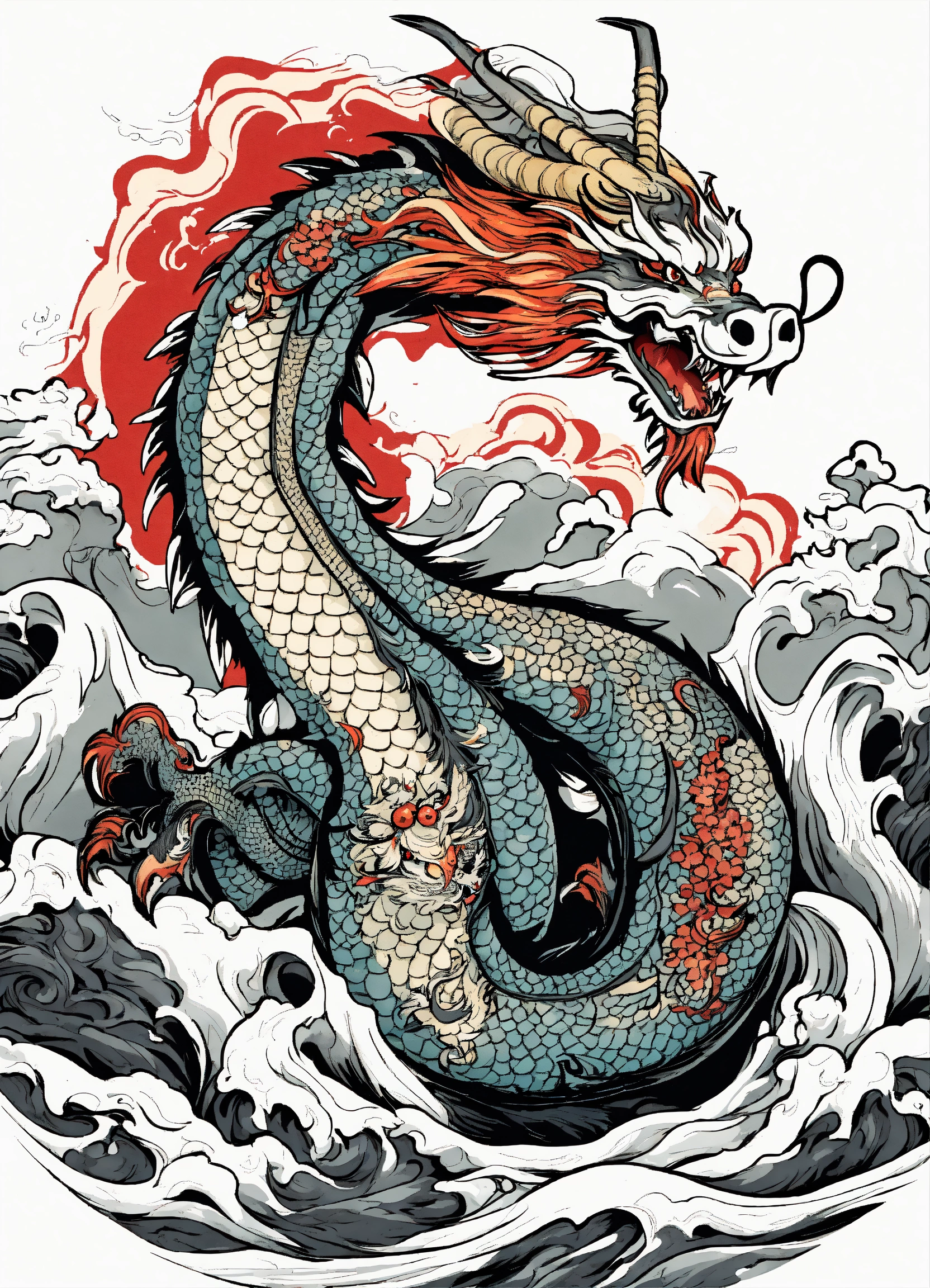 Illustration of japanese dragon, japanese ocean detailed design for streetwear and urban style t-shirts design, hoodies, etc pro vector, high quality, digital art, white background