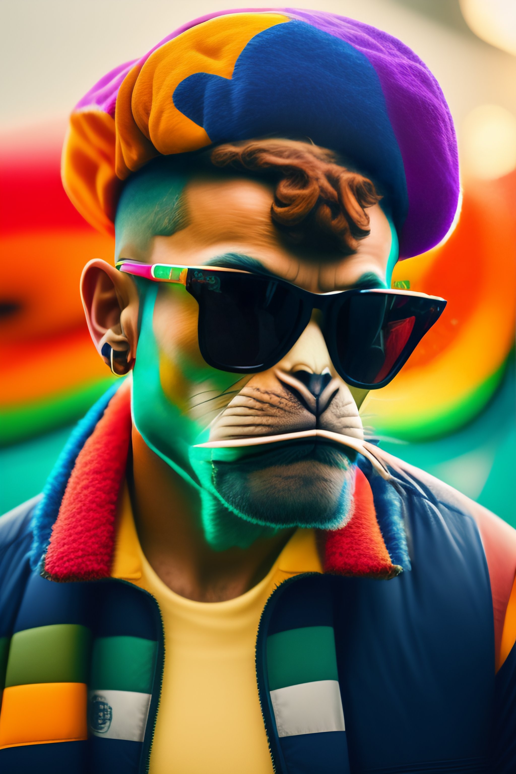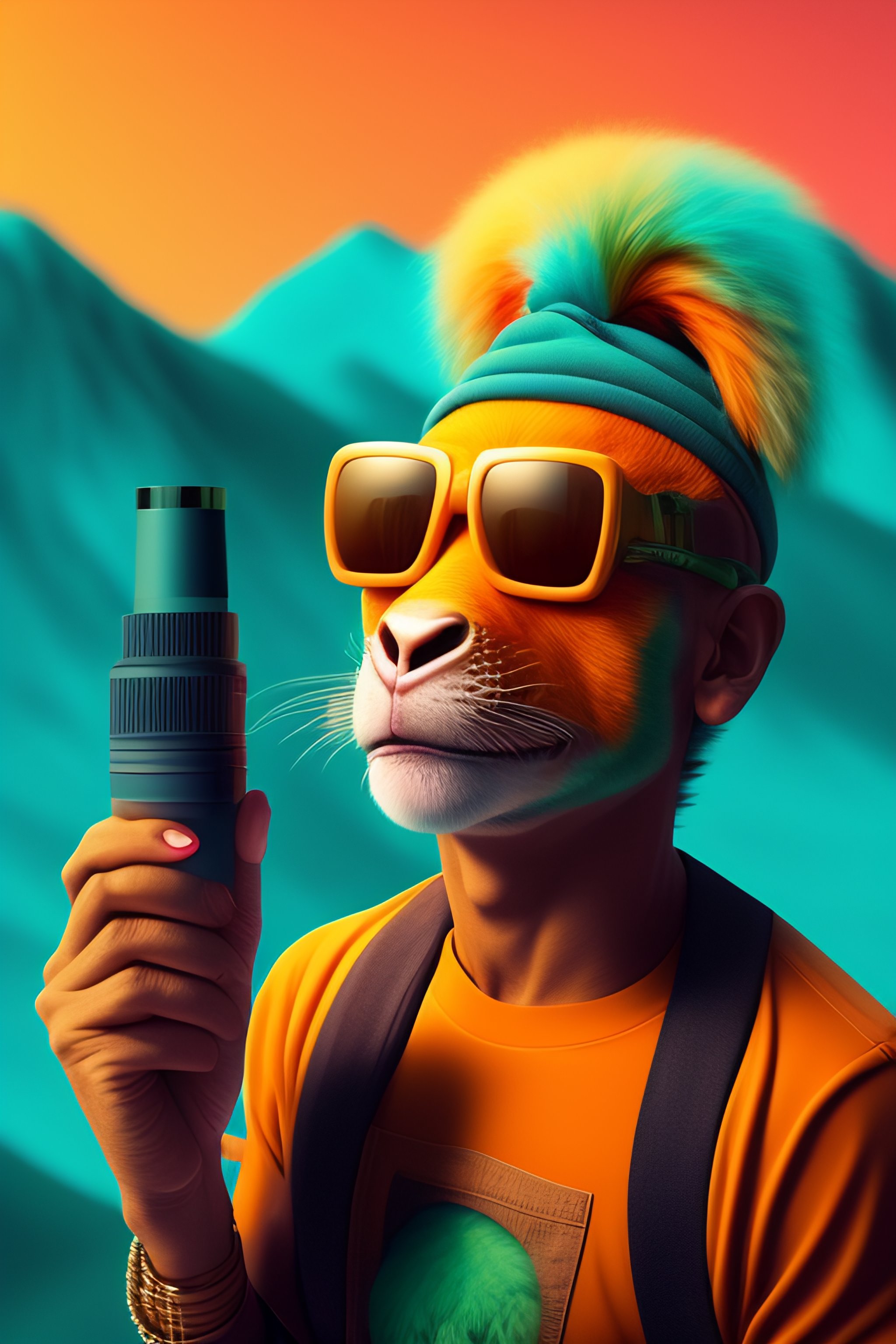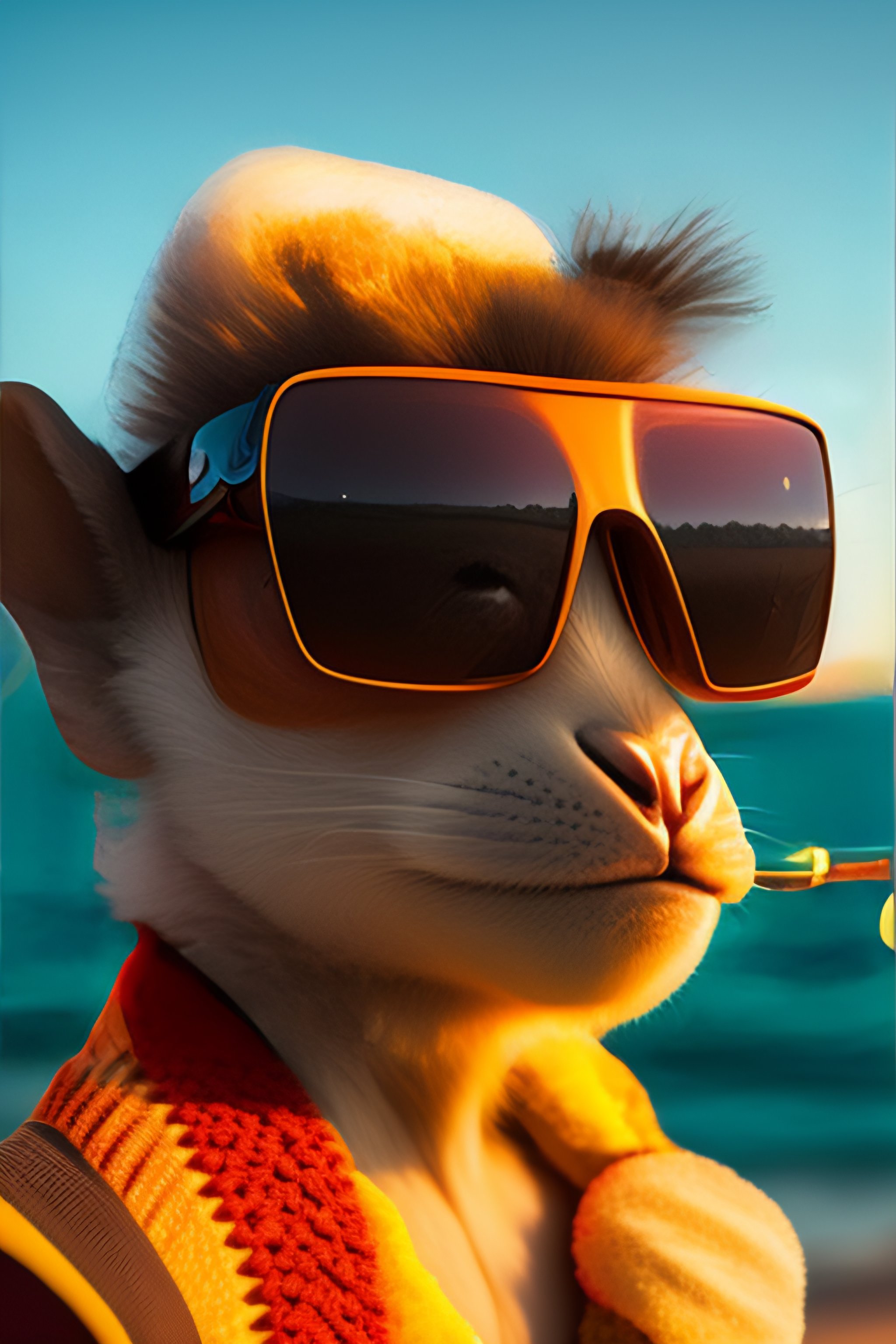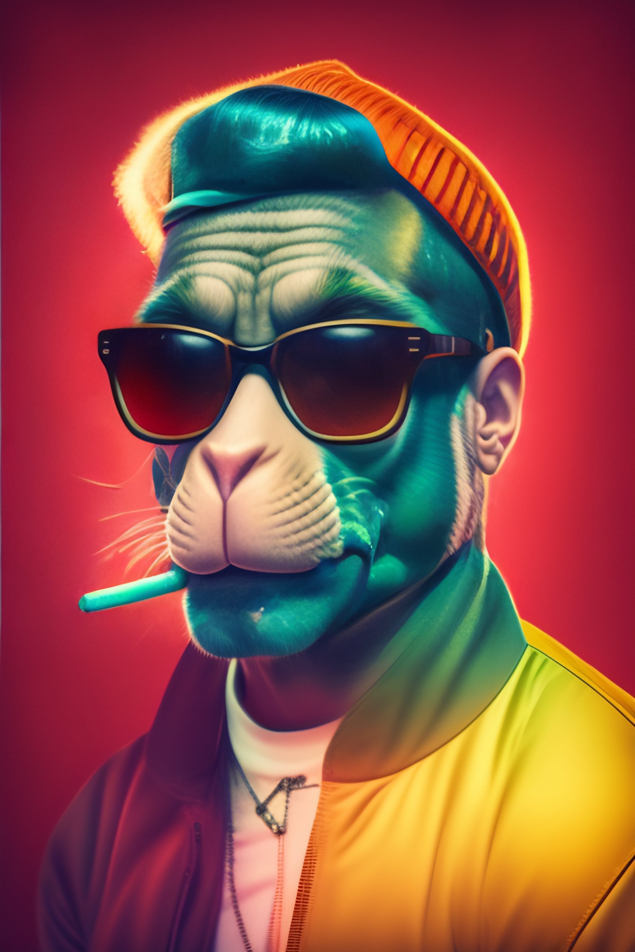 "a cartoonish illustration of a hipster monkey puffing on a vape while wearing sunglasses