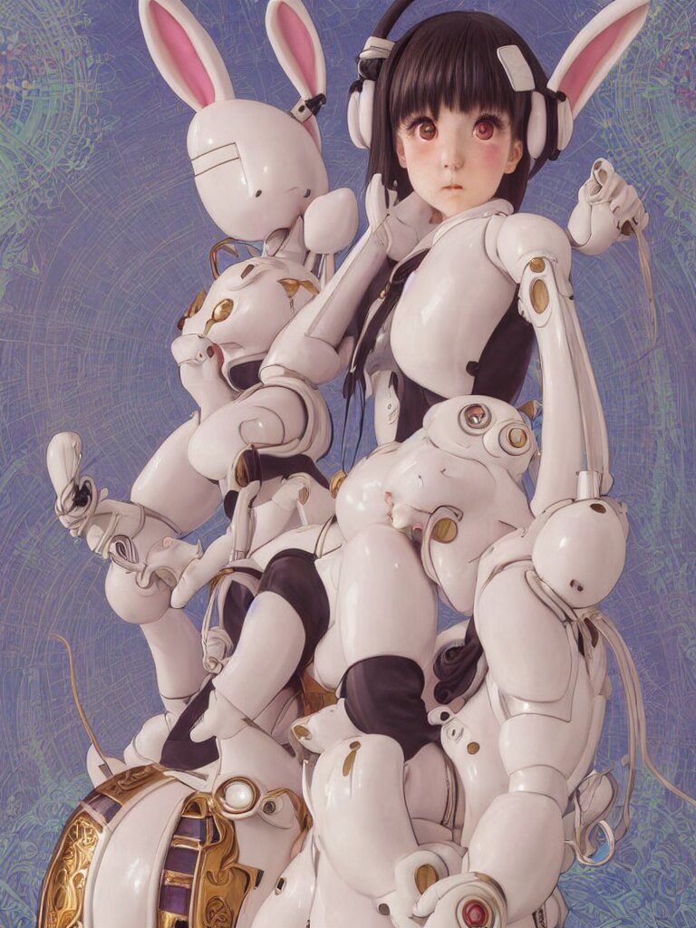 Usagi bunny rabbit, lain iwakura, rei ayanami plug suit, female anime character, 3 d render beeple, realistic detailed painting of a 1 6 - year old girl who resembles millie bobby brown, as an angel with a golden halo wearing intricate, detailed art nouveau armor and silk, by alphonse mucha, ayami kojima amano, charlie bowater, karol bak, greg hildebrandt
