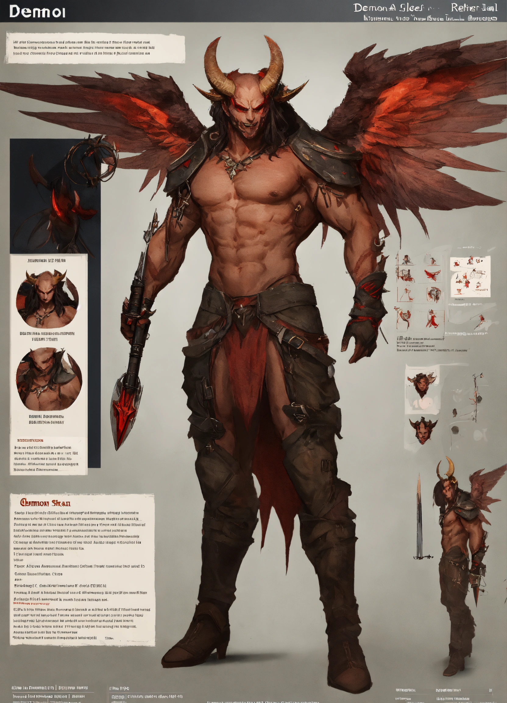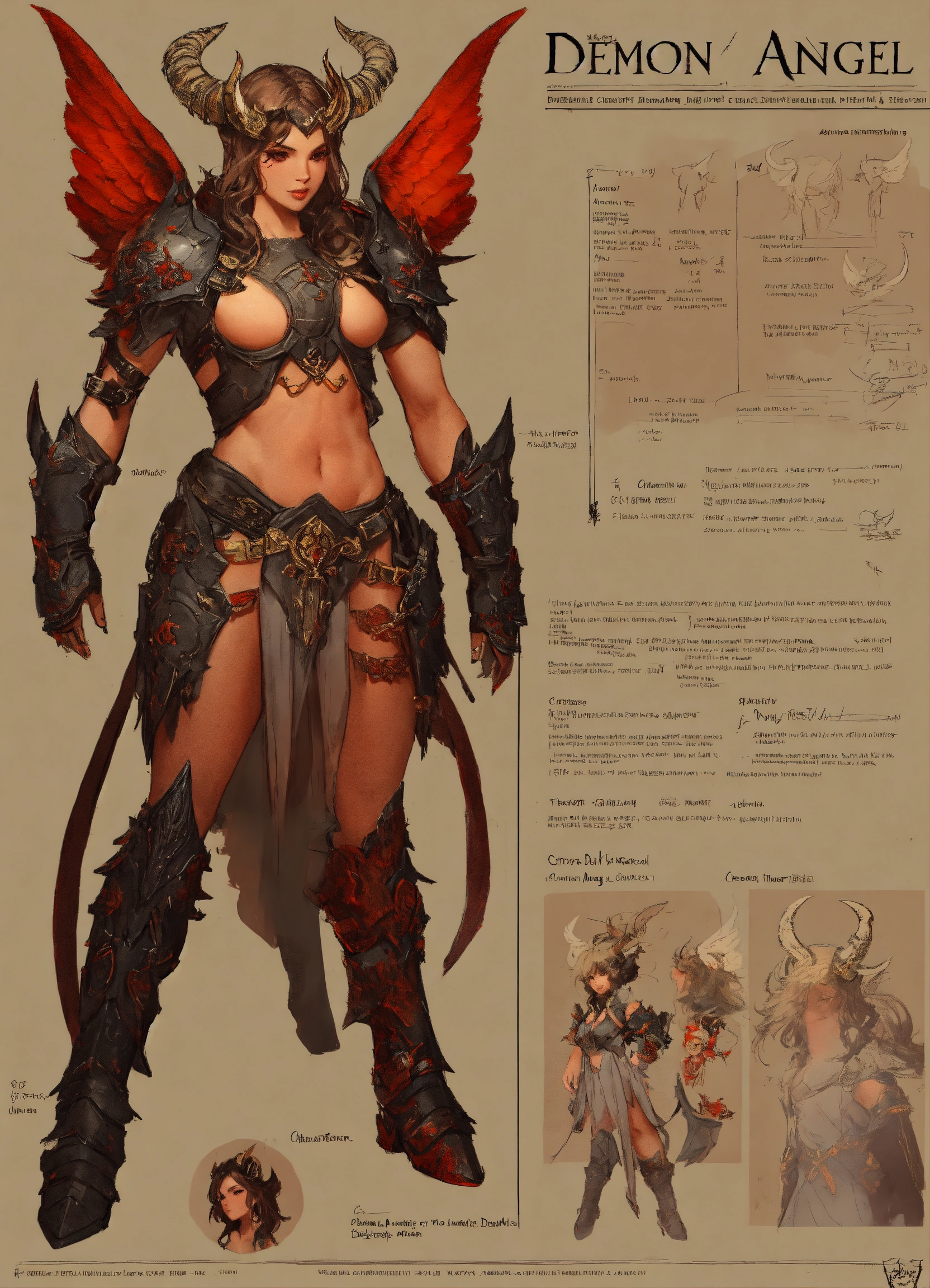Demon angel, character sheet, character design, chart, reference sheet, multiple views, high detail, fine details, concept art