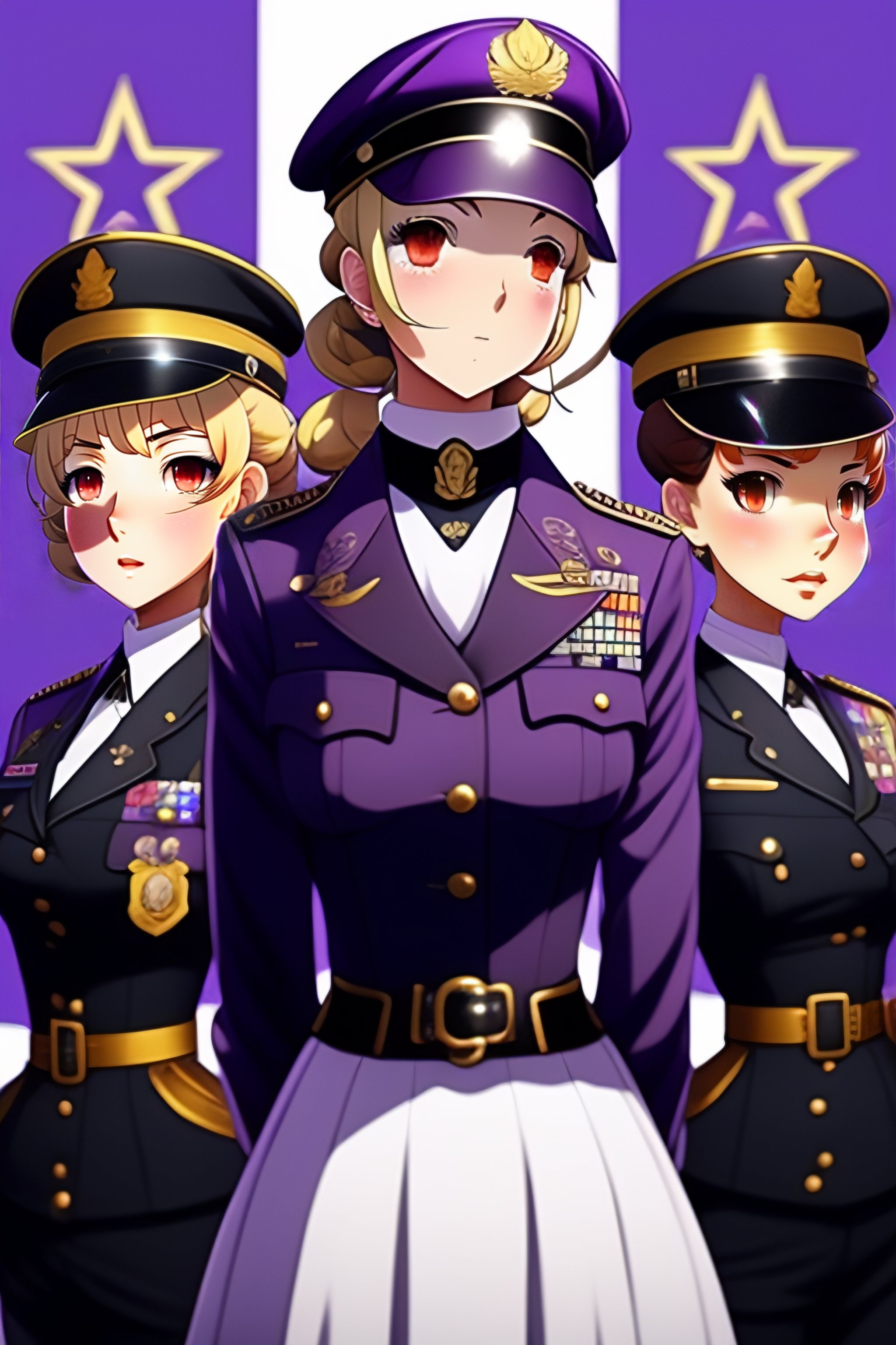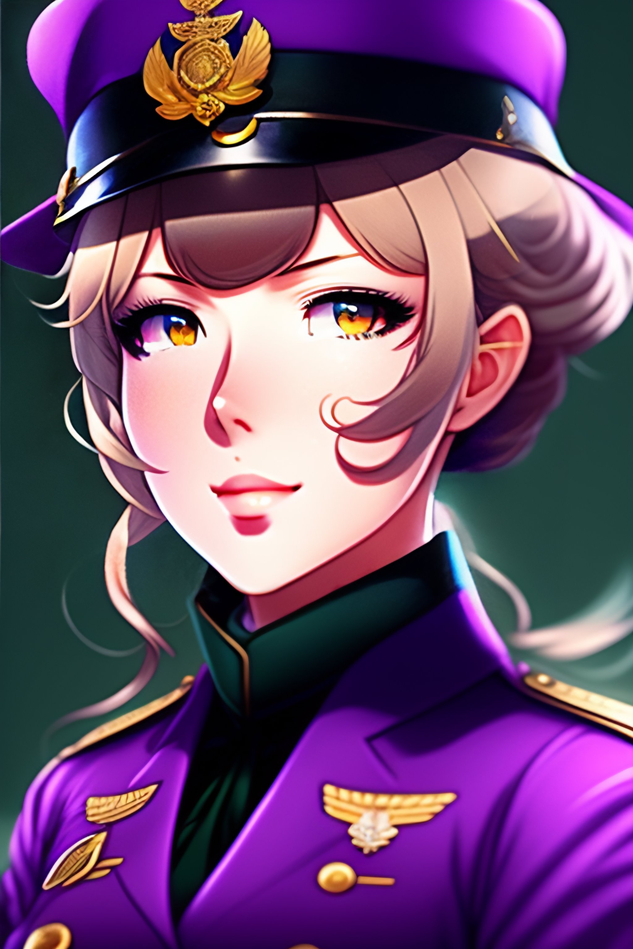 One military officer girl; anime style; vintage 50's; world war; military officer inspector; violet evergarden; black colors