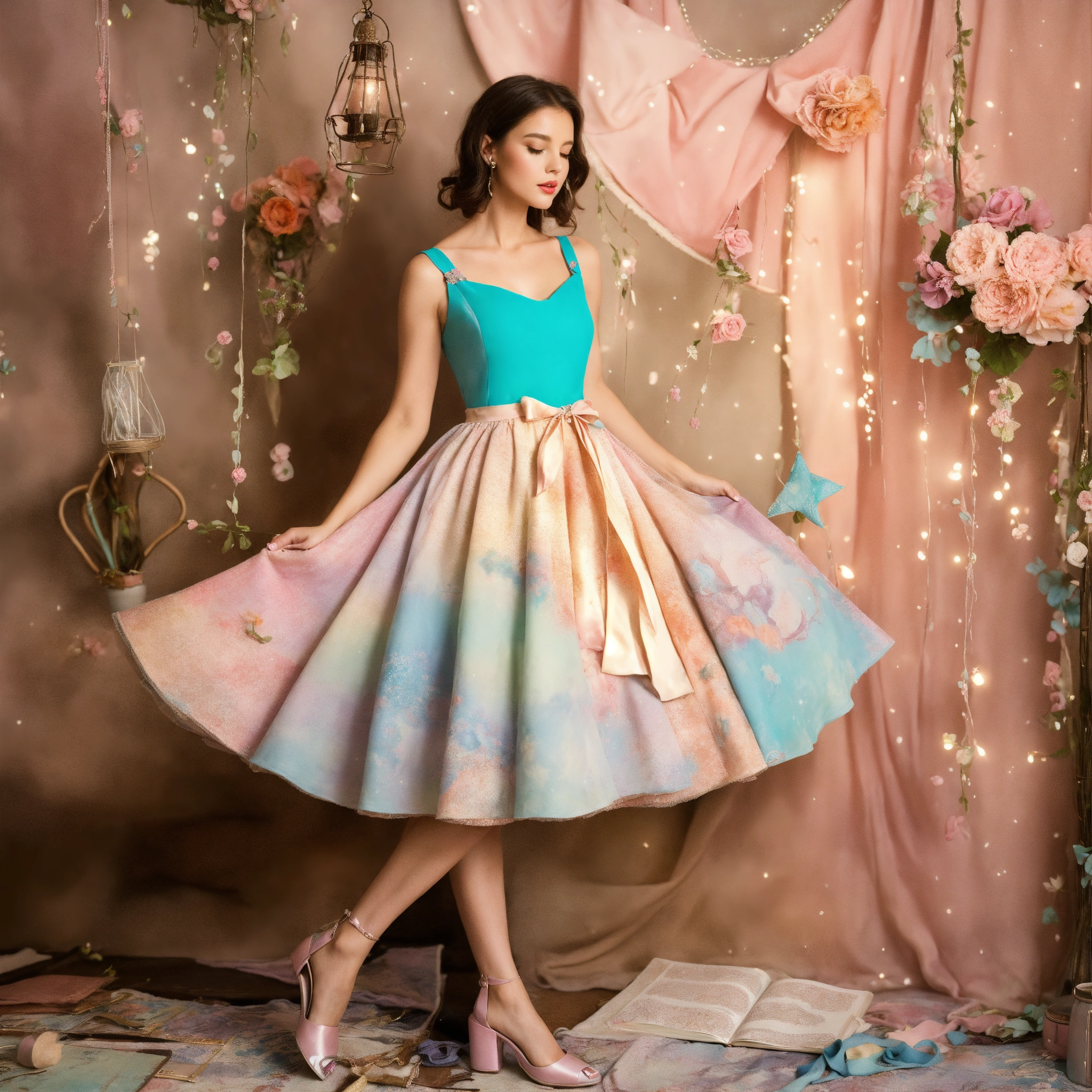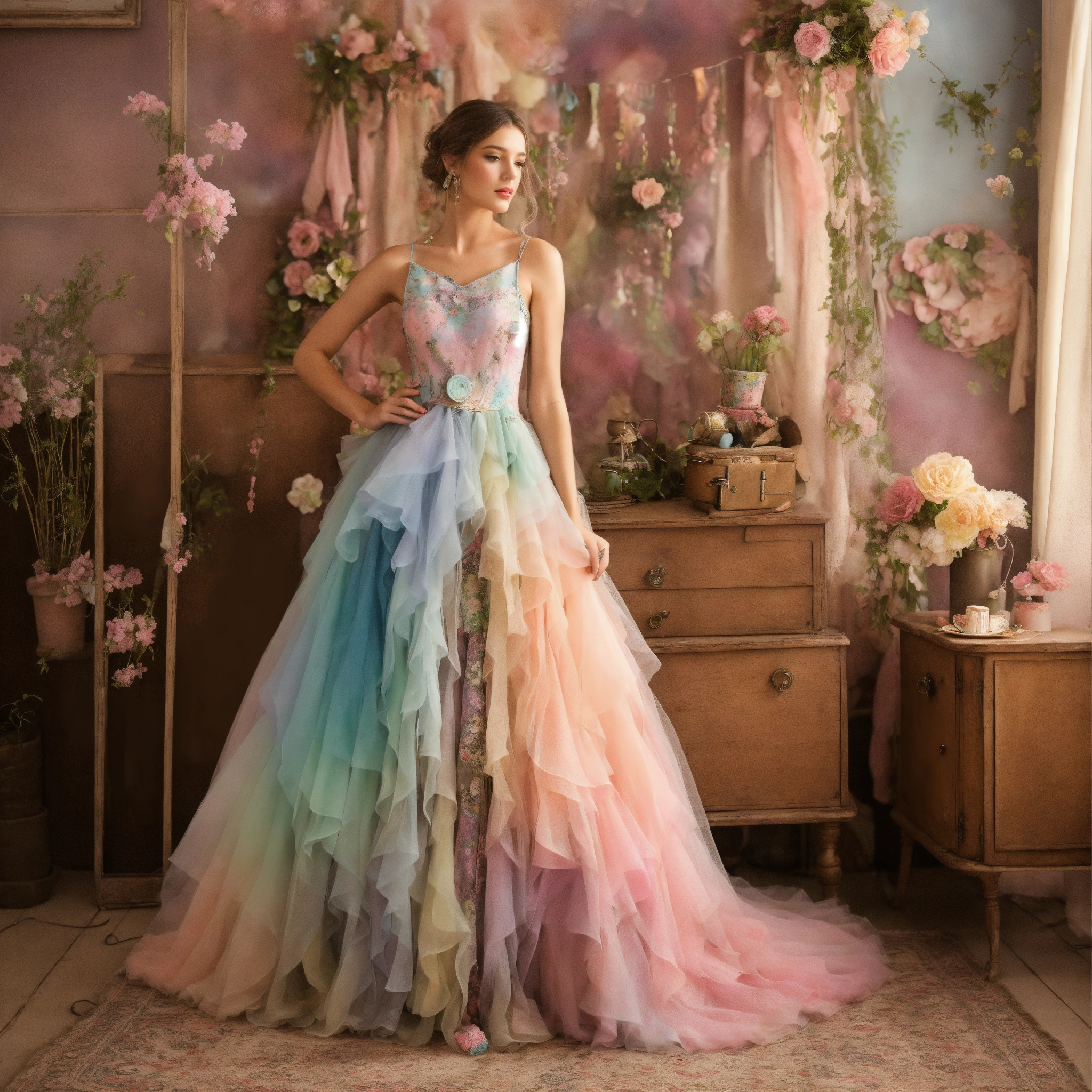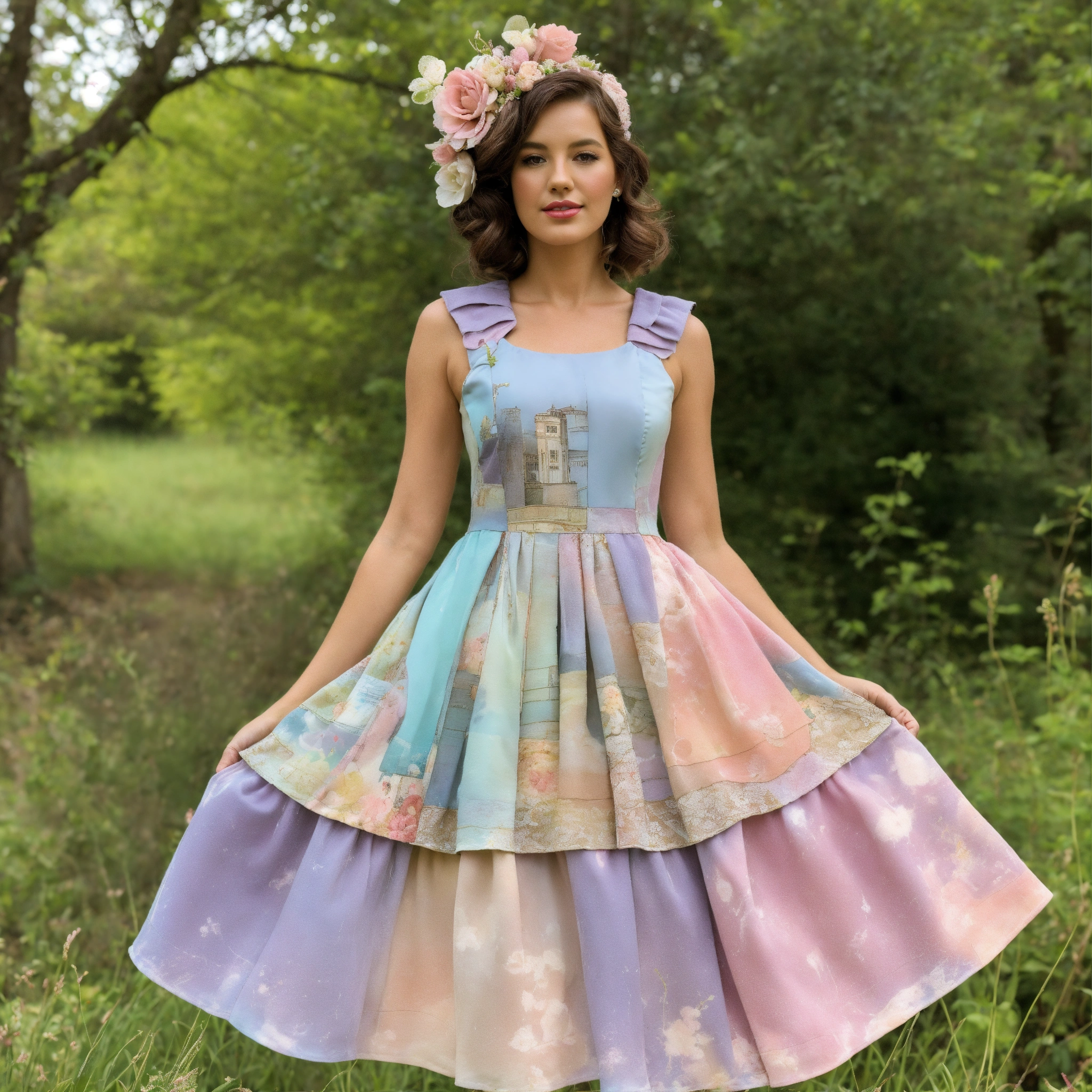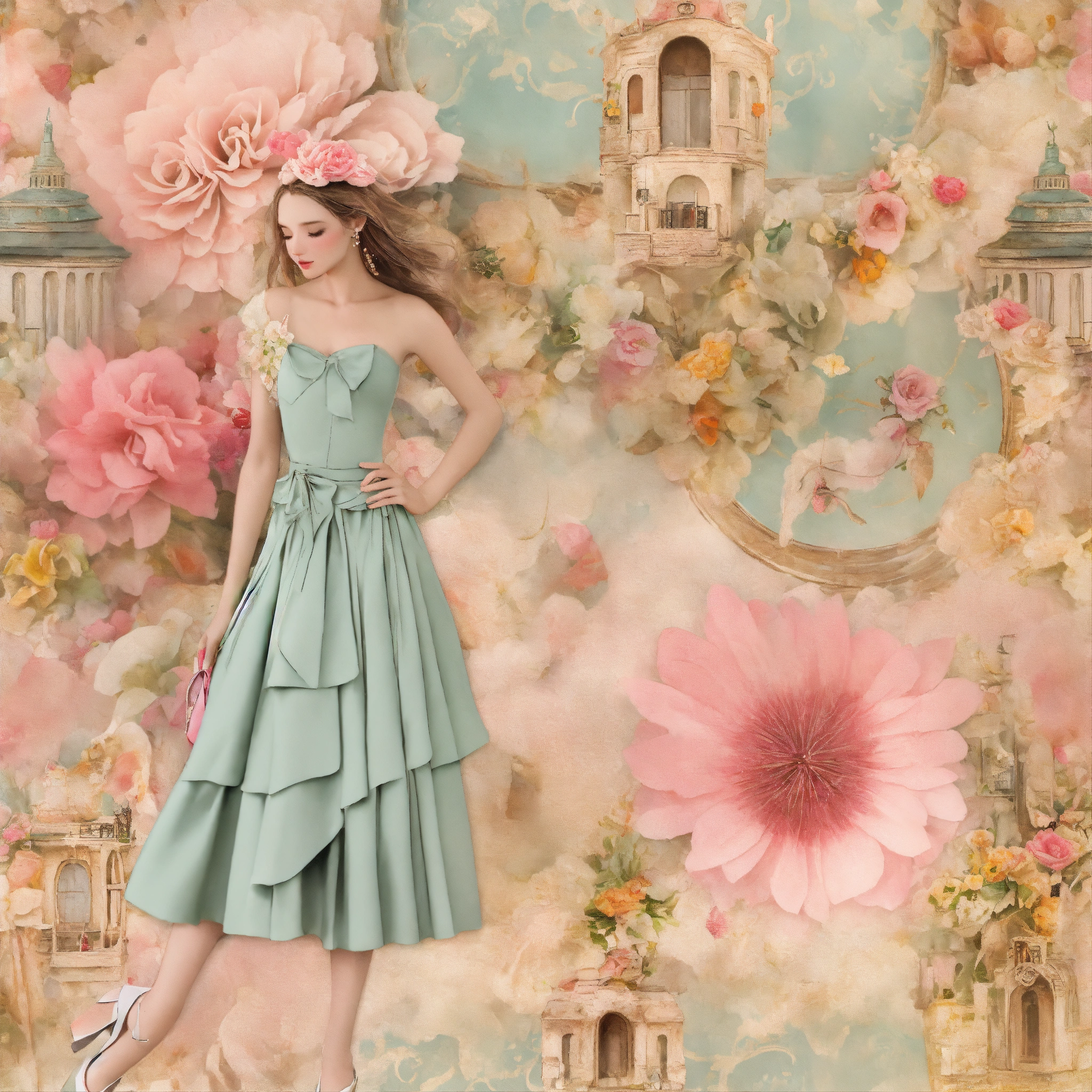 Shabby chic dreamy mist pastel junk journals retro dress sewing patterns model and instructions swirling magical fairytale abstract art style