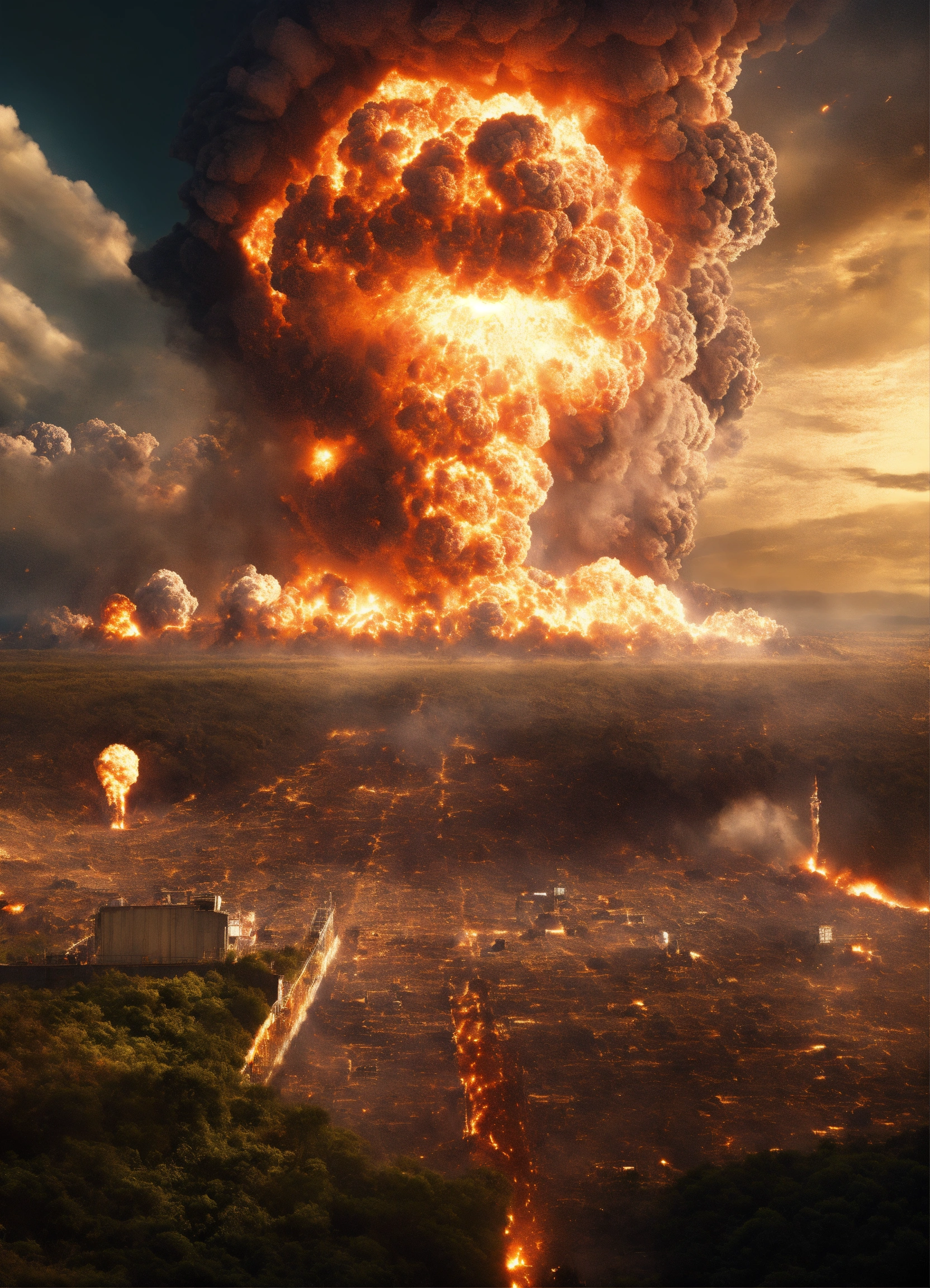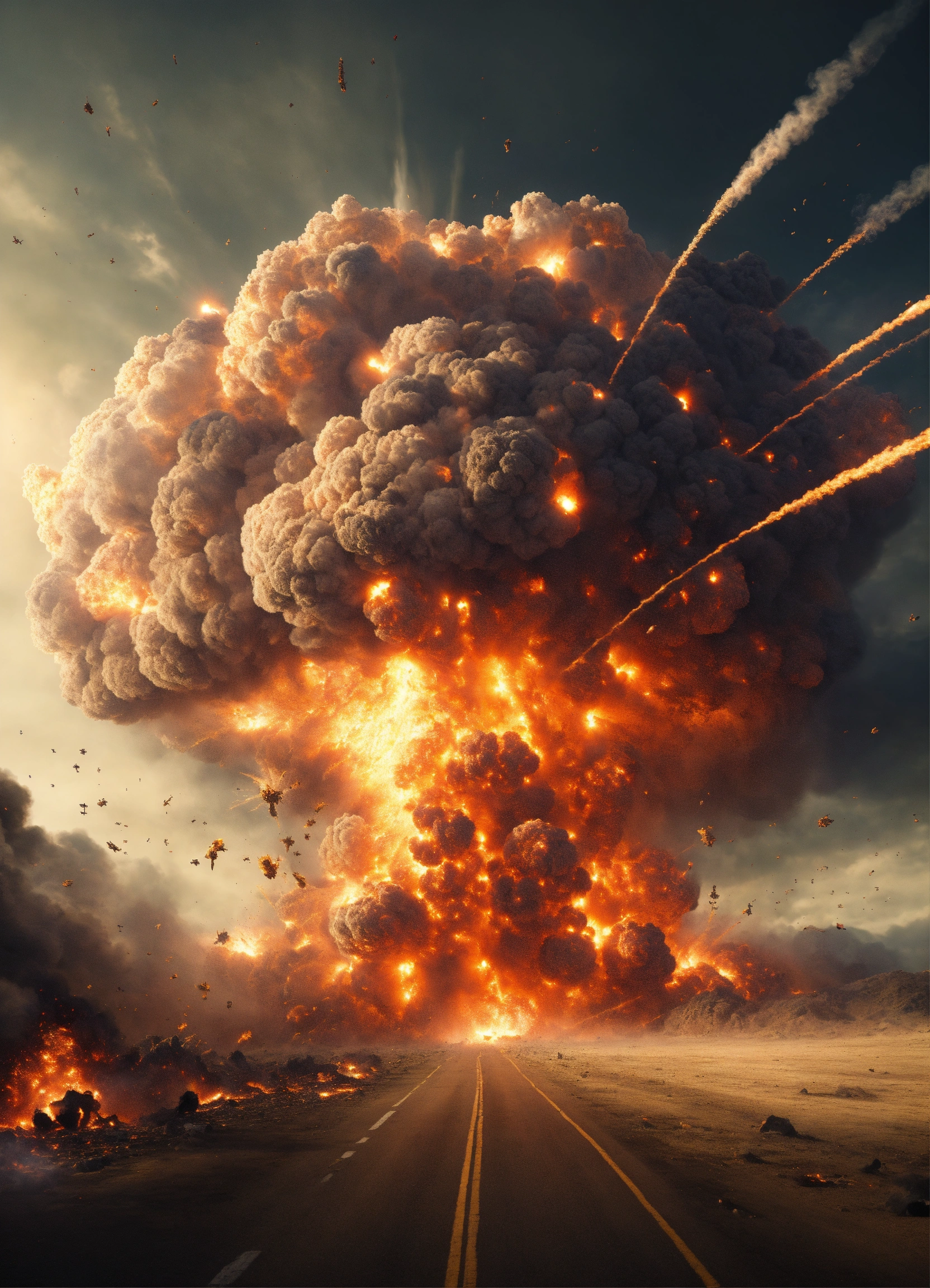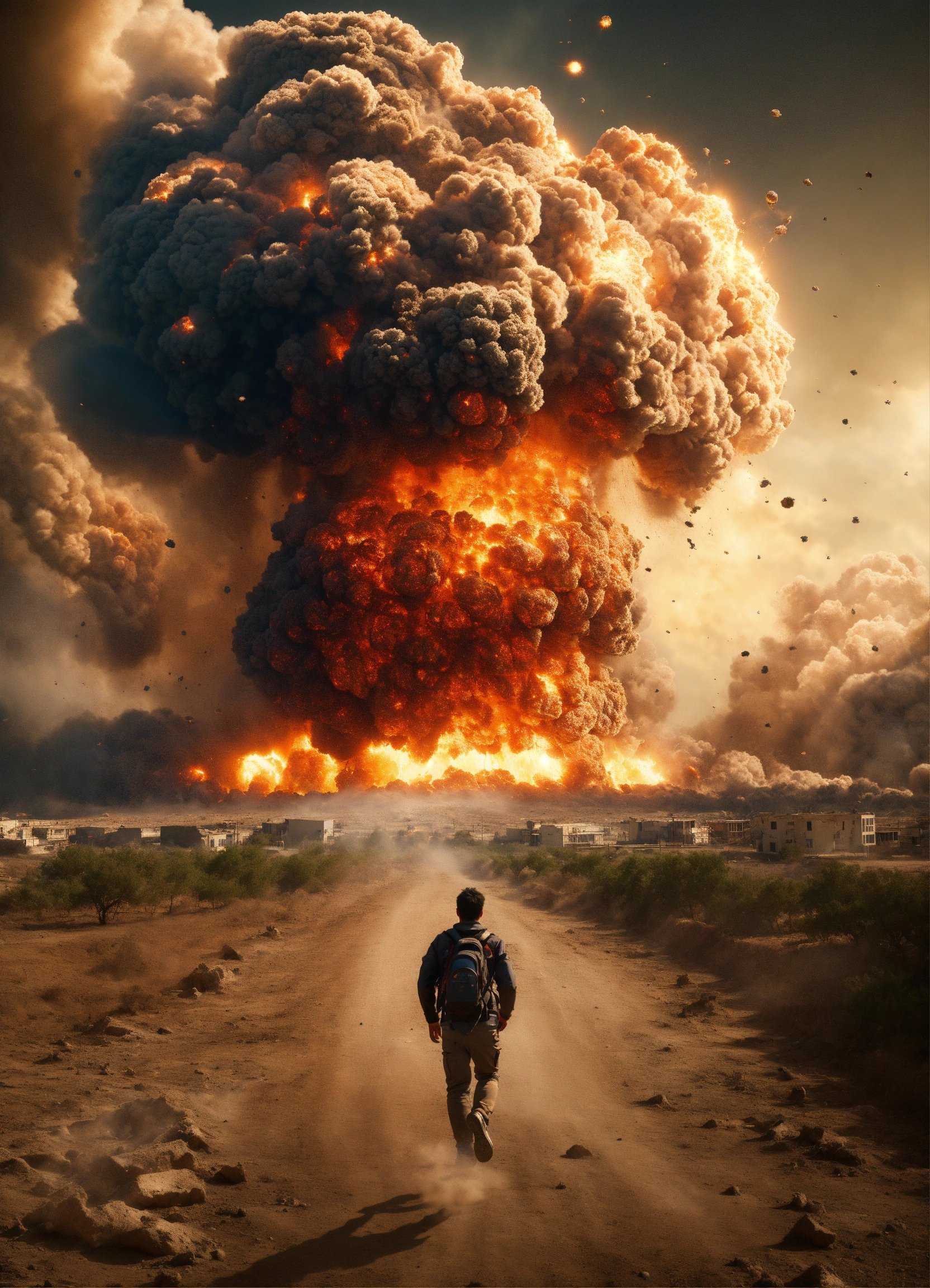 A mass explosion on earth that destroys all of humanity, scary, massive explosion, humans running away from it