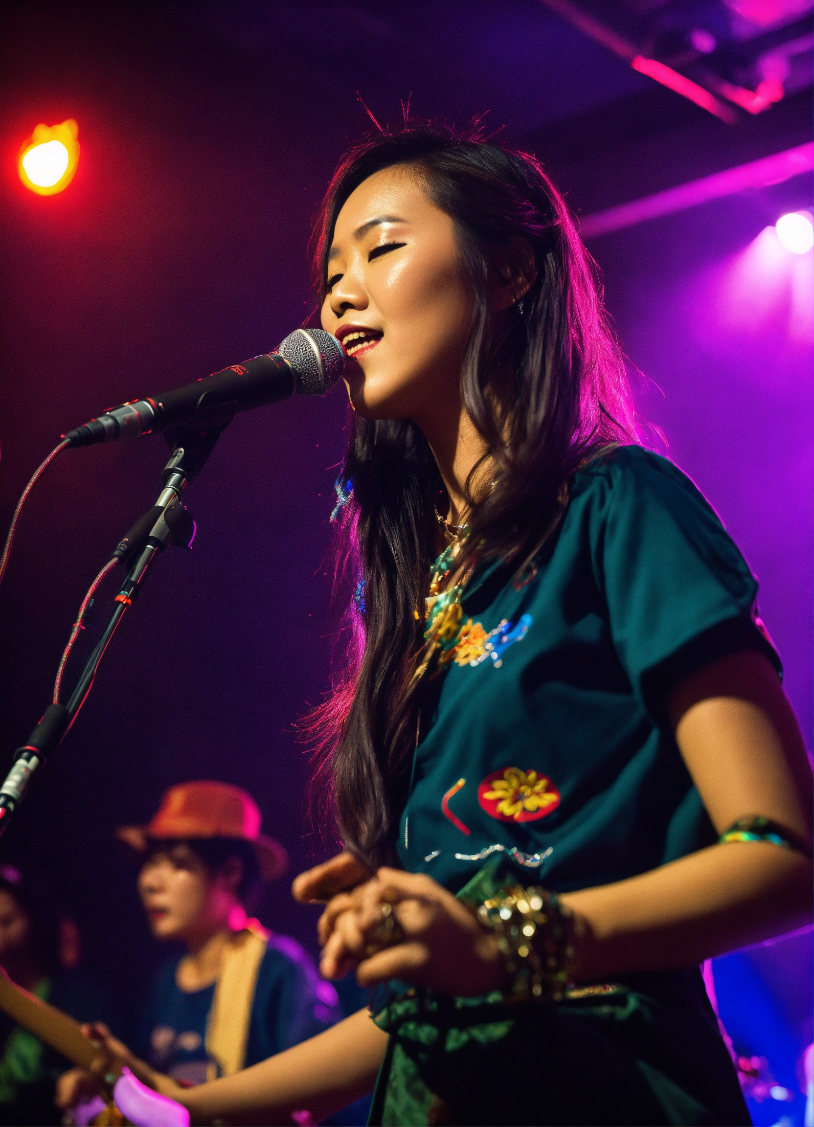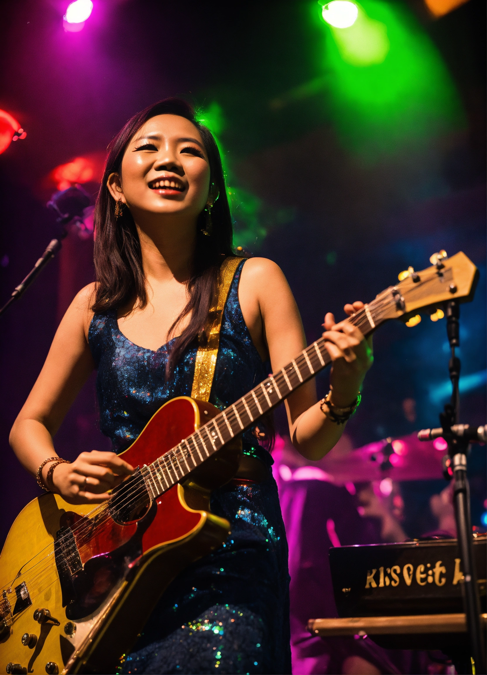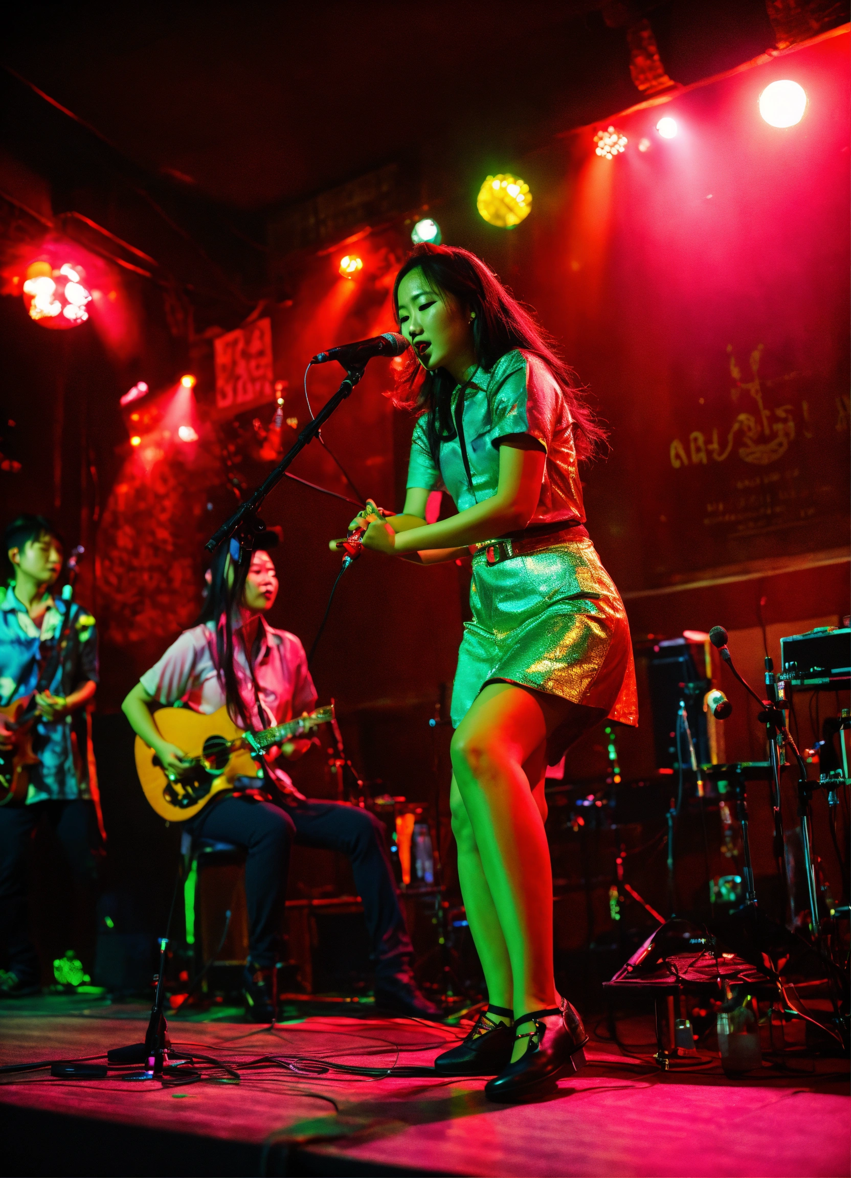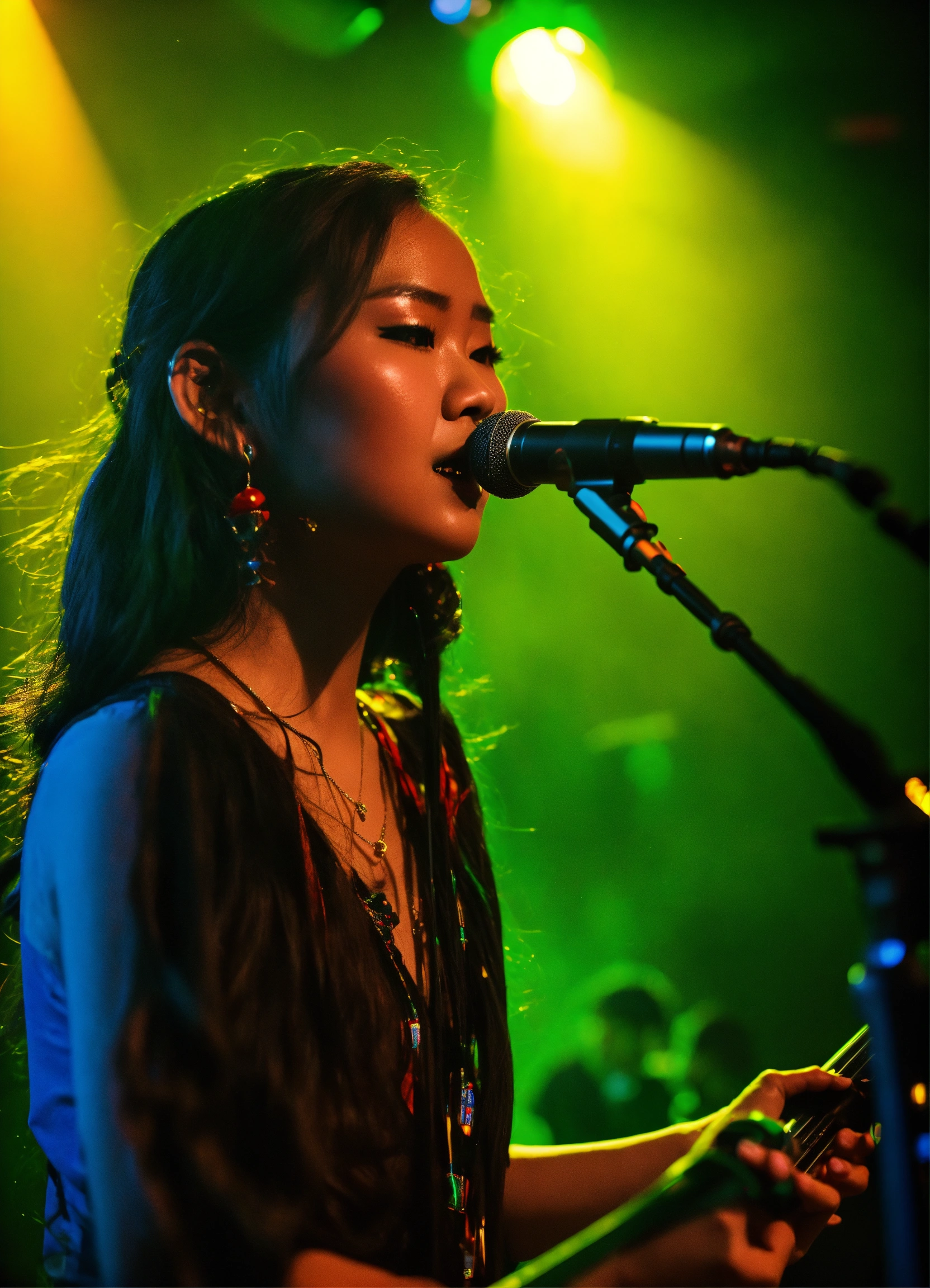 Female vietnamese reggae performing with a band at a local club in ho chi minh city