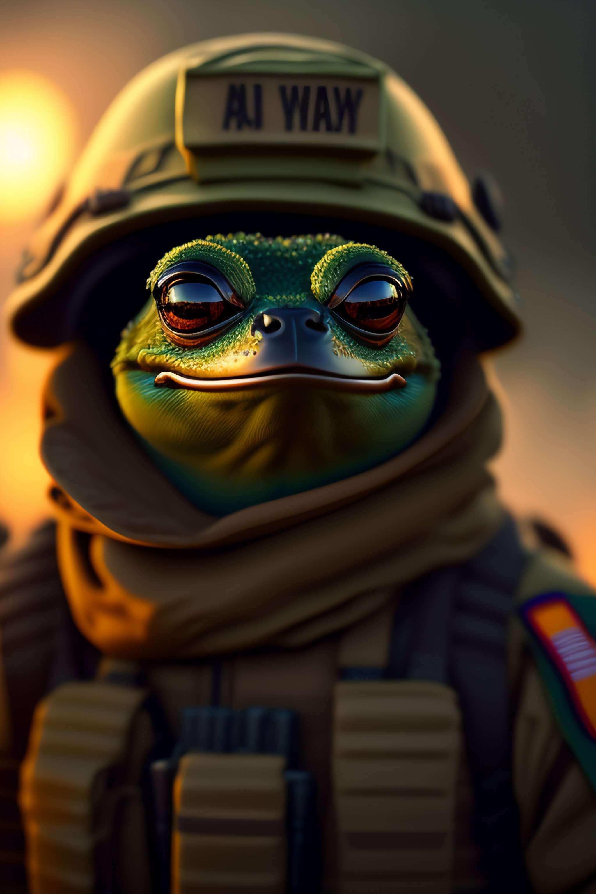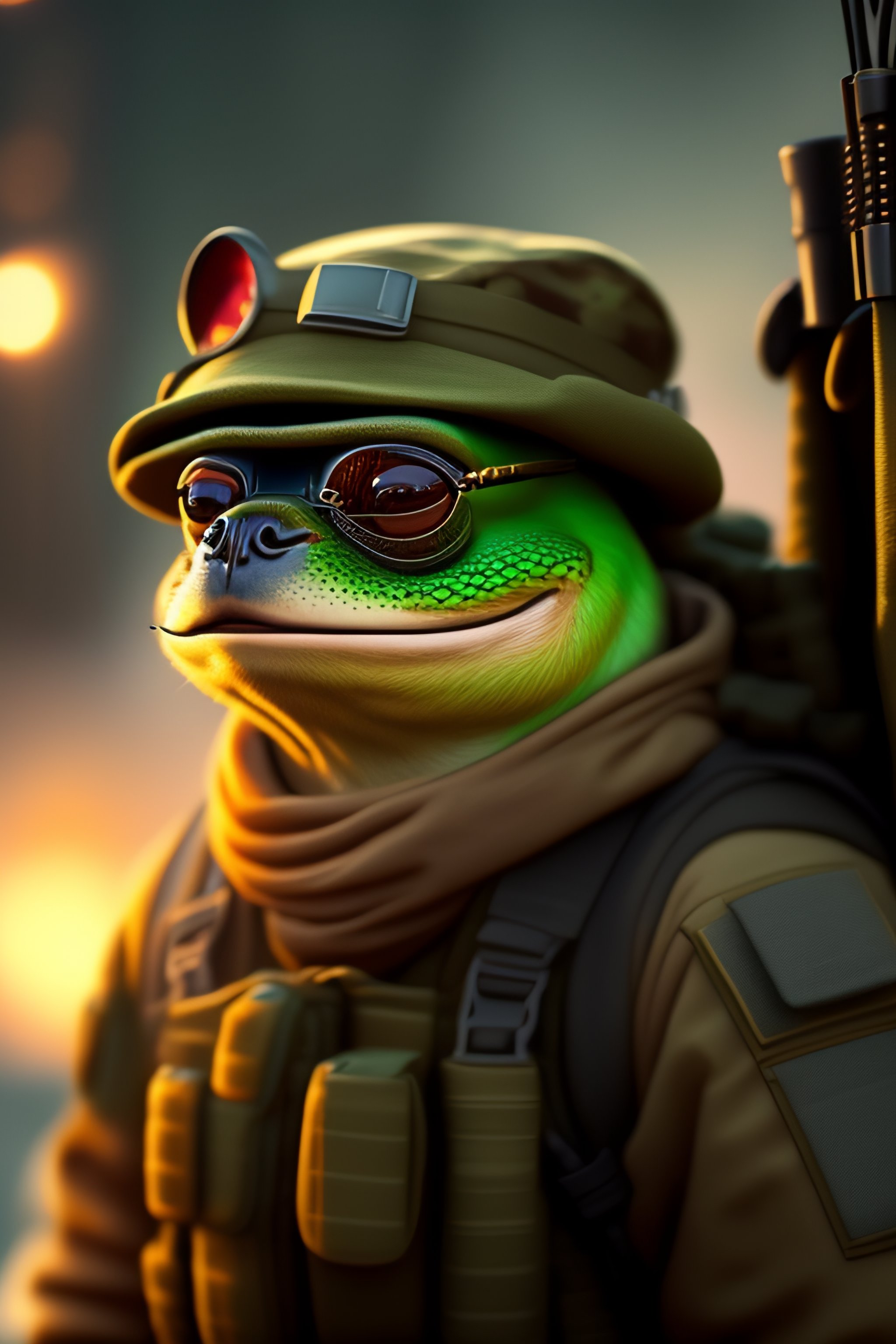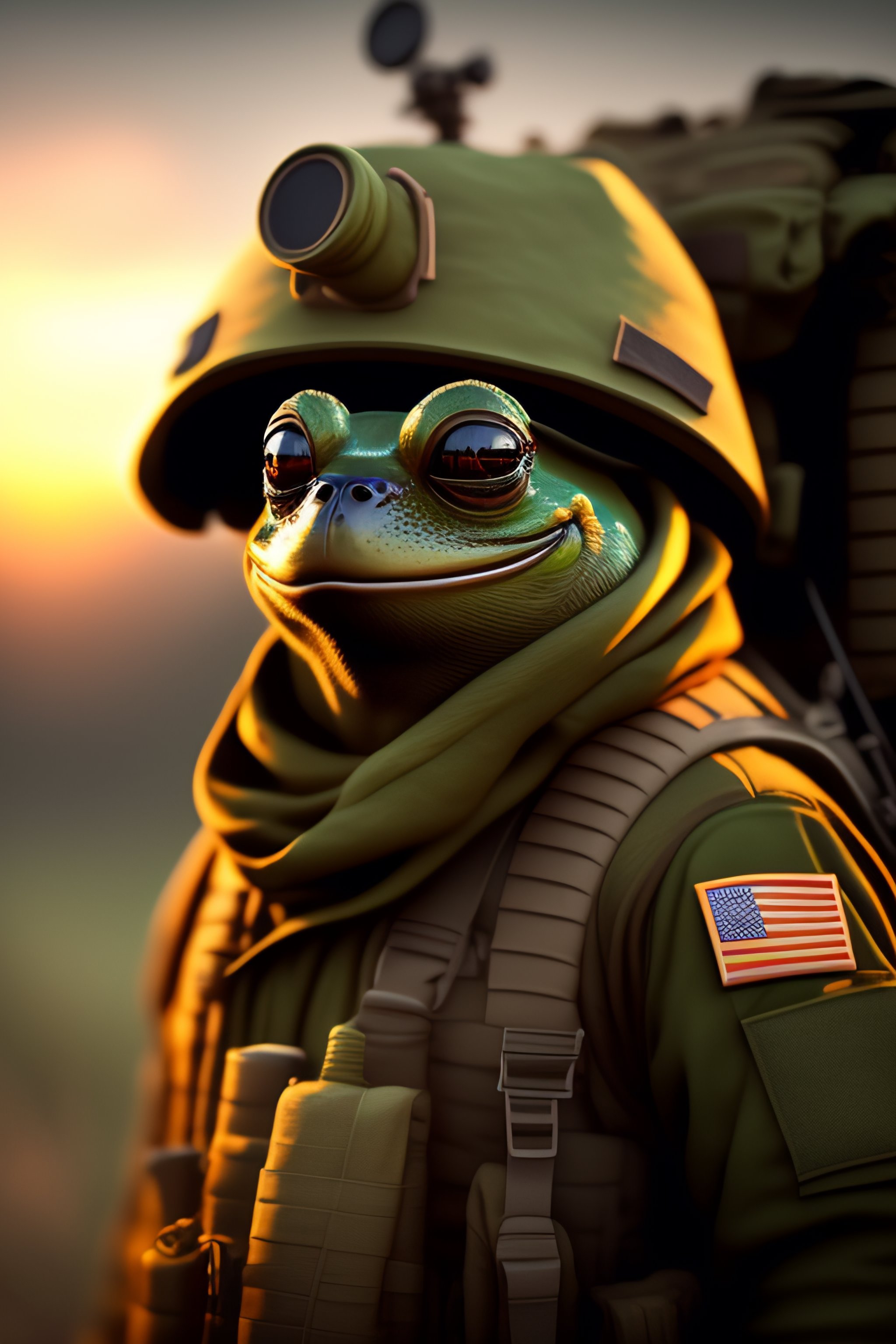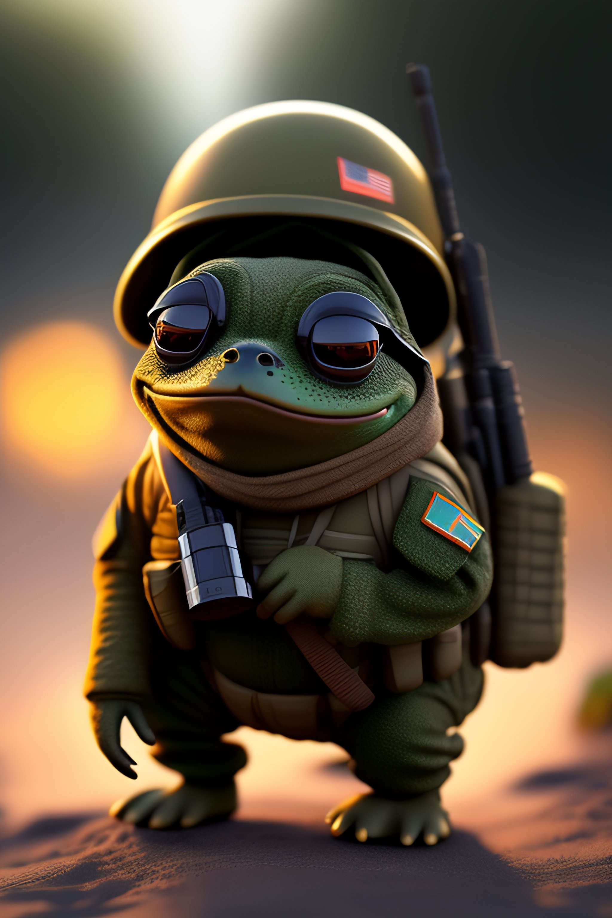 An exhausted pepe the frog at the frontlines in the army at night with his platoon fighting, key lighting, soft lights, foggy, by steve hanks, by lisa yuskavage, by serov valentin, by tarkovsky, 8 k render, detailed, cute cartoon style, very cute adorable face
