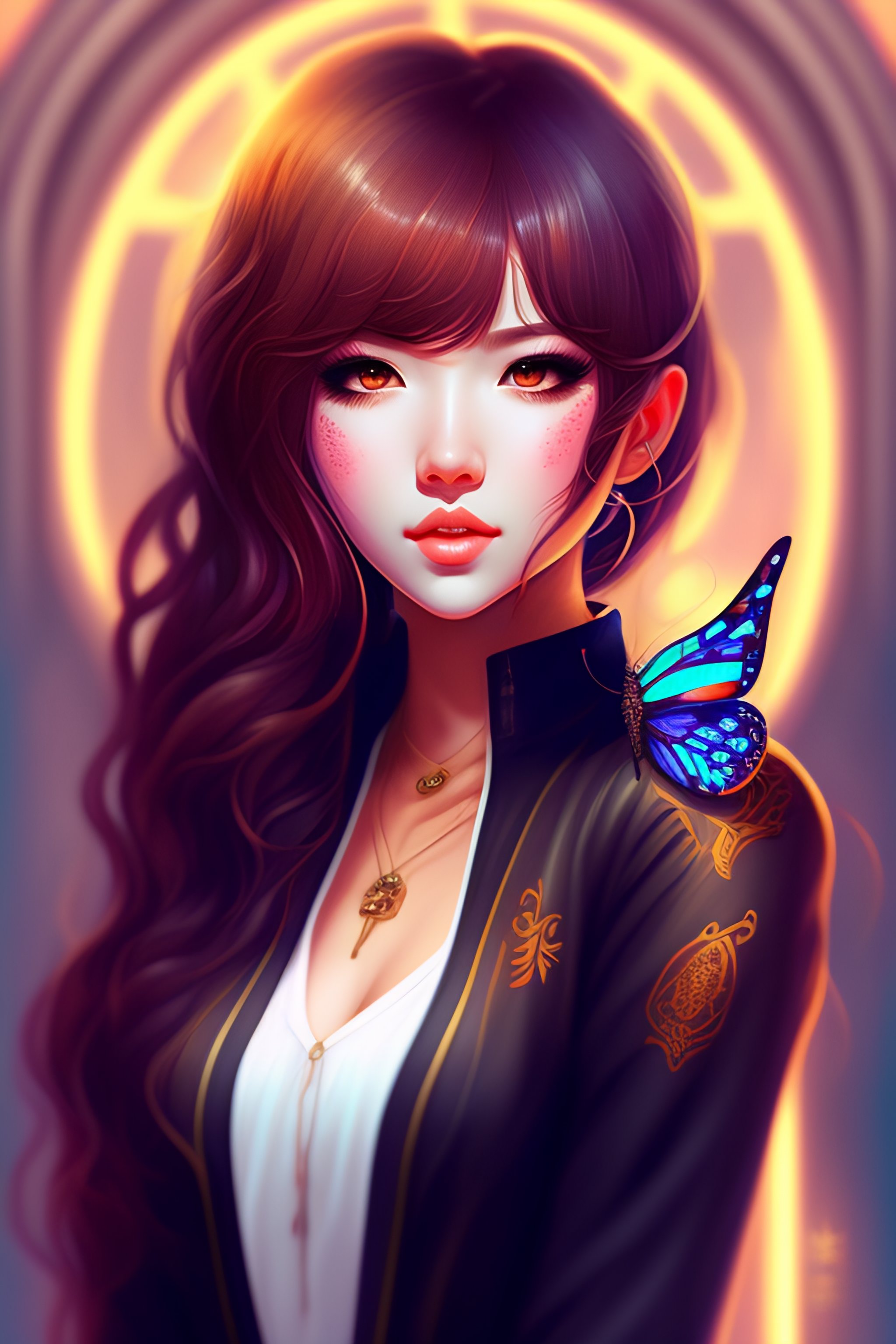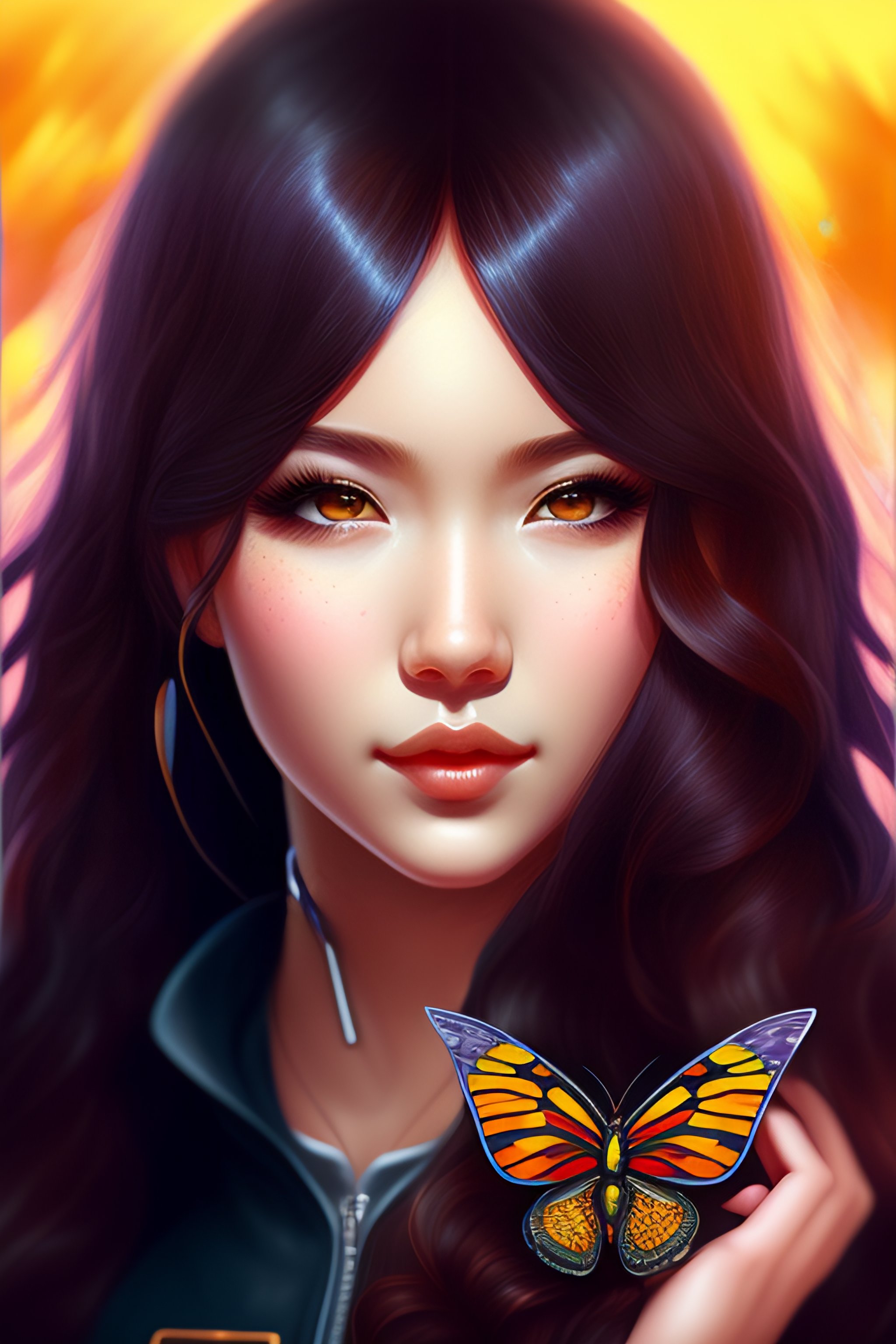 Portrait of a cute beautiful girl holding a balisong butterfly knife