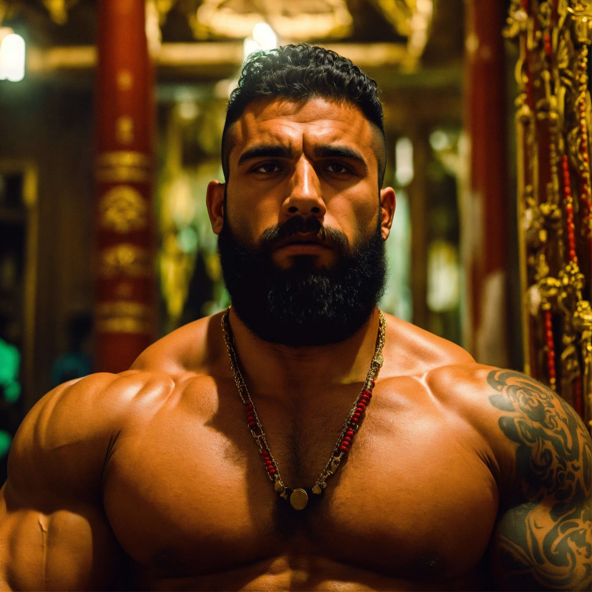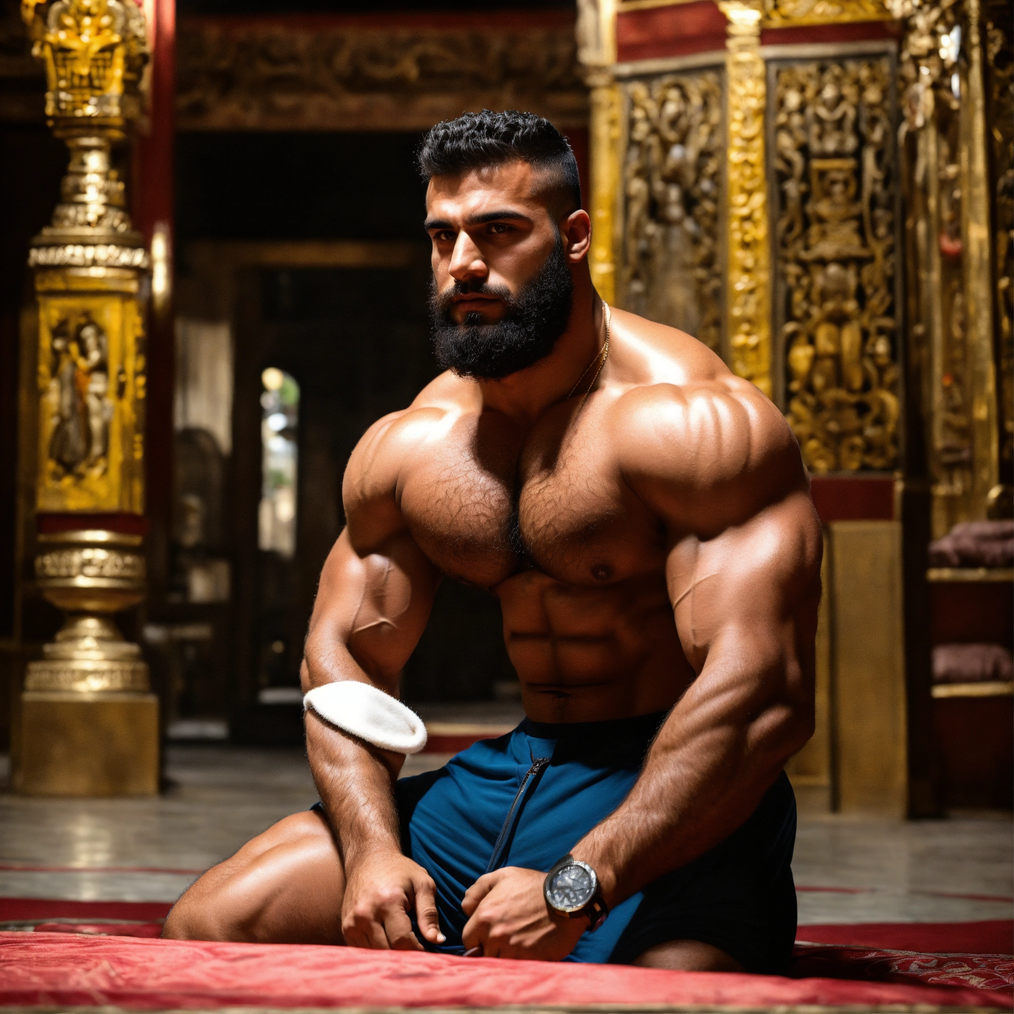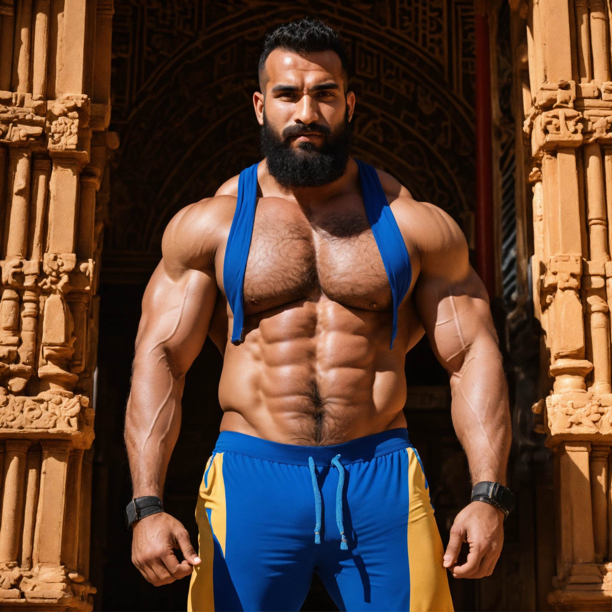 30-year-old hairy algerian man with big muscles