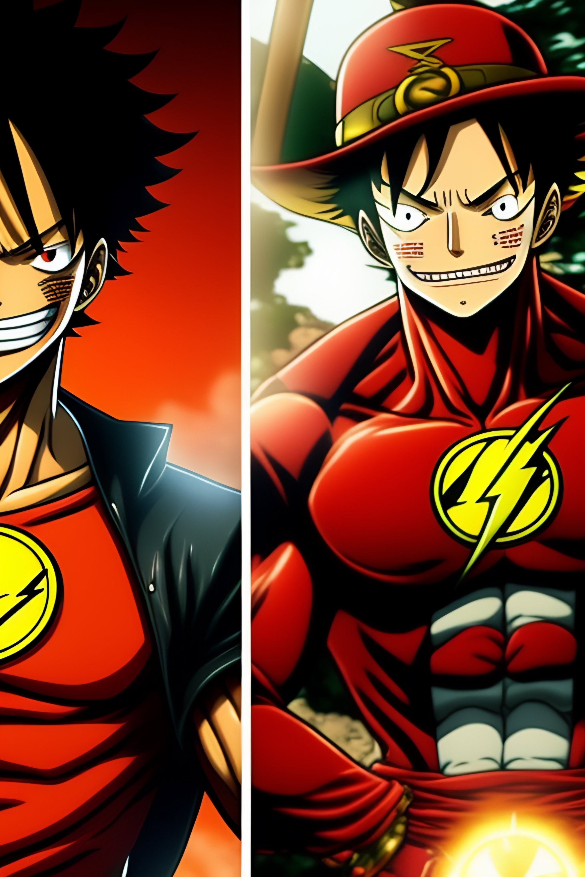 Luffy from one piece manga as flash from the flash tv series