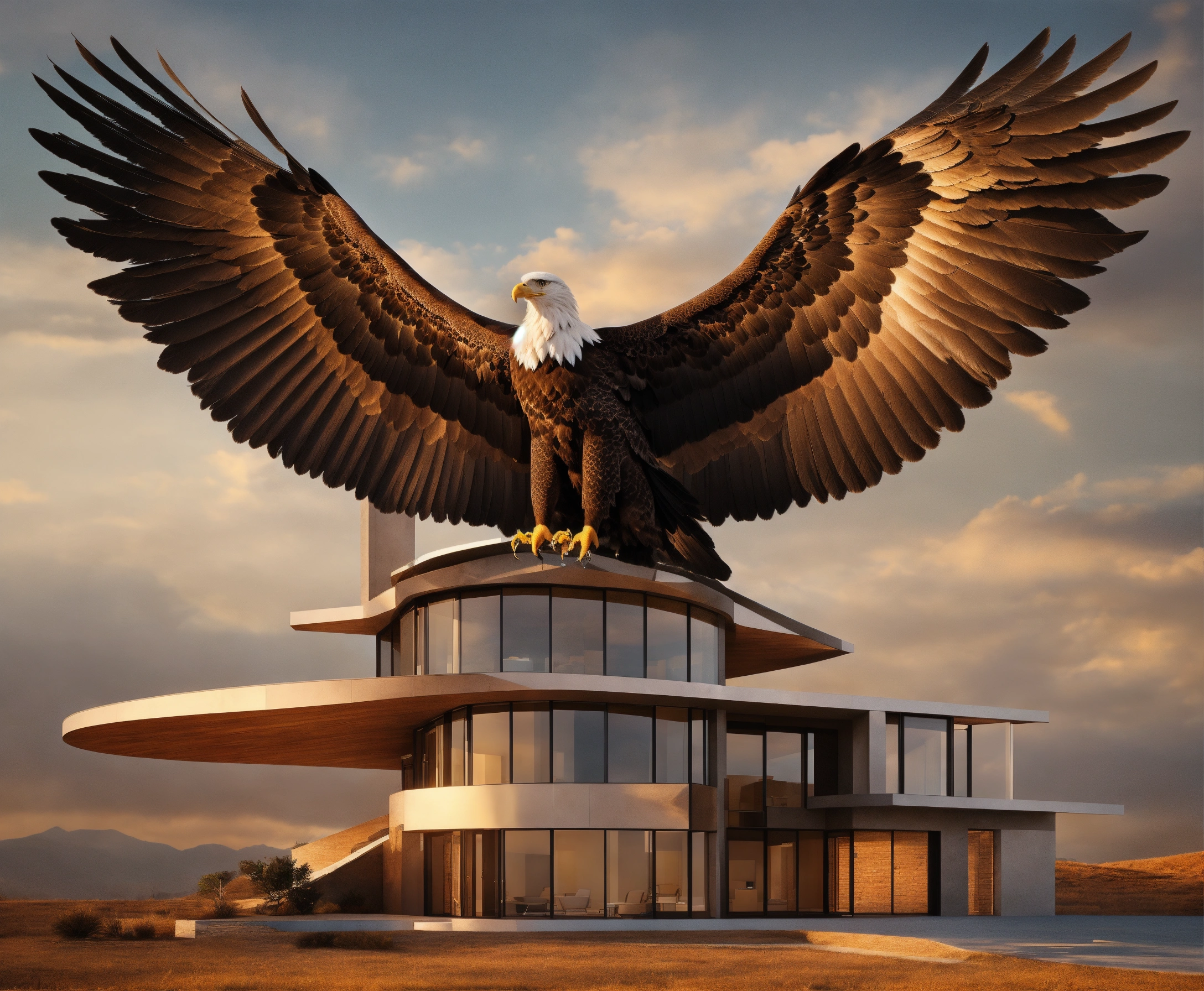 To design a home inspired by an eagle, you can incorporate architectural and design elements that resemble the bird's characteristics. here are some ideas to achieve this 1. **building shape** design the shape of the house to resemble the spread wings of an eagle. you could opt for an angular, streamlined design to mimic the look of wings in flight.