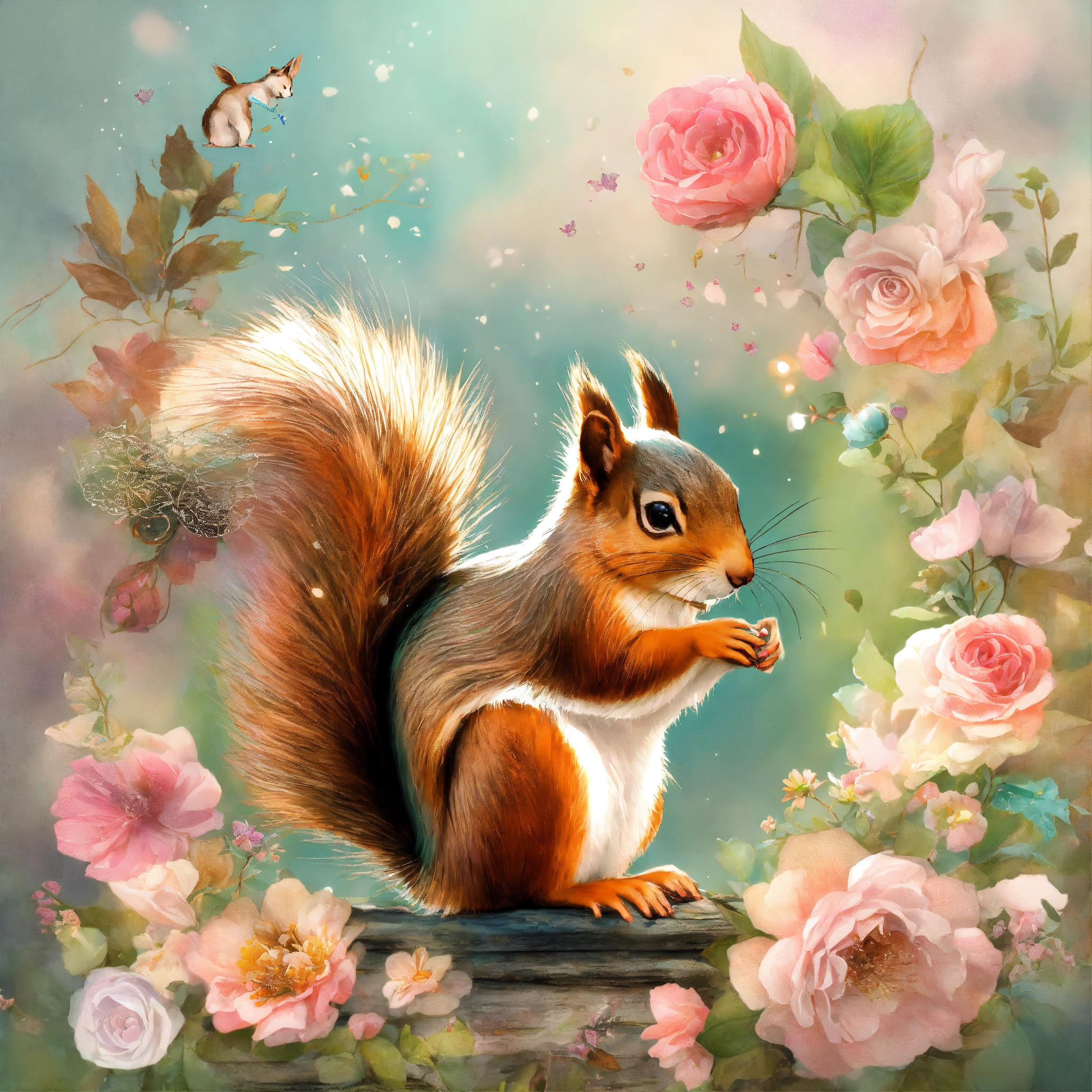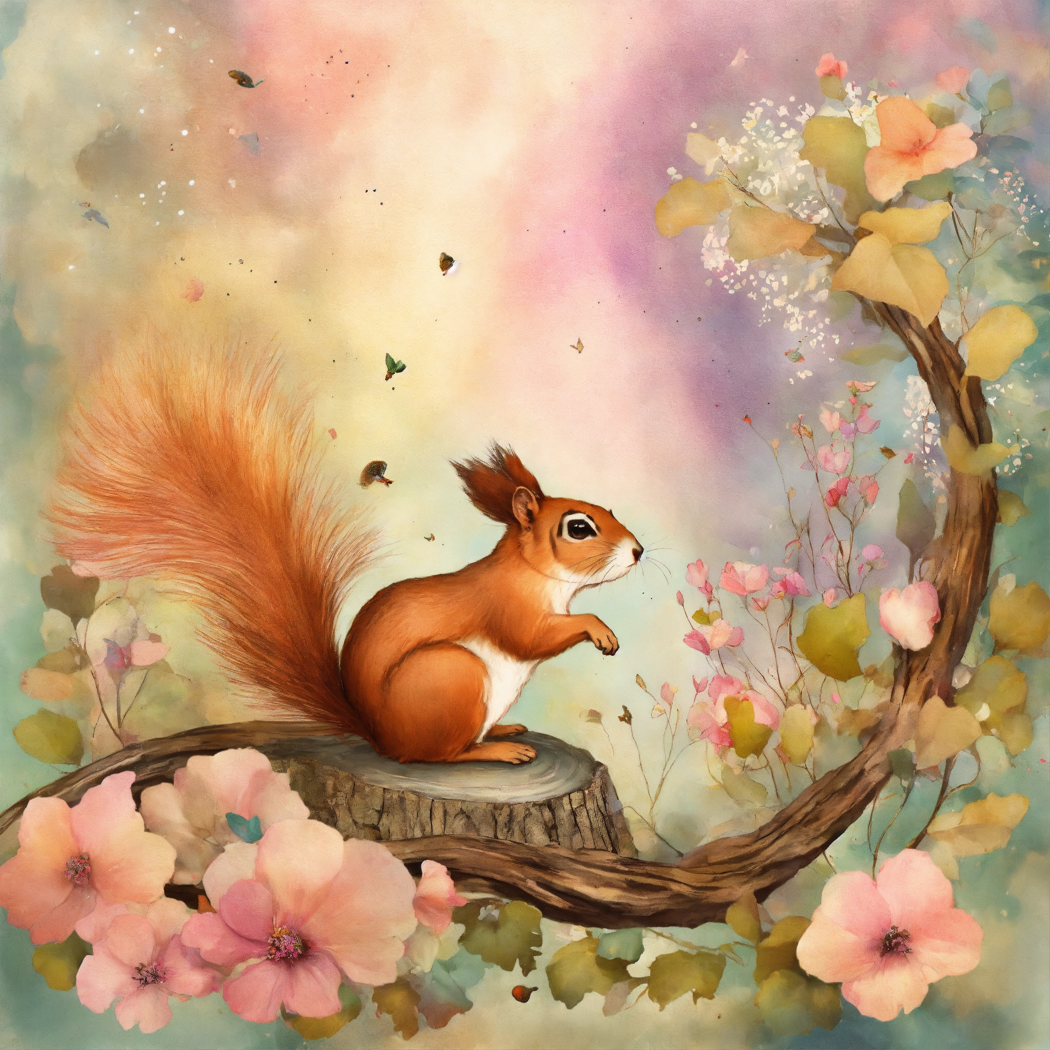 Shabby chic dreamy mist pastel junk journals squirrel swirling magical fairytale abstract art style