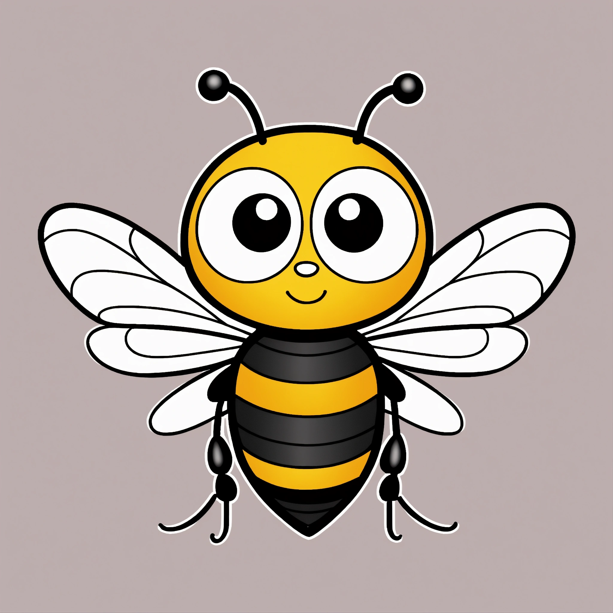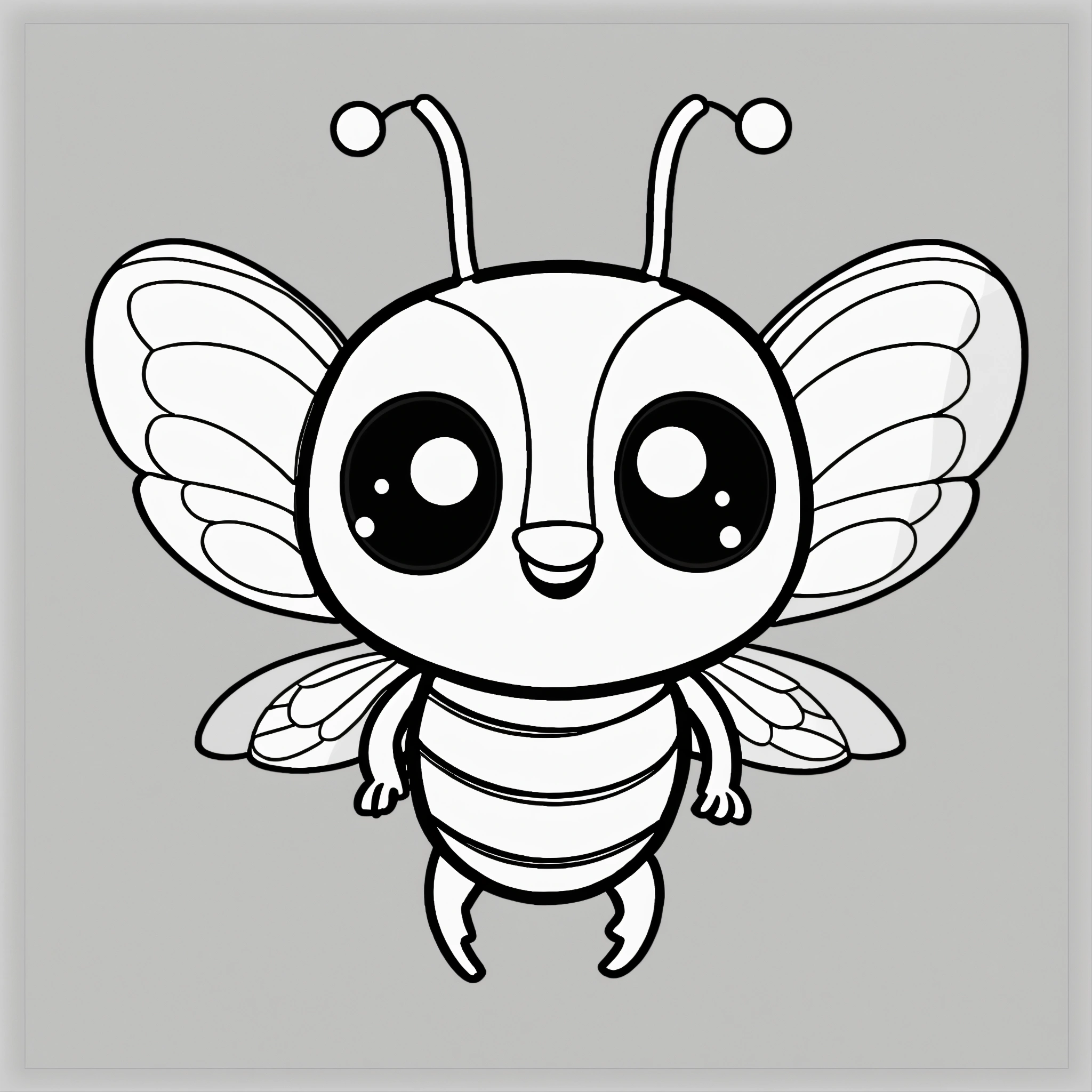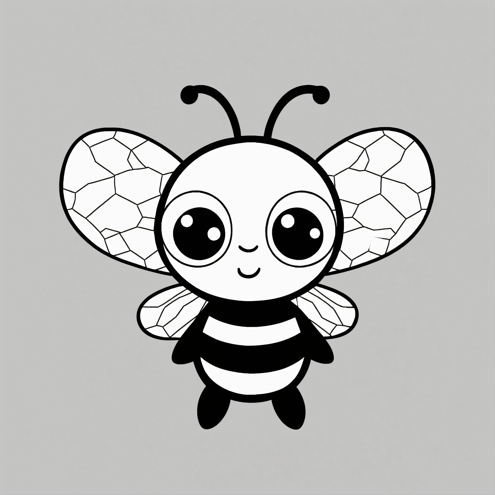Cute bee for a toddler’s, big cute eyes, pixar style, simple outline and shapes, coloring page black and white, white background, flat vector, white background, clean line art, simple, only lines
