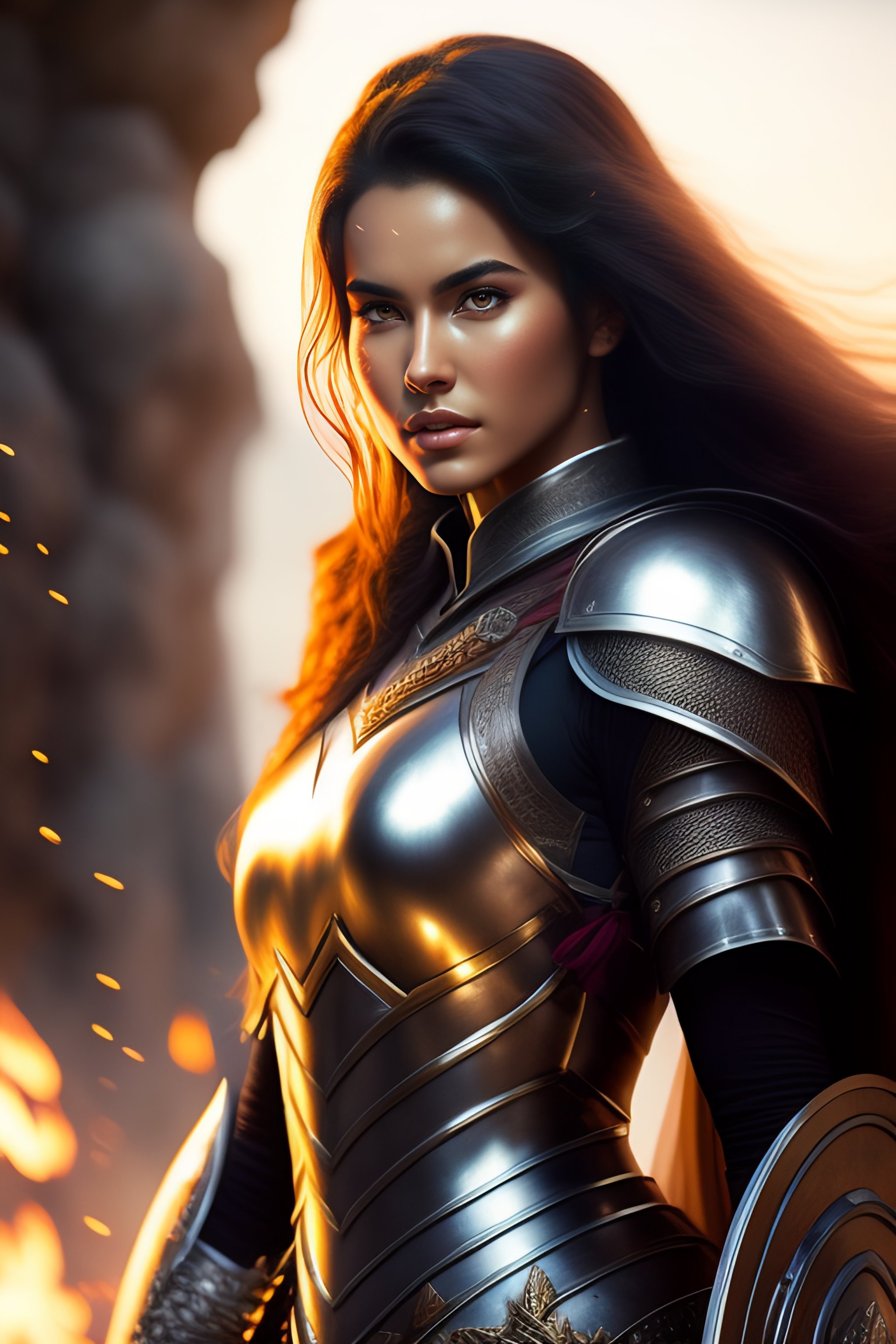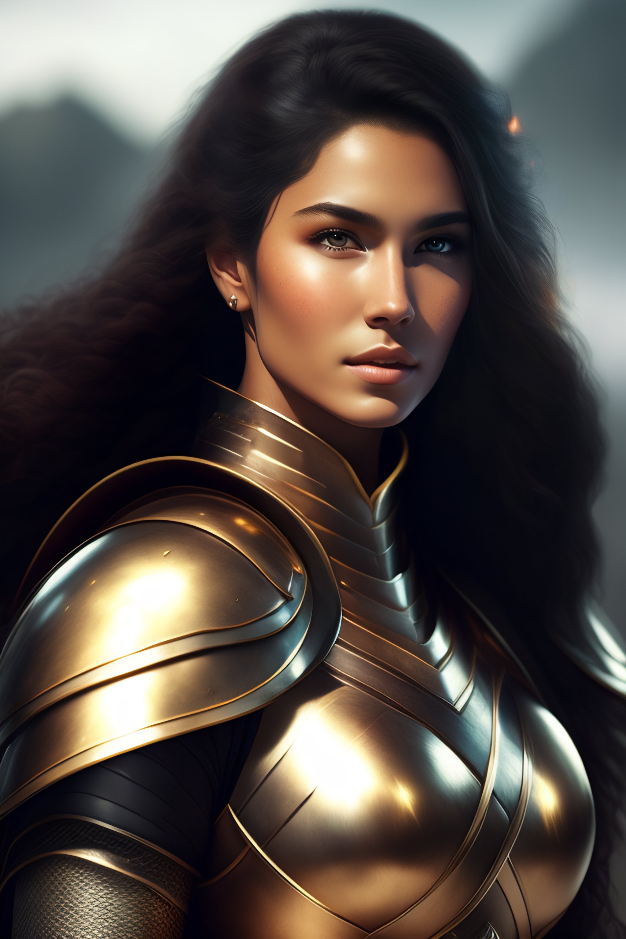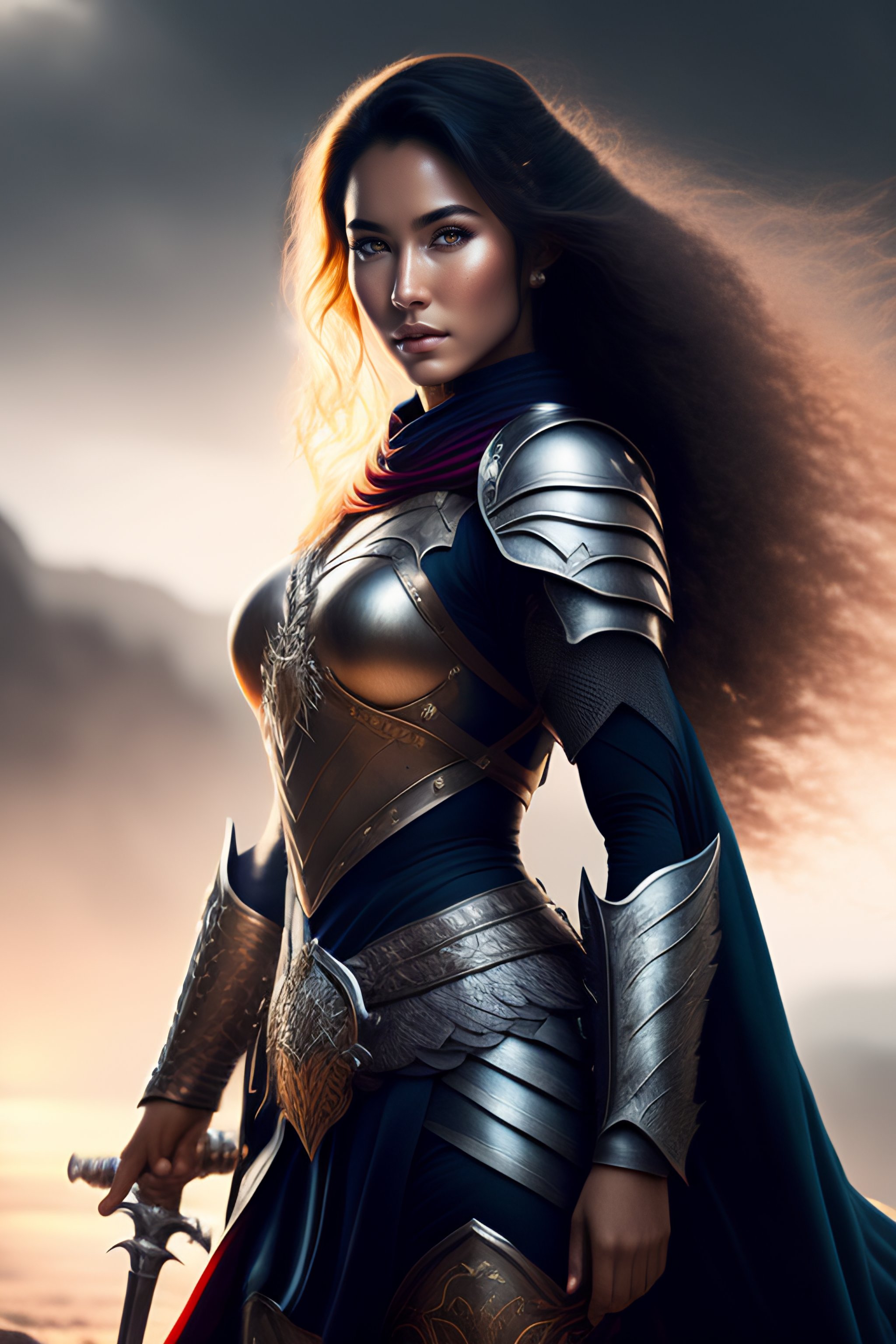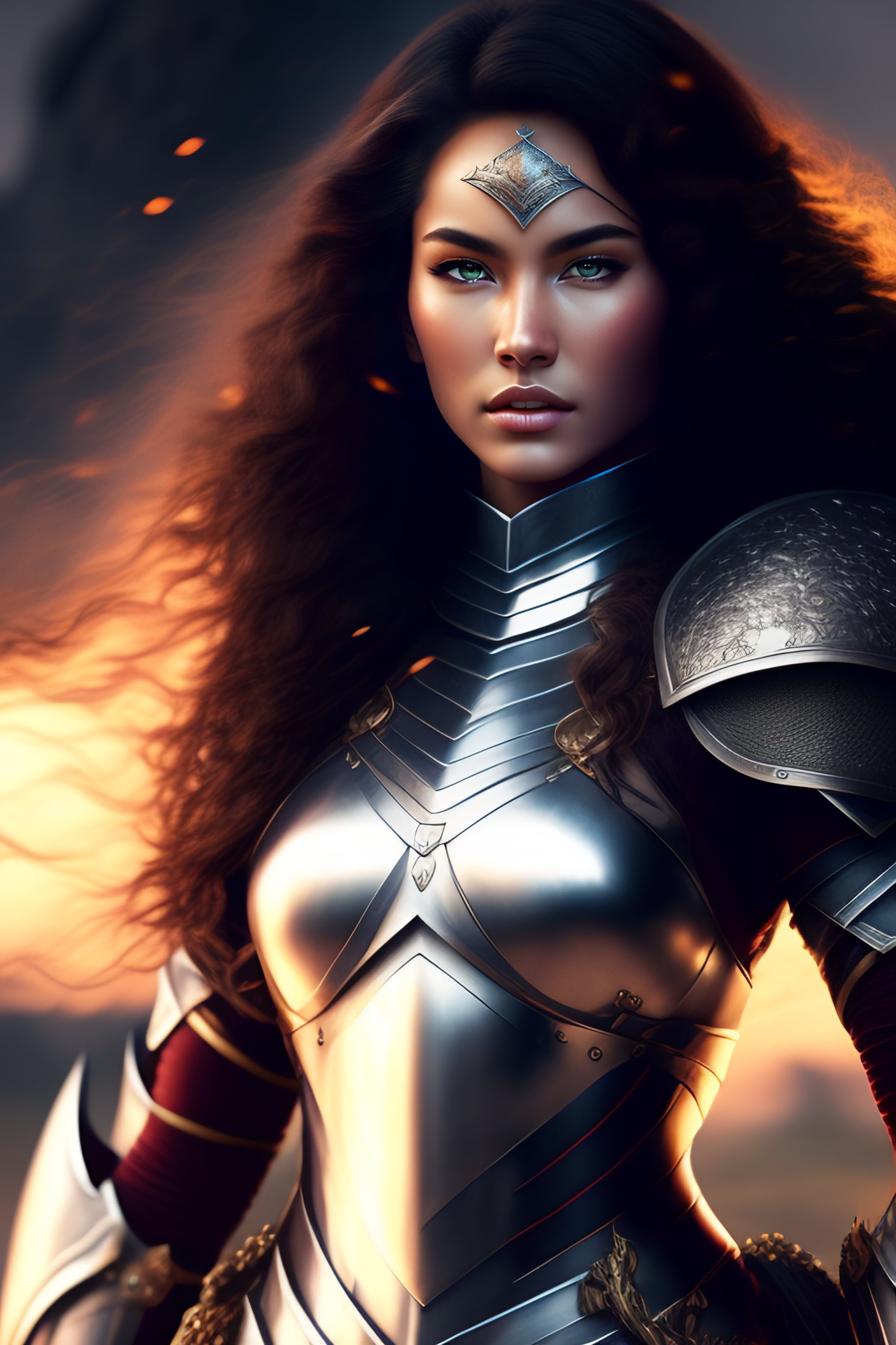 Beautiful yung women, curl hair, white skin, full body armor, armor, epic fantasy, dramatic, cinematic lighting, battlefield, sword in hand