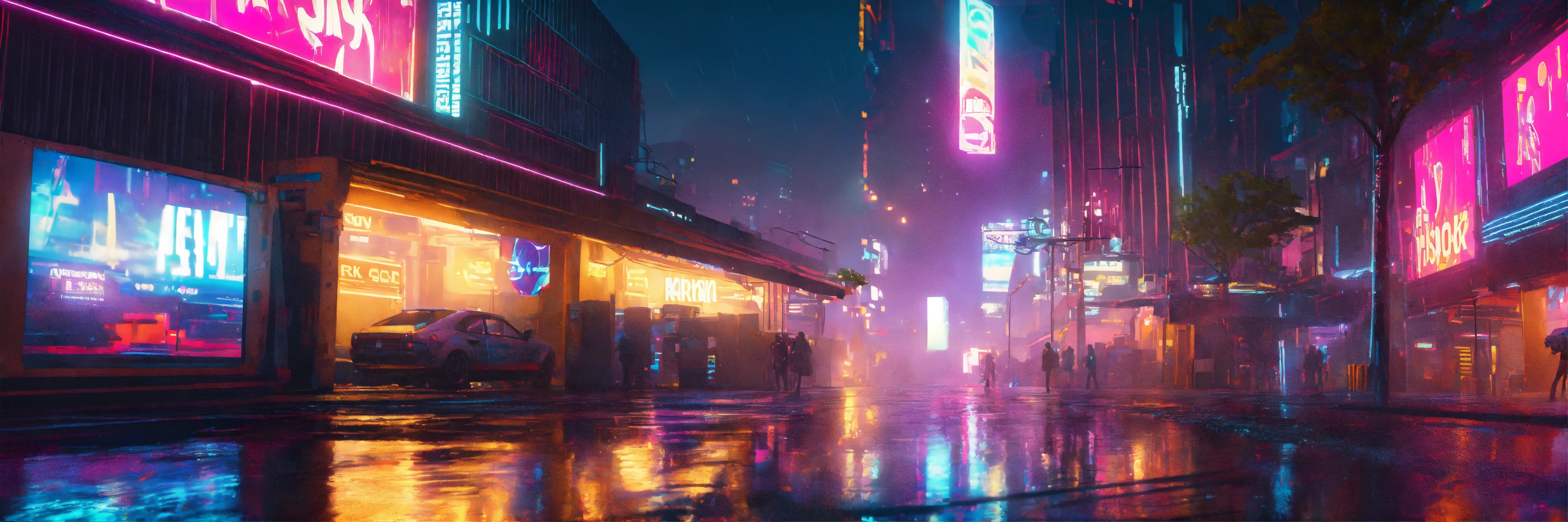 8k hdr cyberpunk style, highly detailed, vibrant, production cinematic render, reflections on wet street, 8k render, ultra detailed enviroment