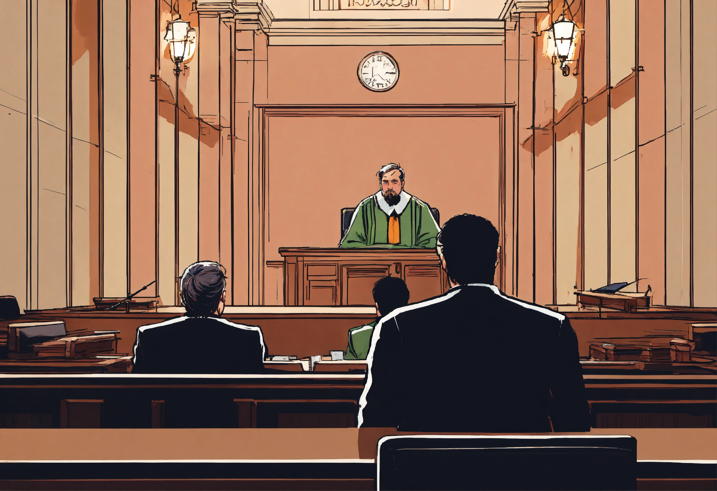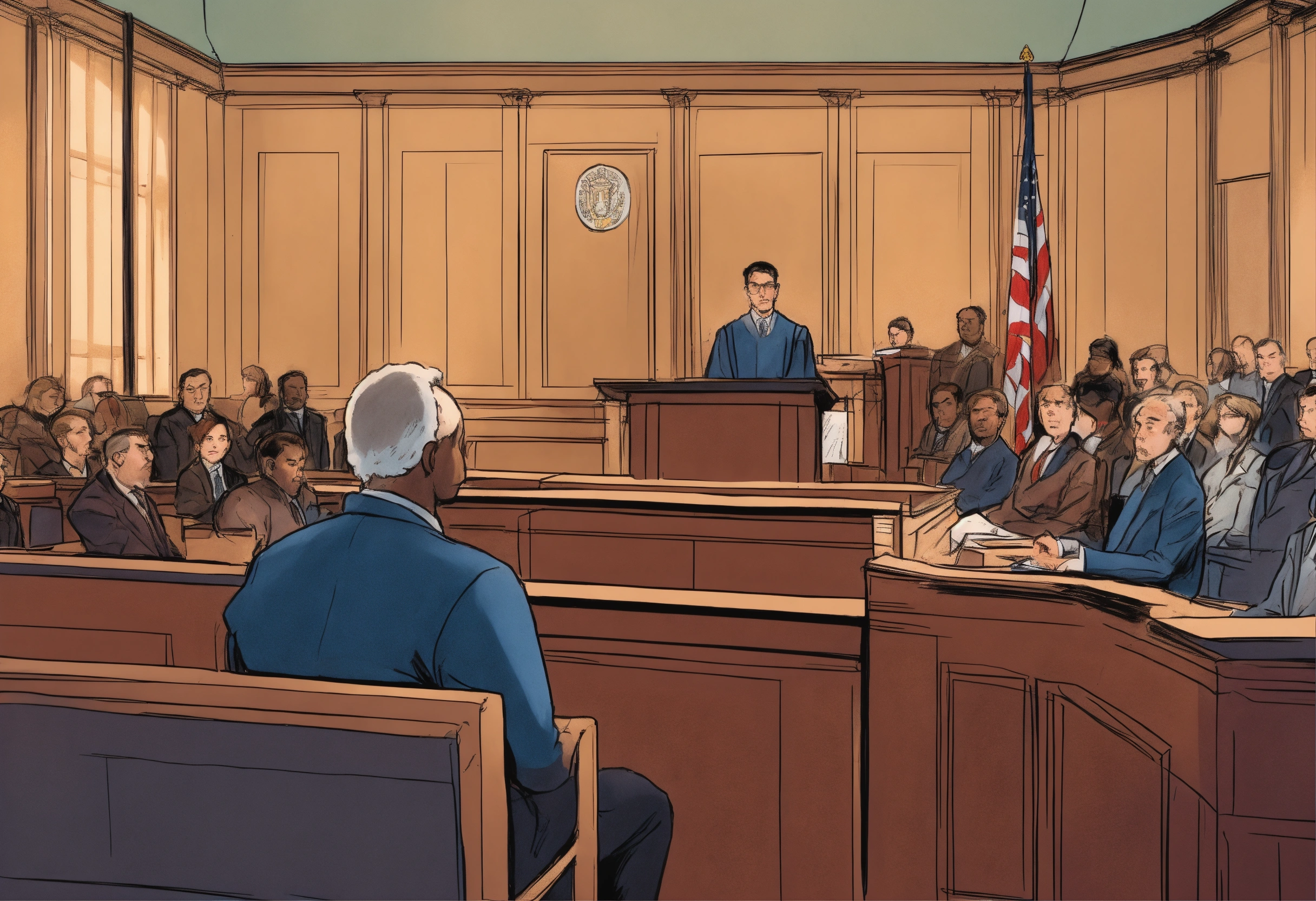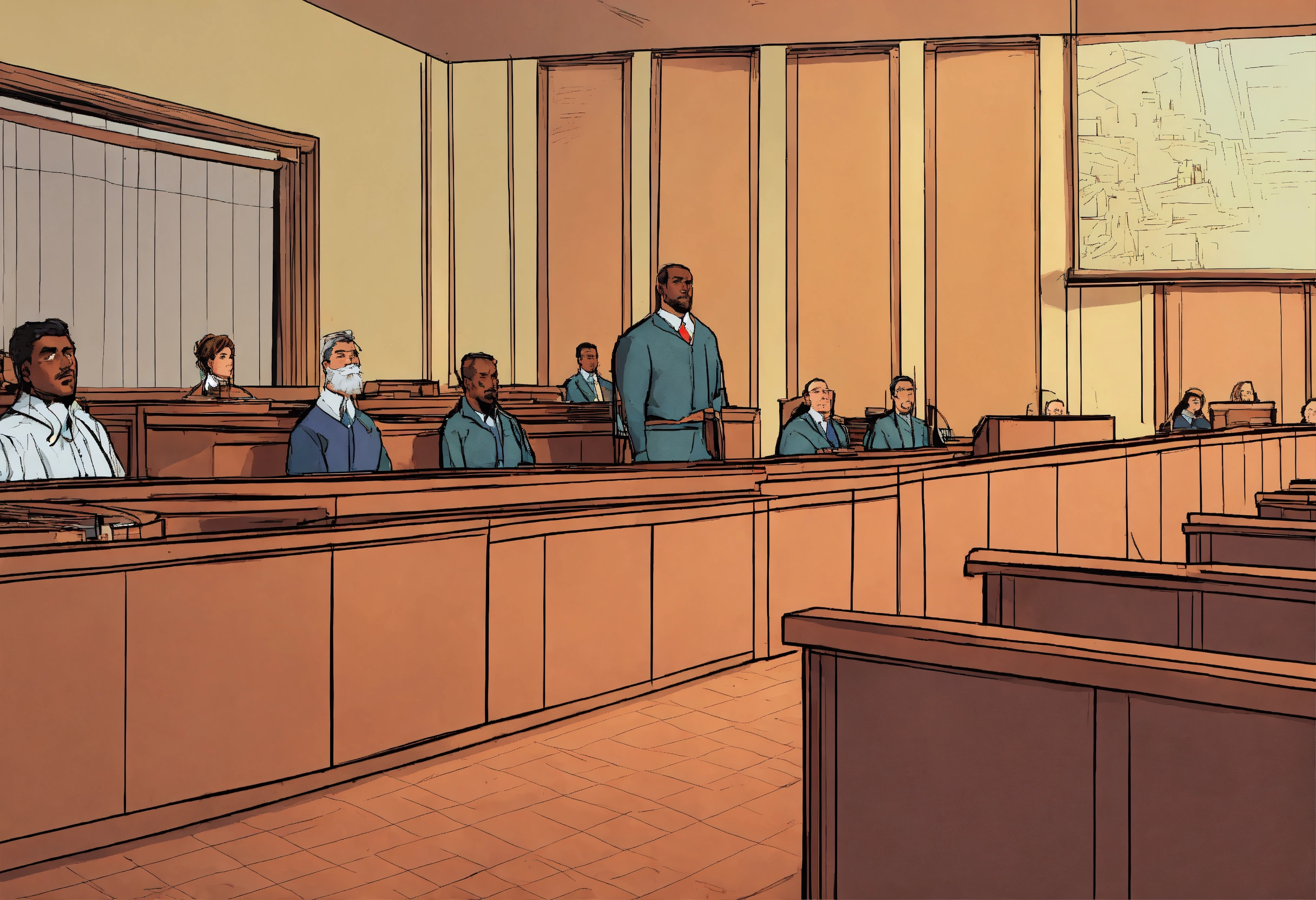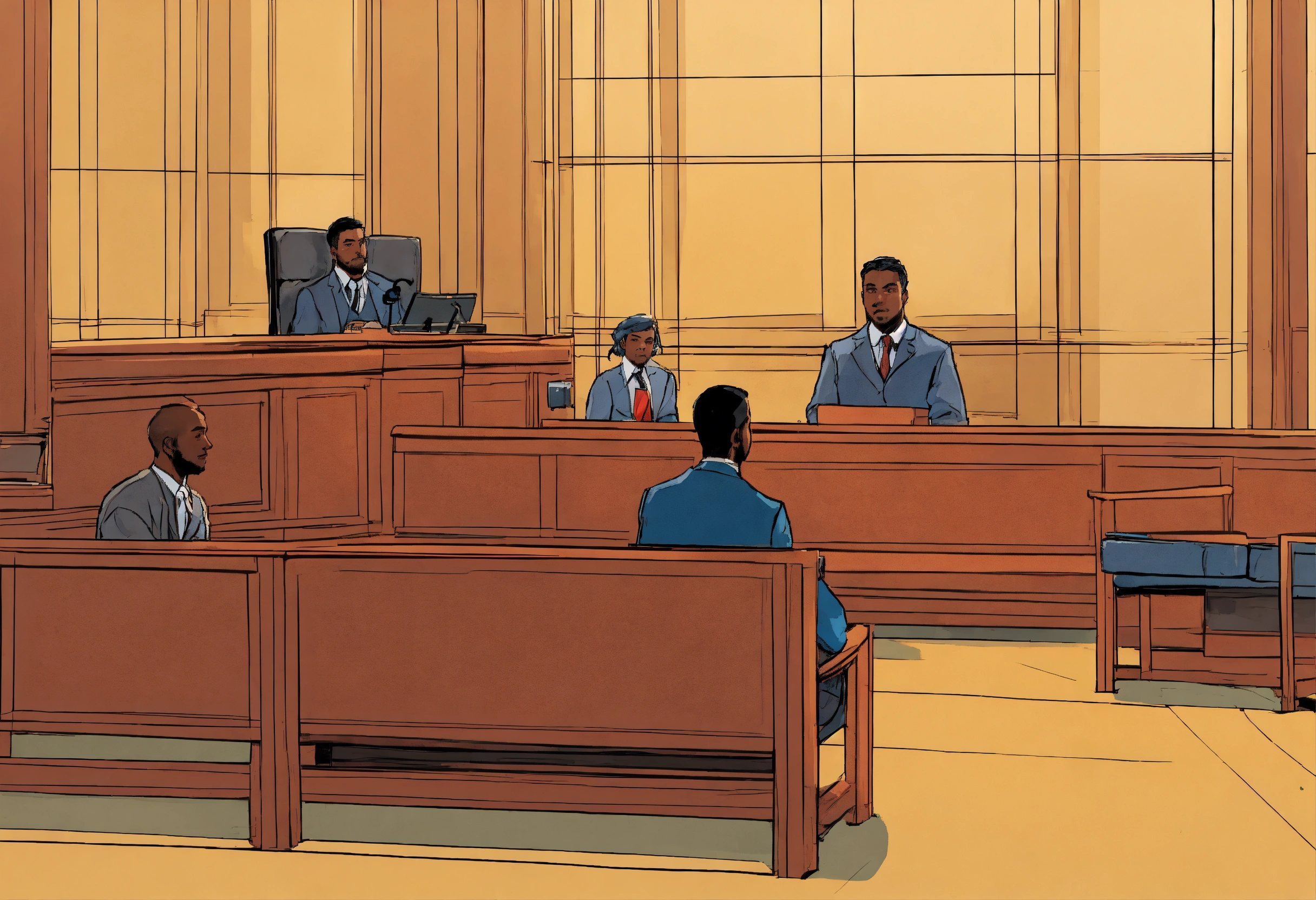 Comic drawing of a person in court on trial