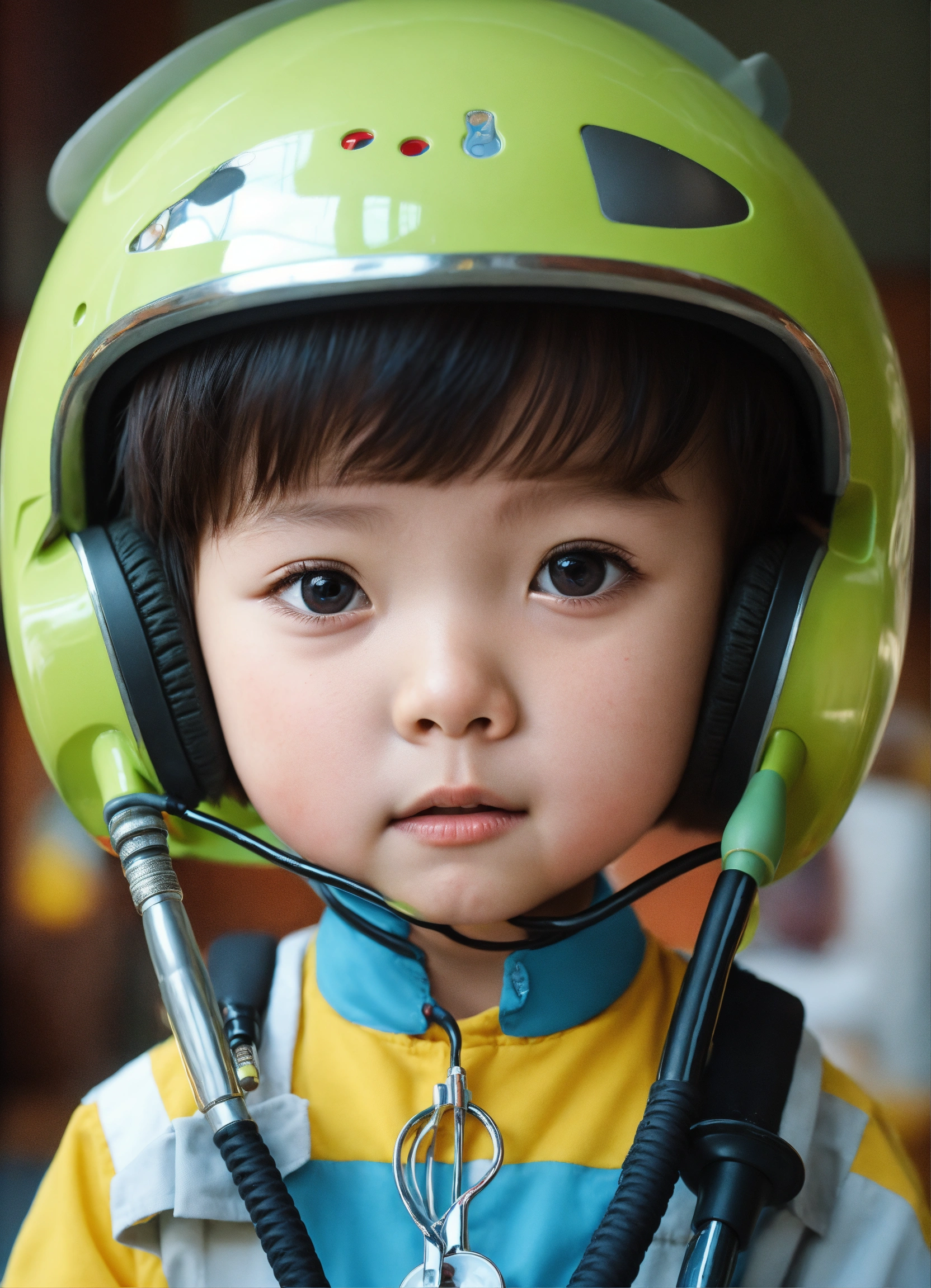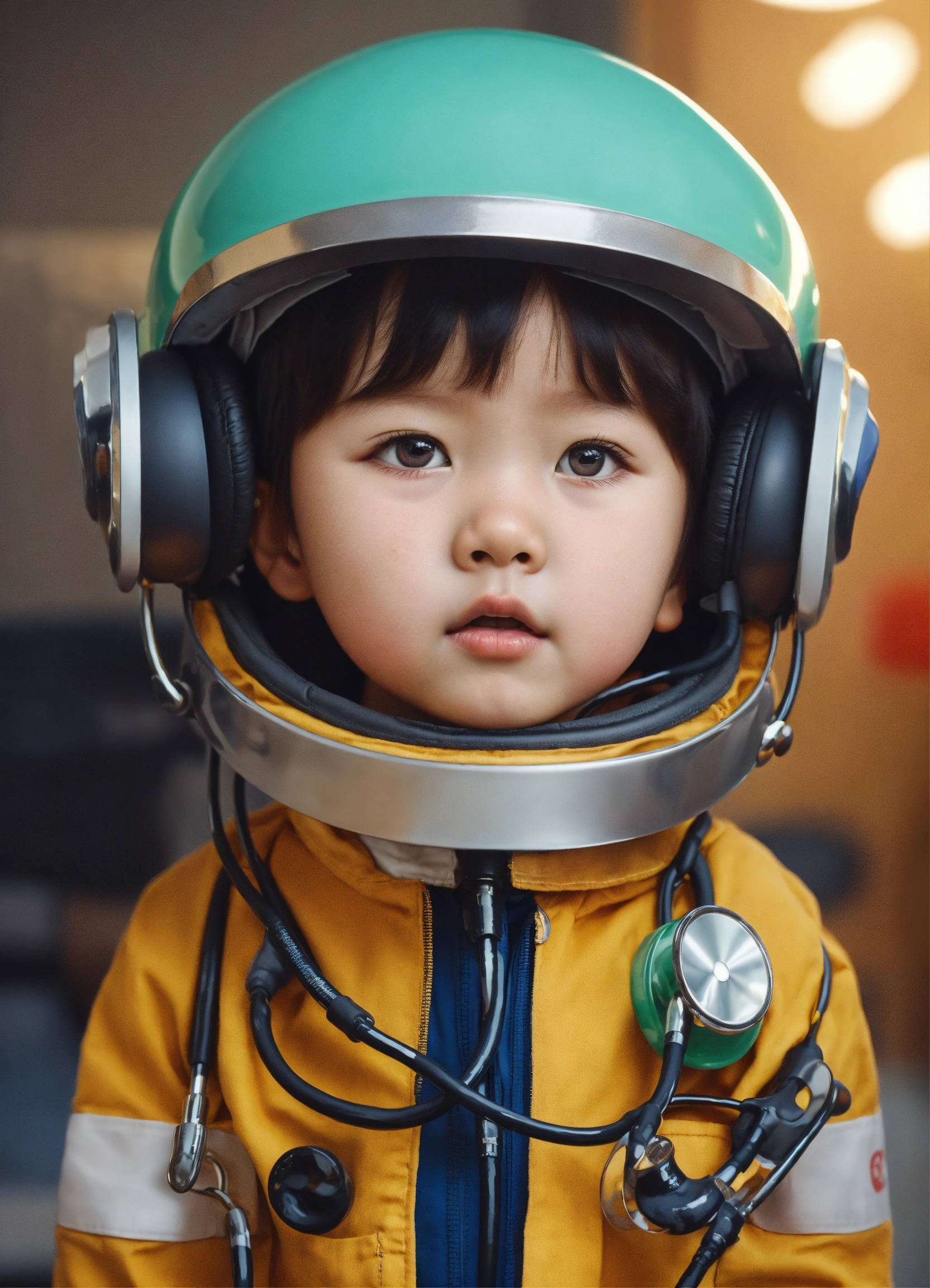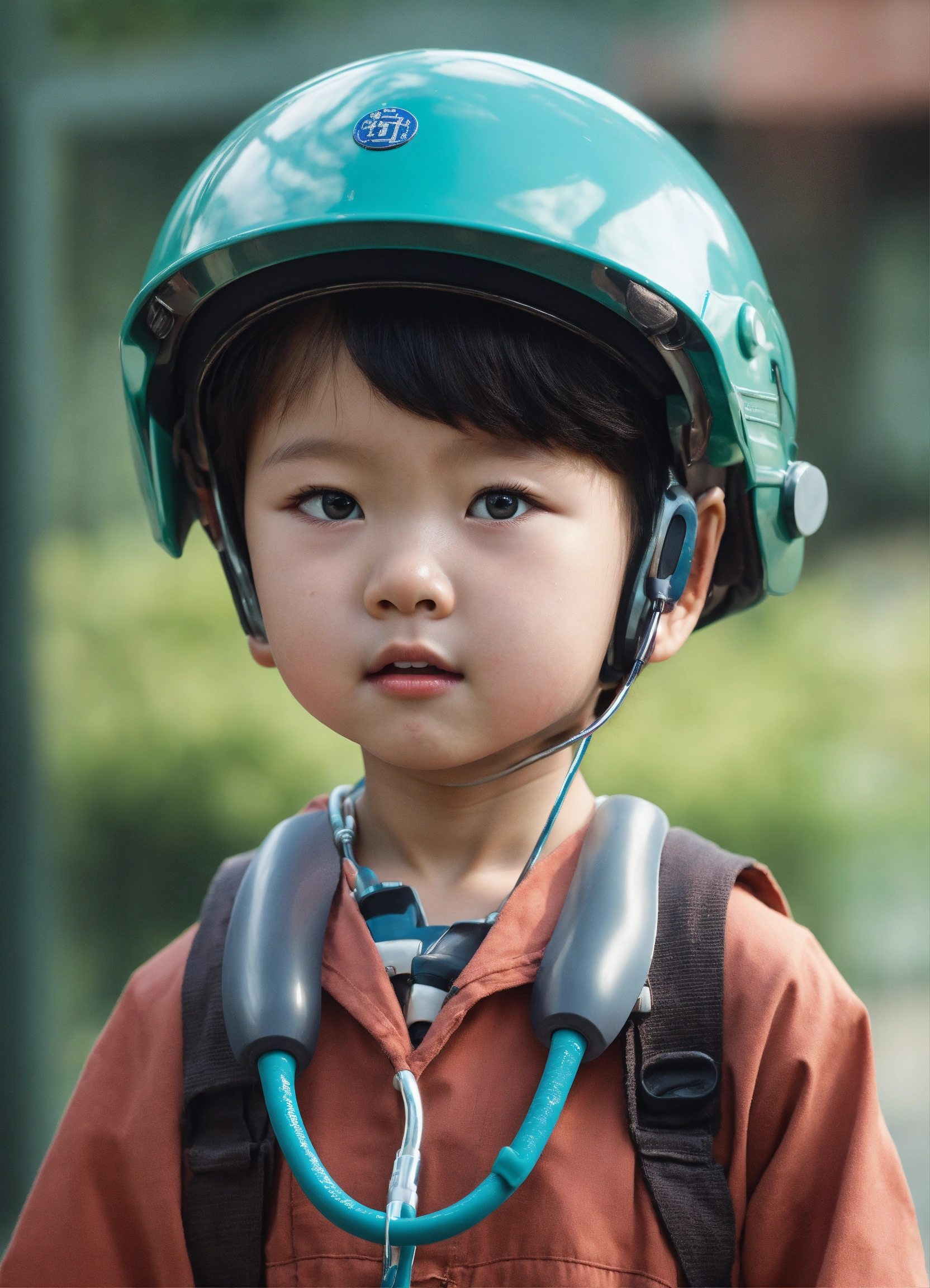A close up of a child with a stethoscope, naver fanpop, inspired by dong qichang, professional advertisement, smooth oval head, movie screencap, adorably cute, headroom, head and upper body in frame, had, helmet removed, only the head, boy hair, aliased, see