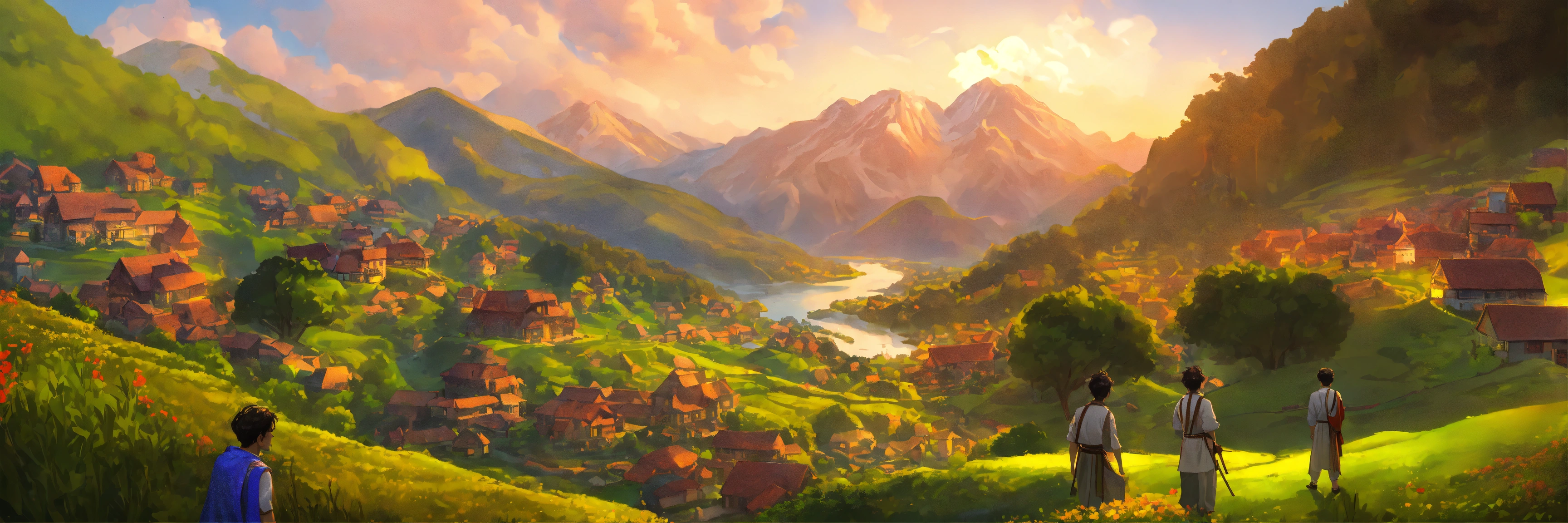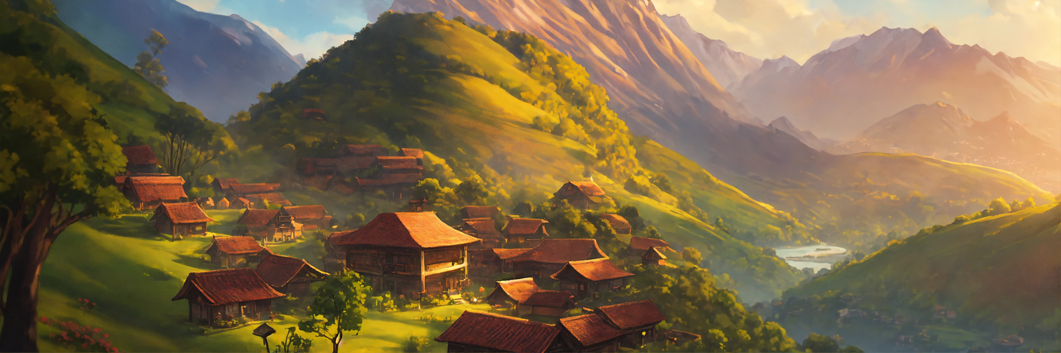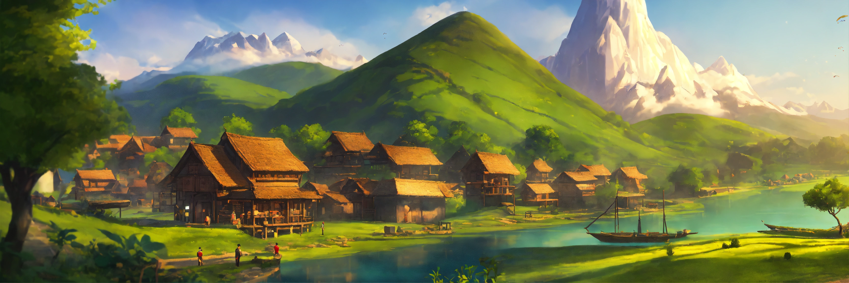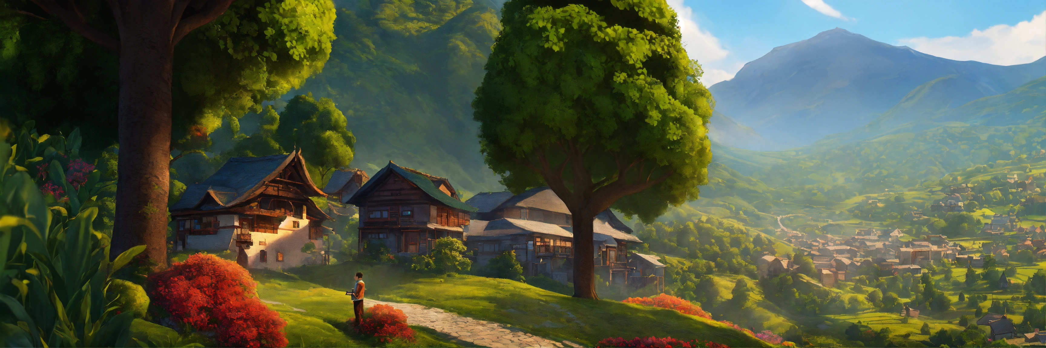 Step into the storybook world of a peaceful village nestled amidst towering mountains. here, meet a young man named ramu, celebrated for his intelligence, kindness, and unwavering work ethic. envision the picturesque surroundings and the character of ramu., detailed, 16k, focused, extreme details, super resolution, cinematic, masterpiece