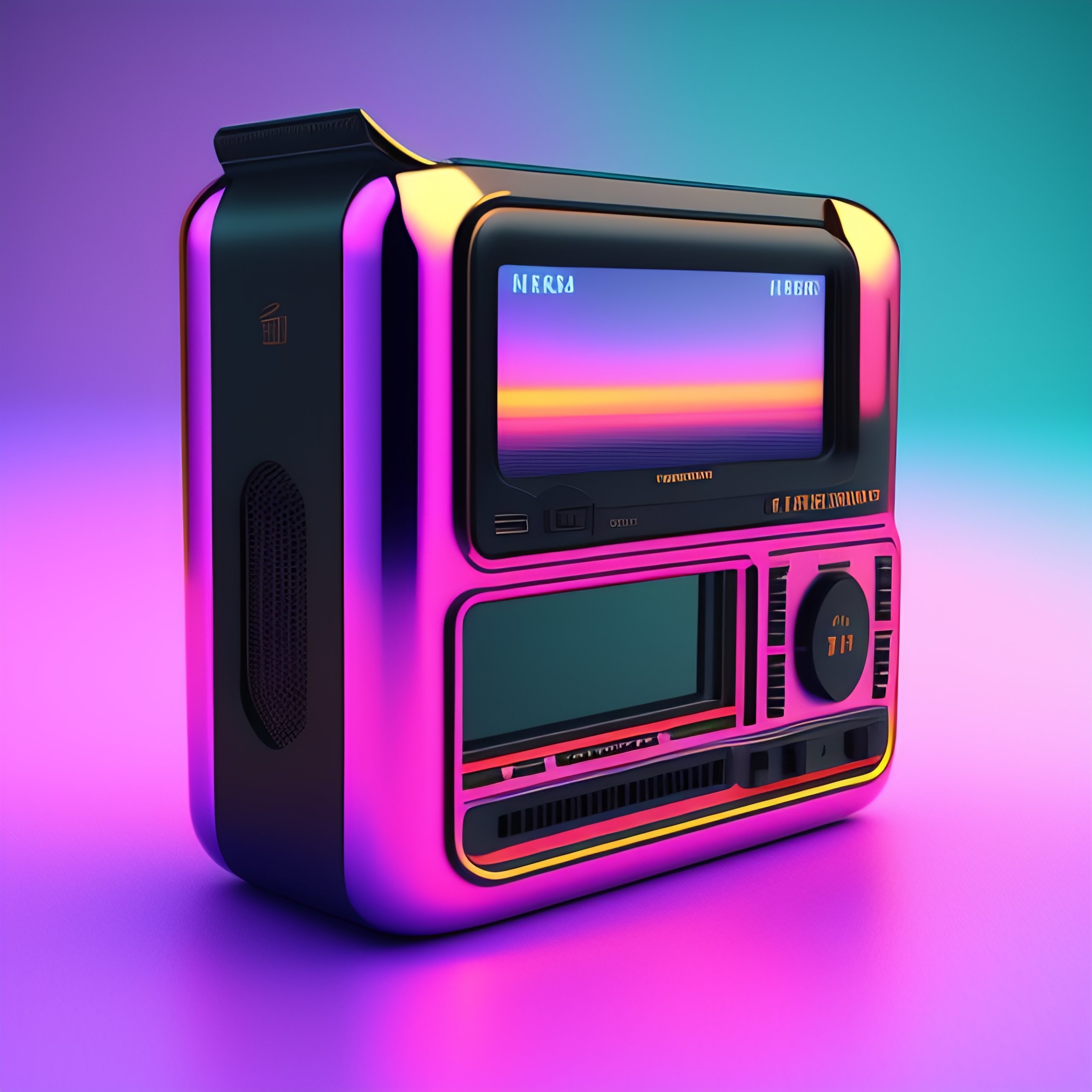 Vintage personal handheld computer device, 1990s, c4d render, vaporwave aesthetic, product photography