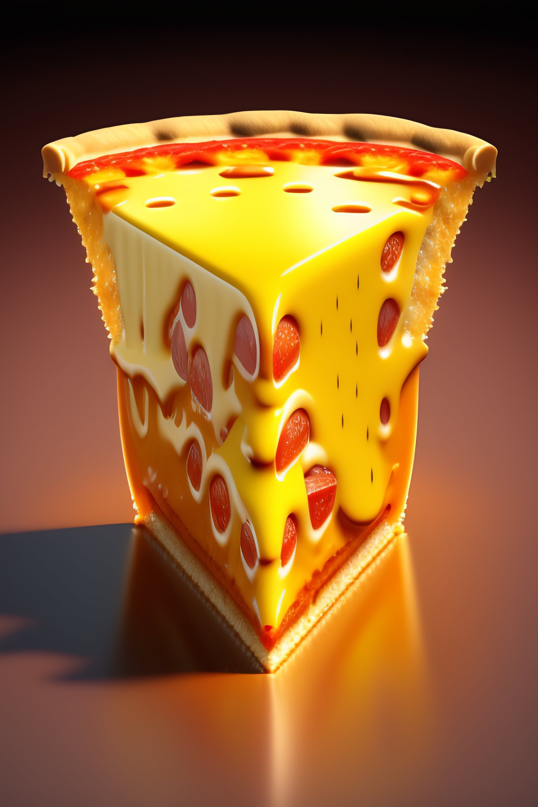 3d cartoon floating slice of pizza with dripping cheese and all meat toppings