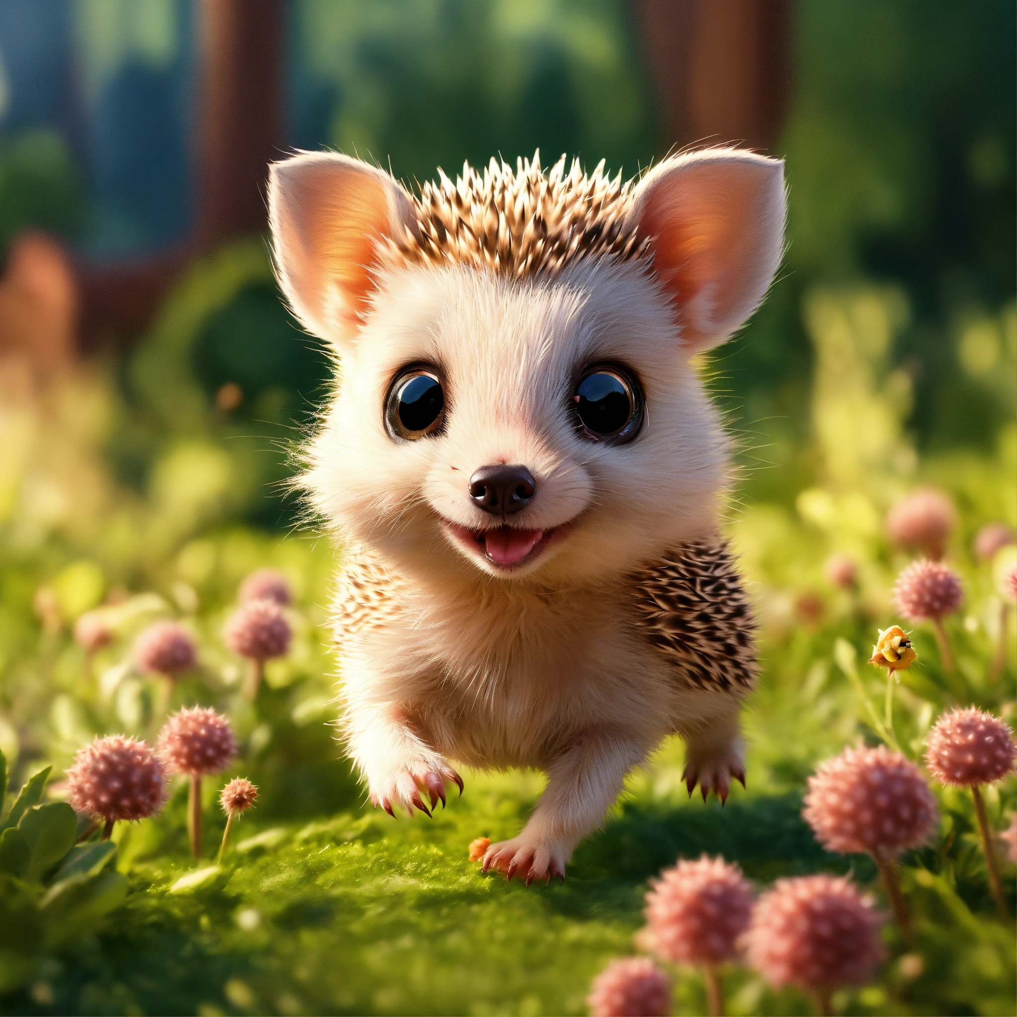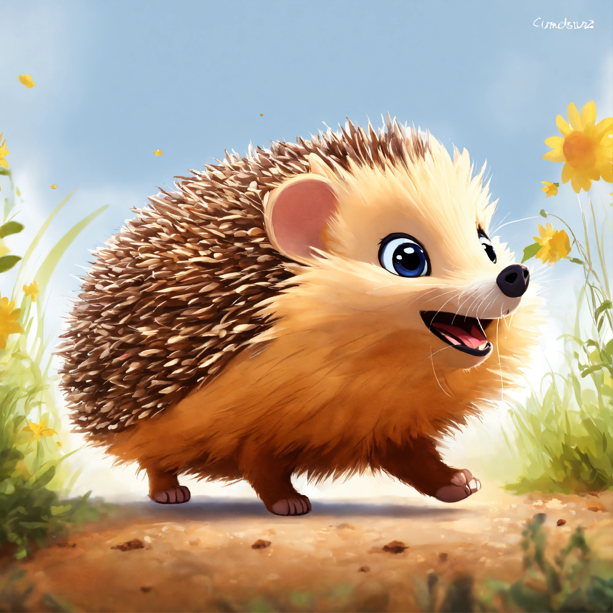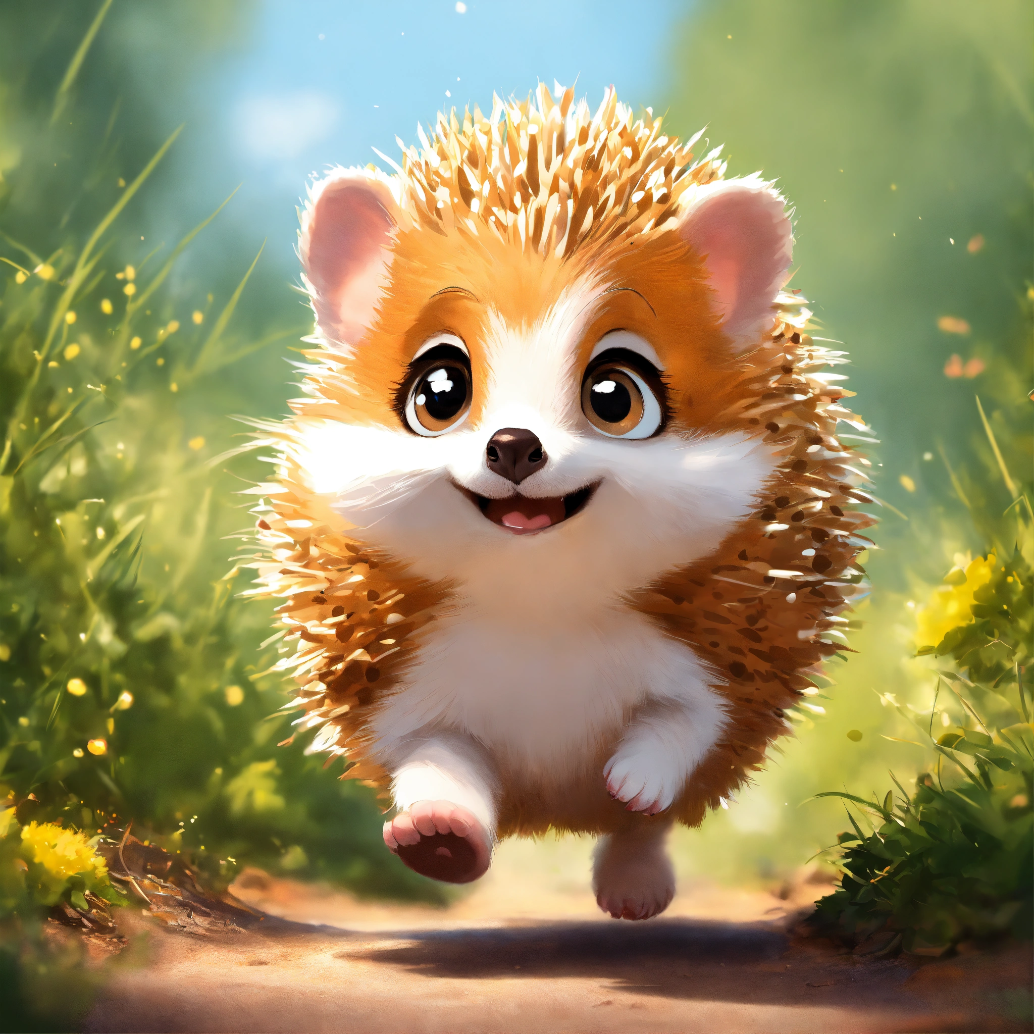 A puppies, 2d, running baby hedgehogs, so cute, big eyes, nice, holiday, cute, cartoon pixar style, digital art, digital painting, white background