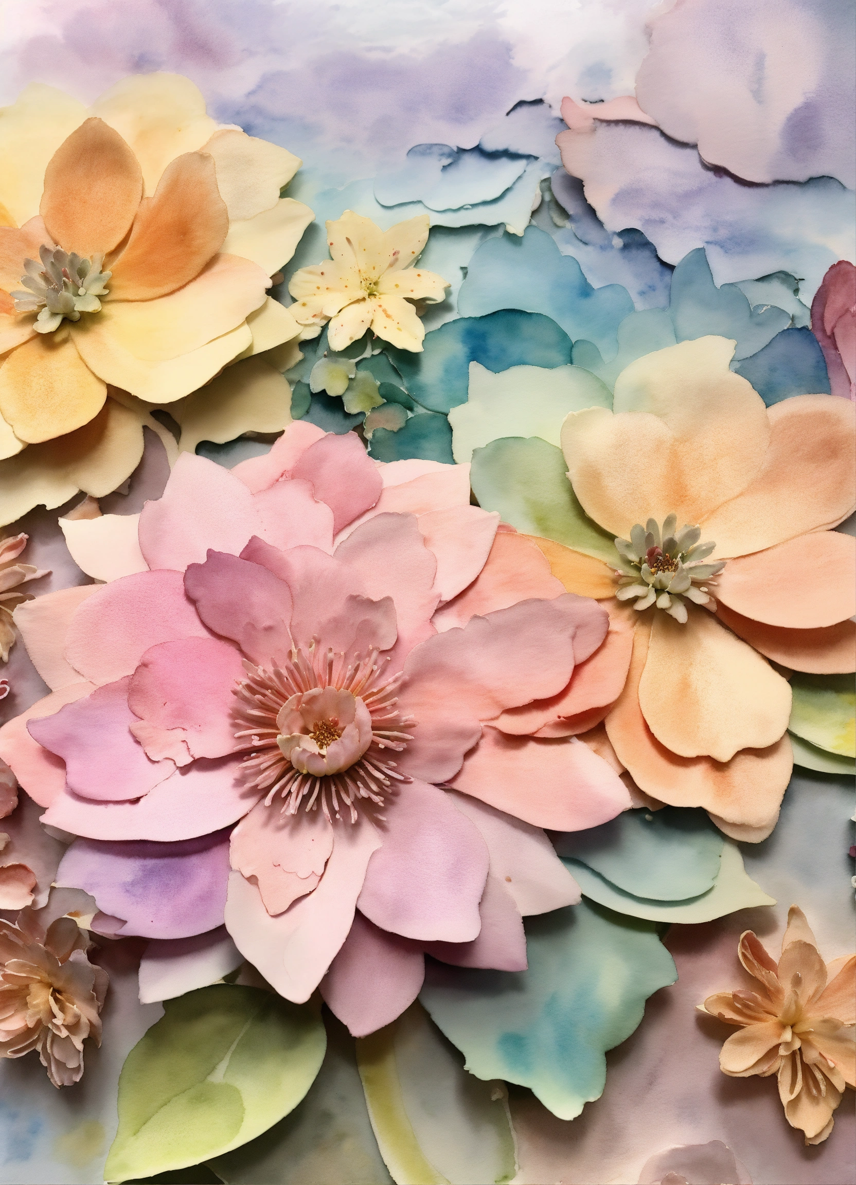 Shabby chic dreamy mist pastel junk journals create a beautiful flower cutout design with delicate white cutting guidelines and soft pastel colors in watercolor style. here's a prompt to get you started watercolor the design use watercolor paints in soft pastel shades to add color to your design. start with the lightest colors first and gradually build up the intensity. allow the paint to dry completely before moving on to the next layer. creating a delicate flower cutout design with soft pastel watercolors is a beautiful and versatile way to add a touch of elegance to your crafts. by following these steps, you can create a stunning design that is both unique and visually appealing. experiment with different flowers and colors to create a design that reflects your personal style. swirling magical fairytale abstract art style