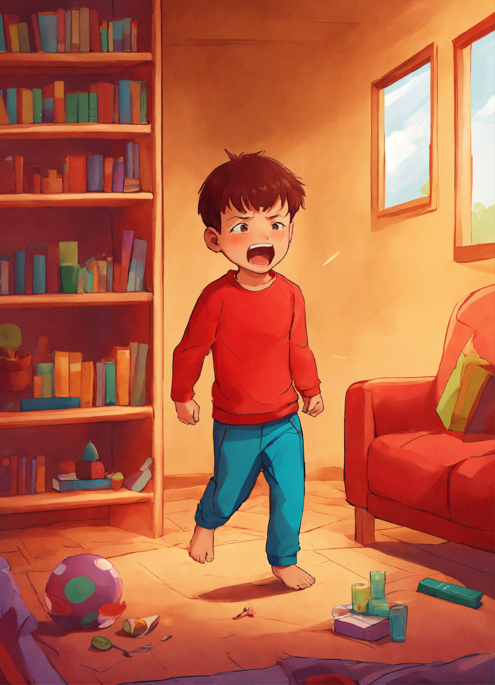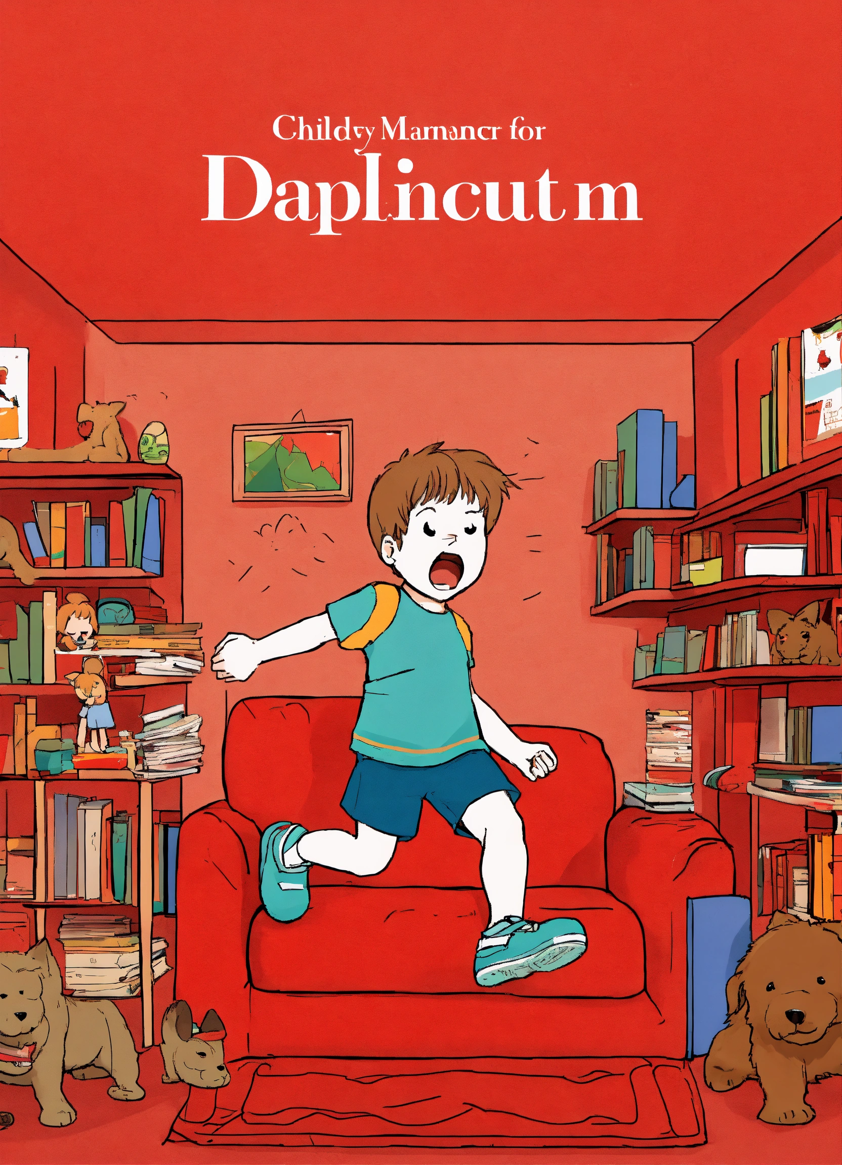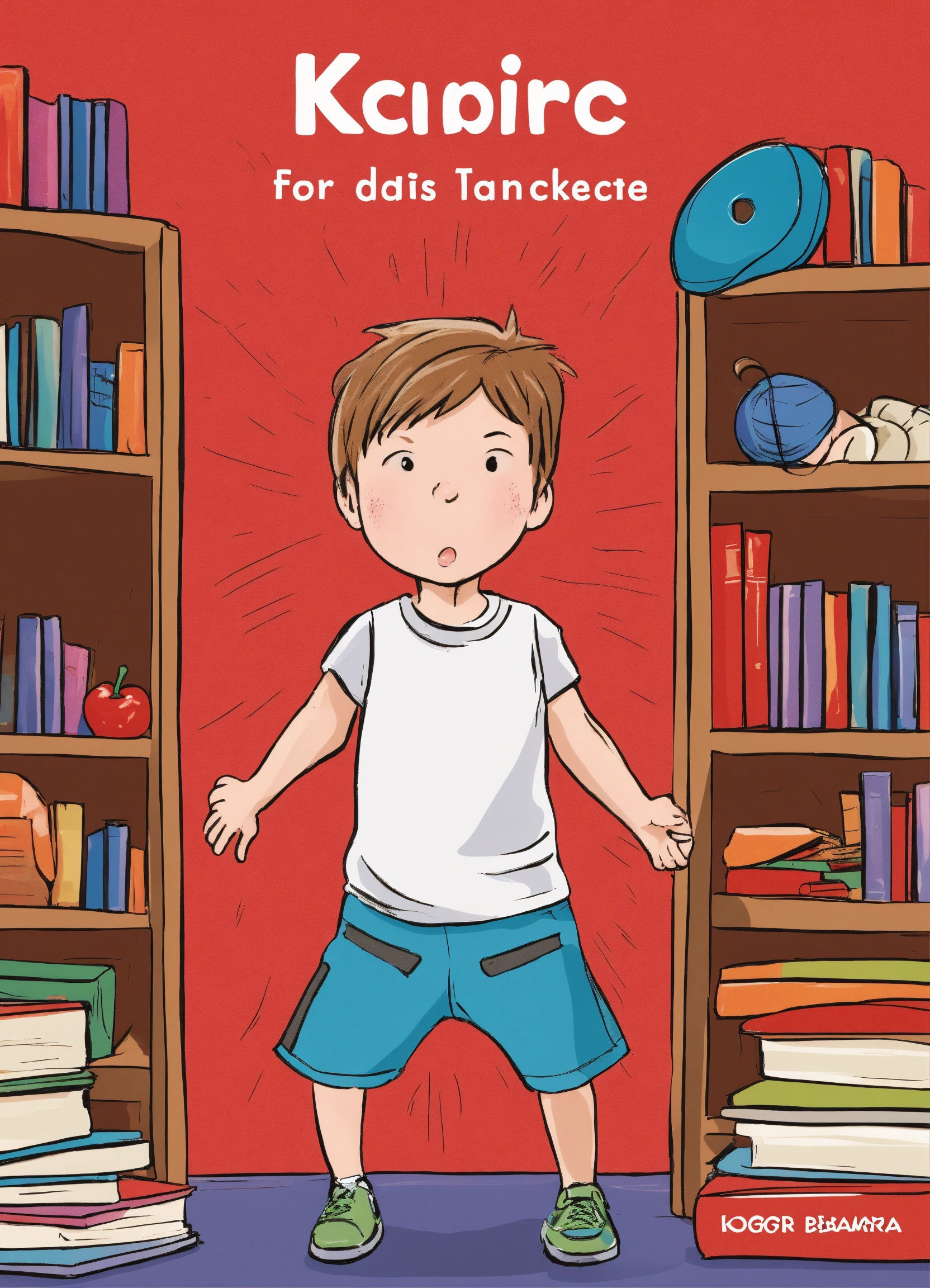 I need a cover for an e-book, the title of the book is diet and exercise for anger management for 8-10 year olds, the background of the cover should be red to stand out on a bookshelf, the design should be subtly sophisticated, the title should be big and bold, show an image of a small child throwing a tantrum by stomping his feet, the child image should not take up the entire cover