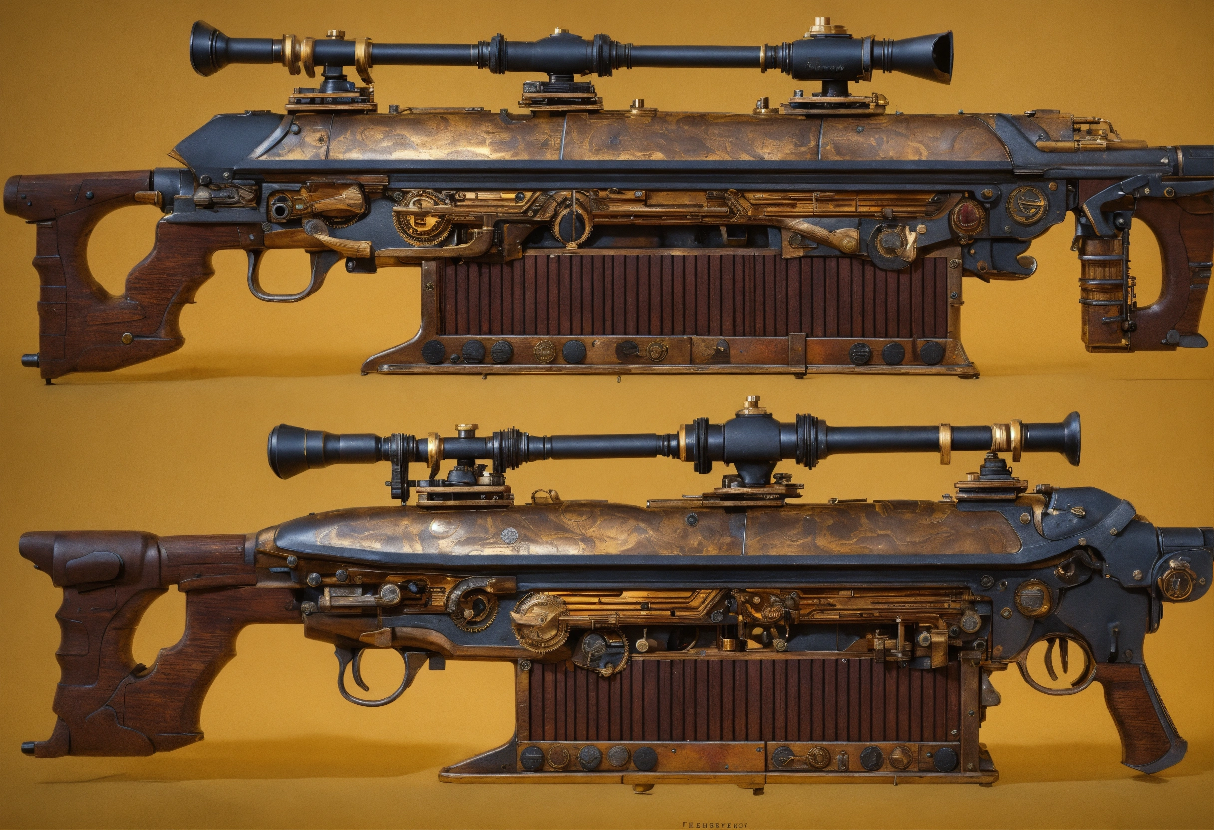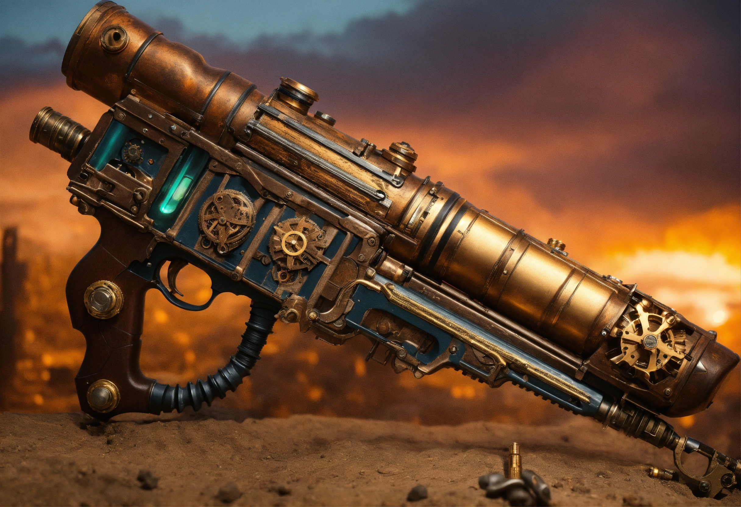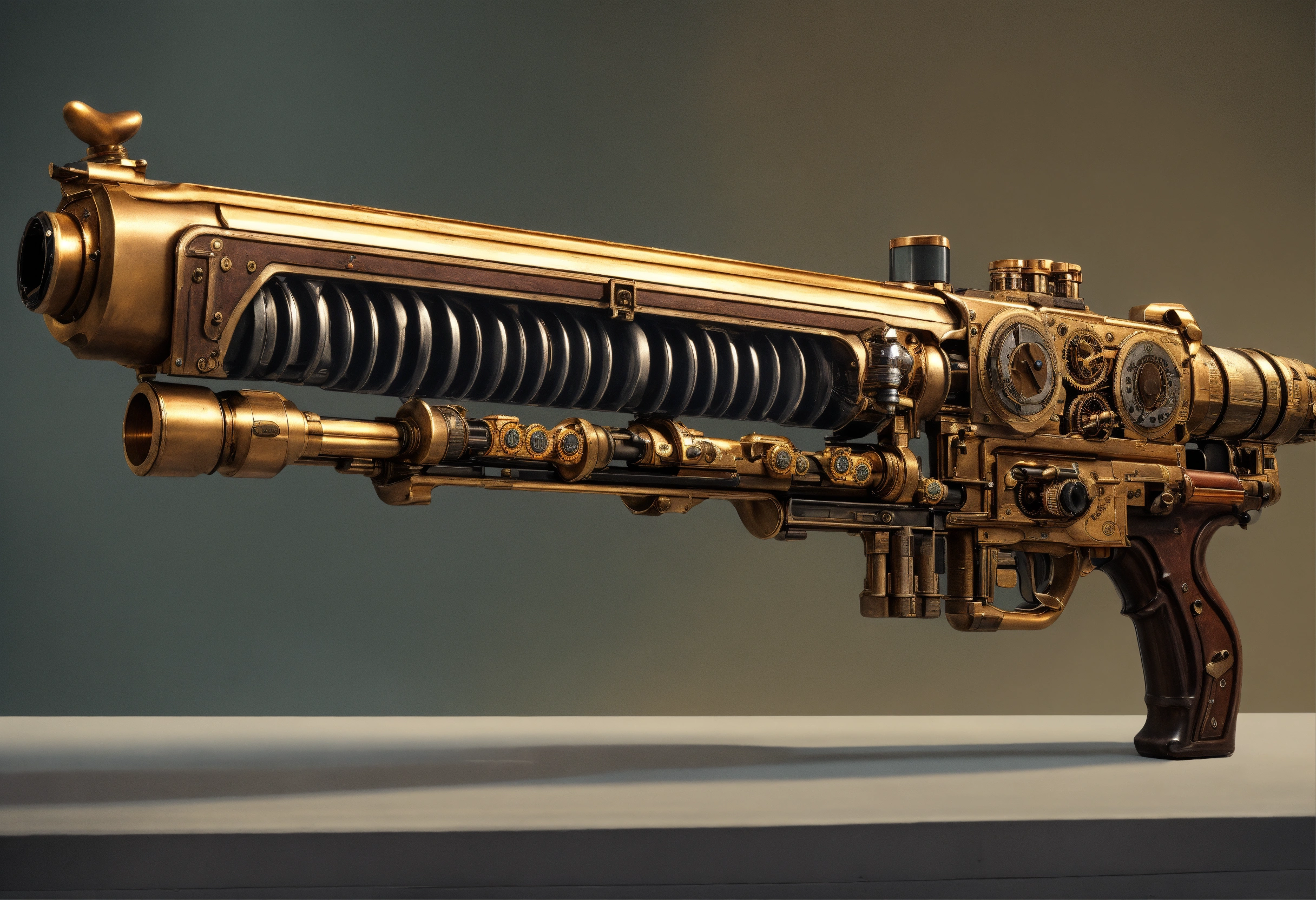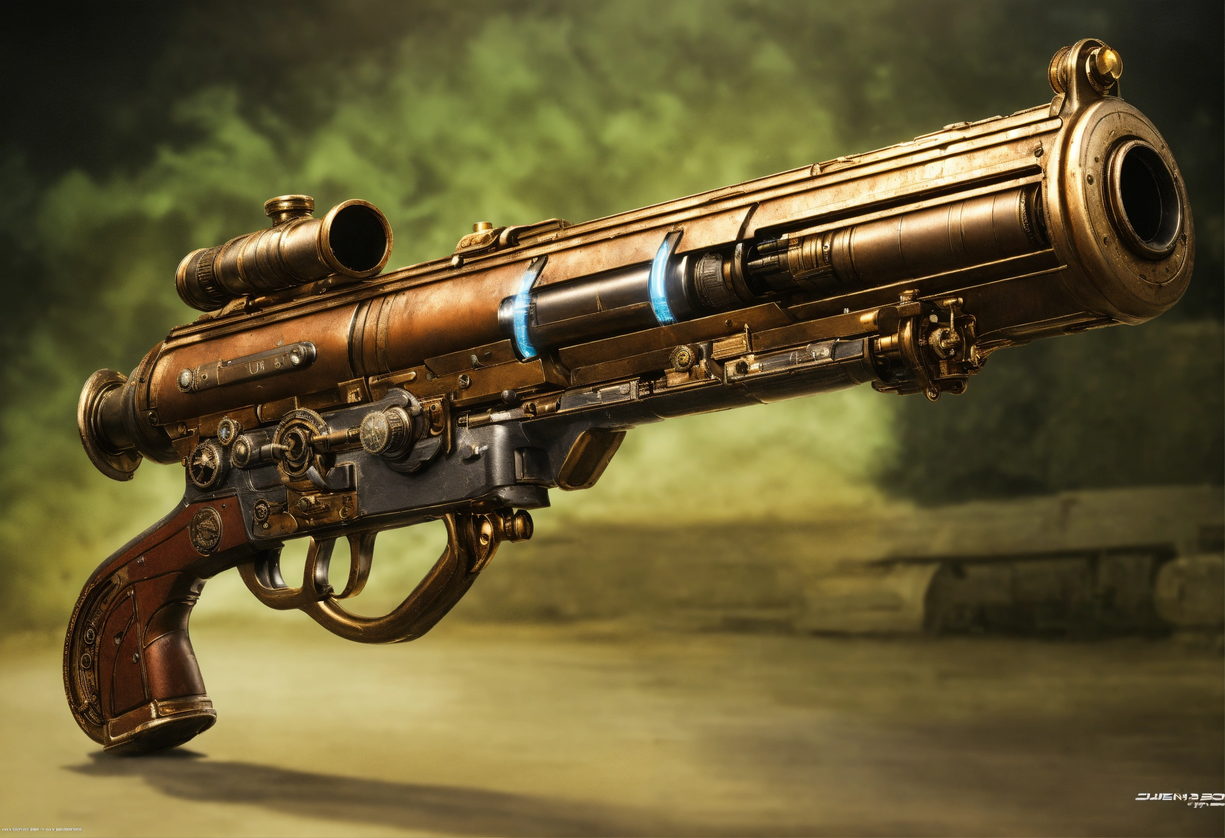 Side view of the full image of a steampunk energy rifle