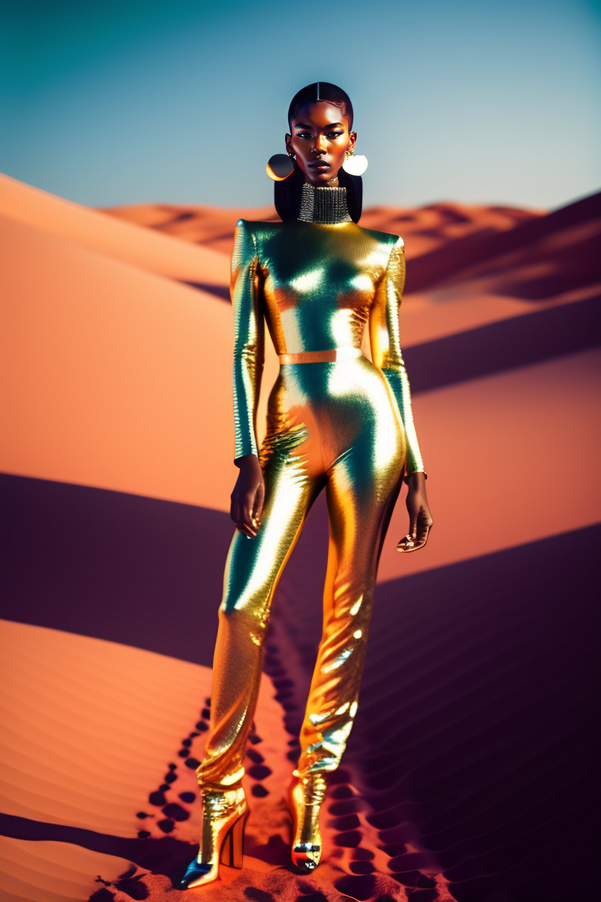 Full body, walking, side view, ultra hd! realistic! marc jacobs fashion magazine photoshoot, futuristic fashion, most beautiful faces in the world, female posing, chrome outfit, surreal landscape, photo in 90's fashion style, medium format, fuji superia 400, iso 400, cinematic, surrealistic, 8k