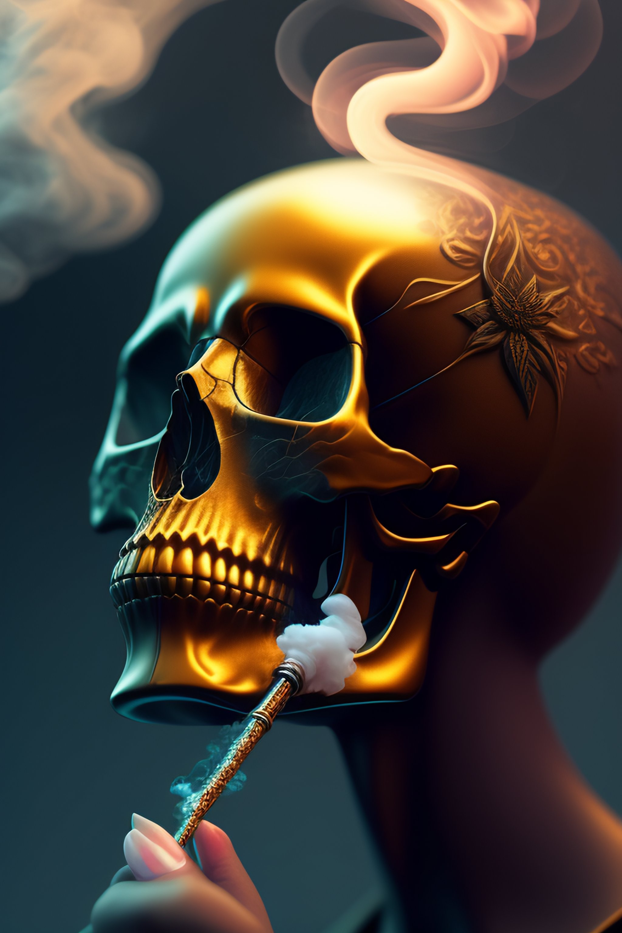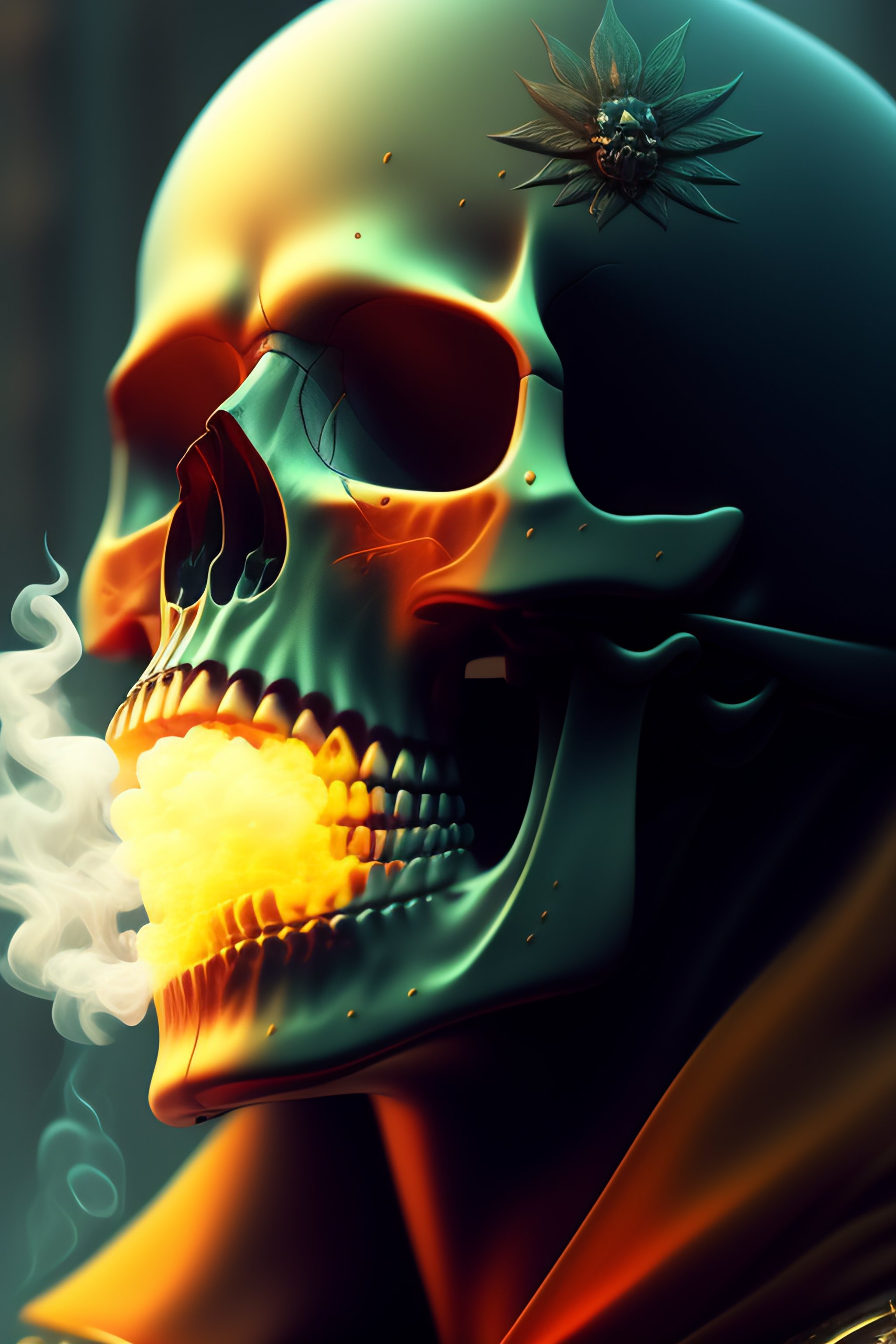 A skull smoking weed, fantasy, intricate, elegant, highly detailed, digital painting, artstation, concept art, smooth, sharp focus, illustration, art by ilja repin