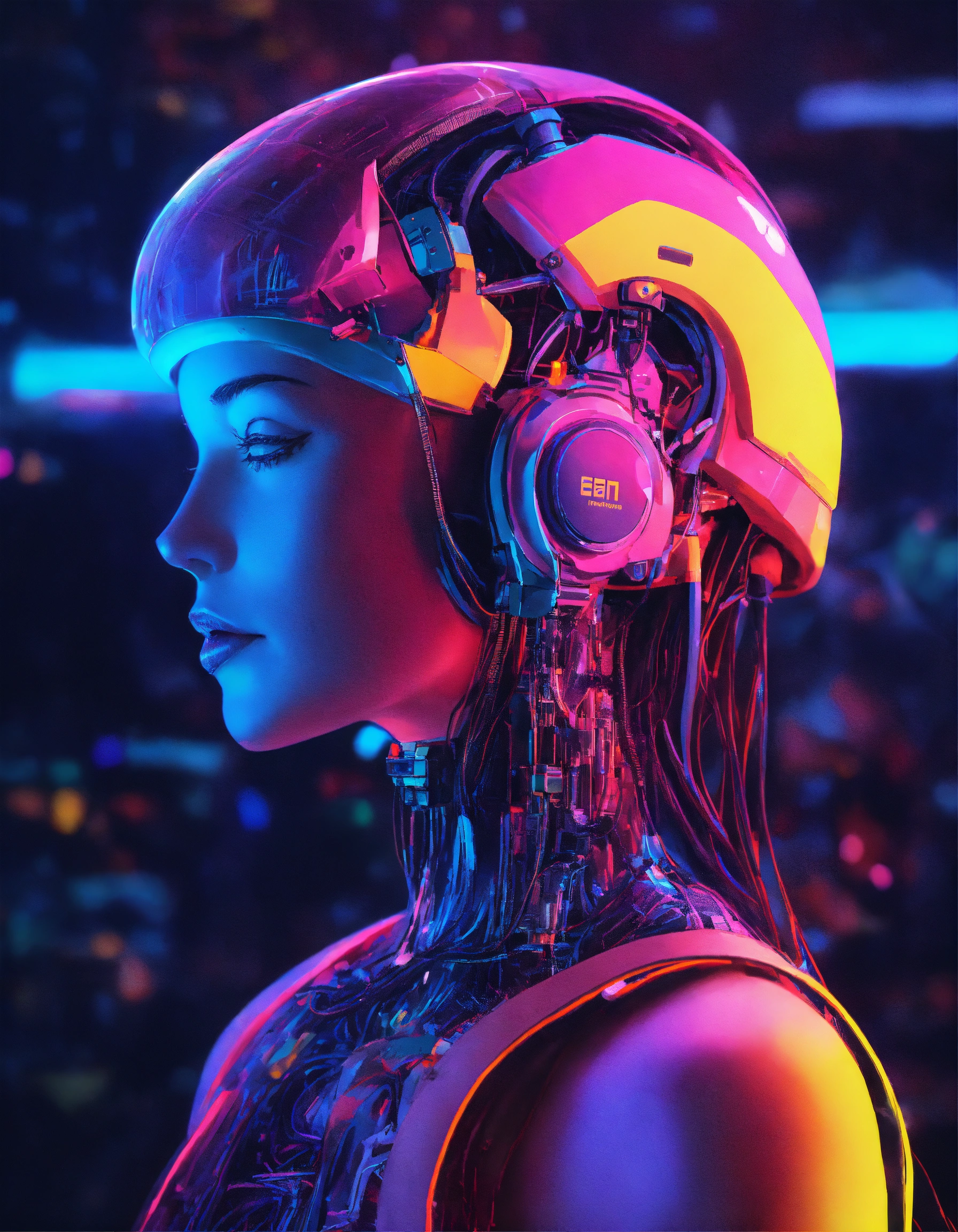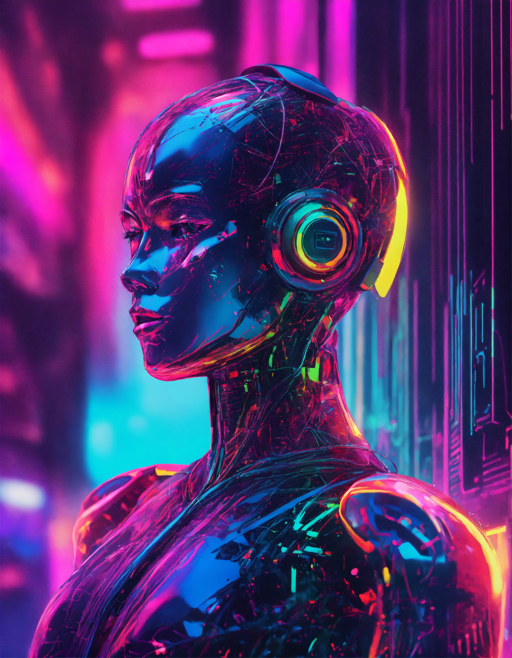 Generate an image that represents the idea of artificial intelligence in a neon vibes