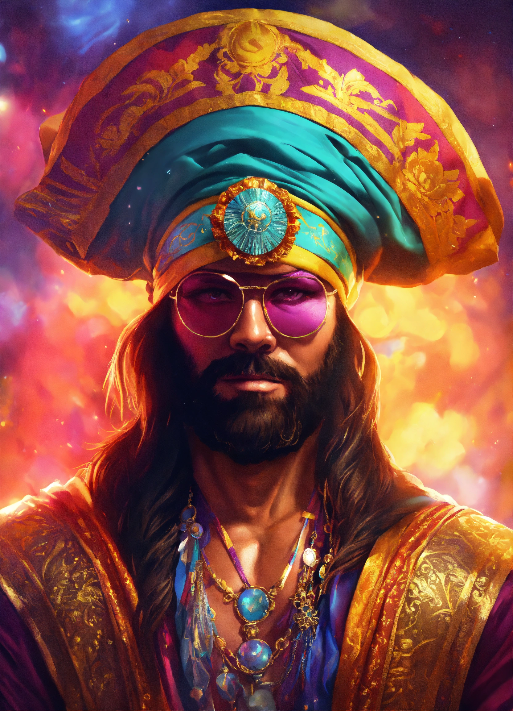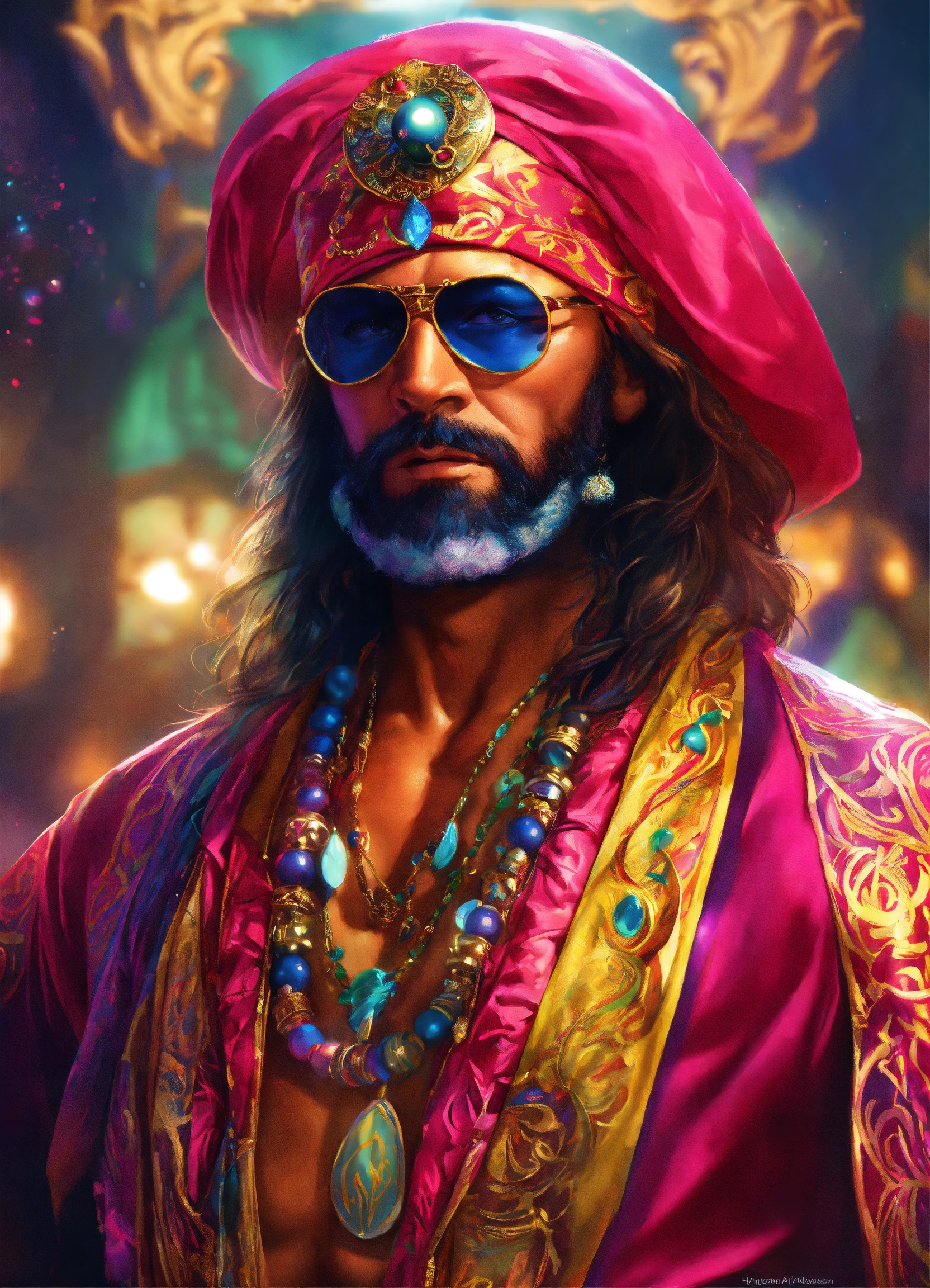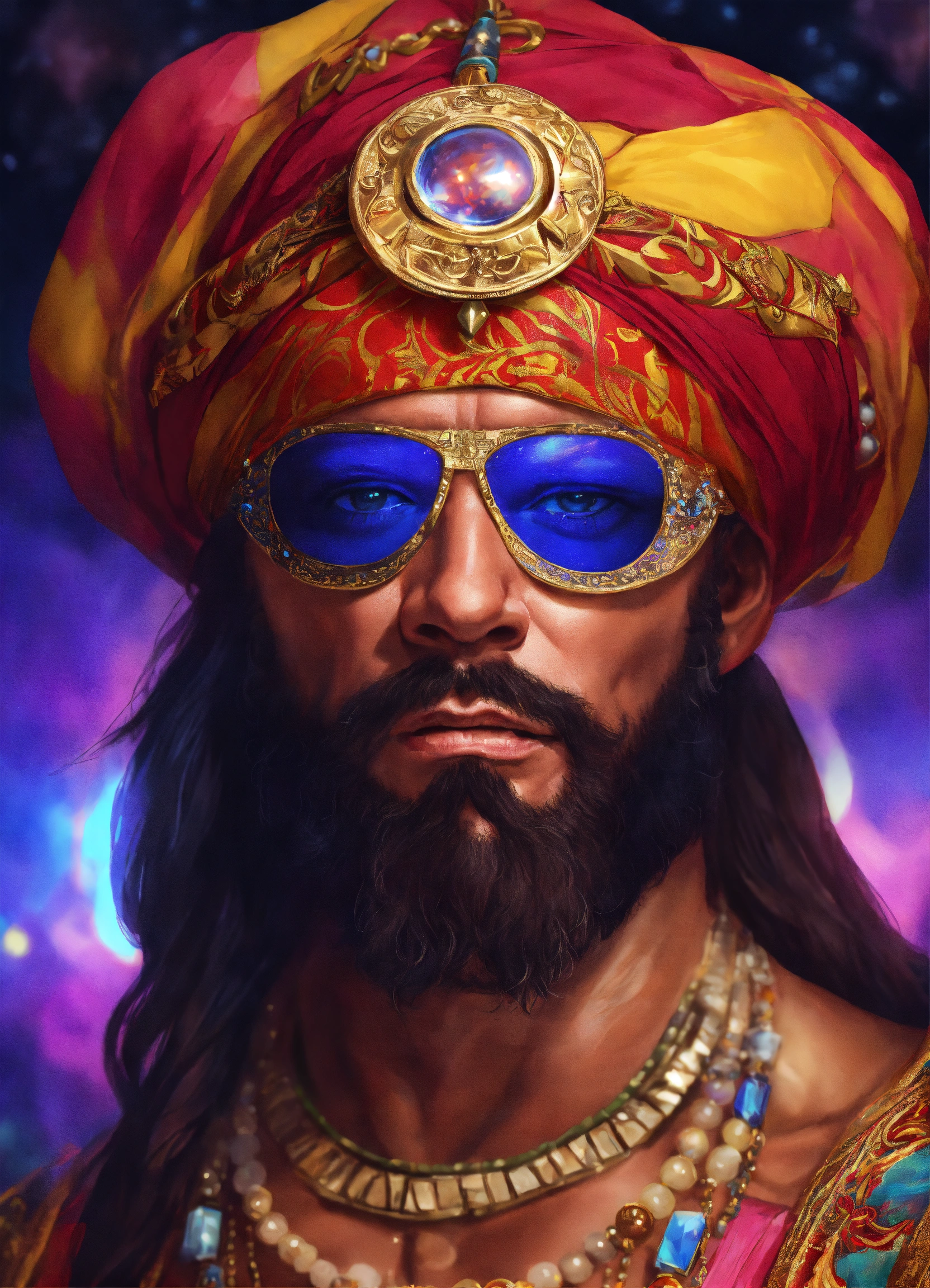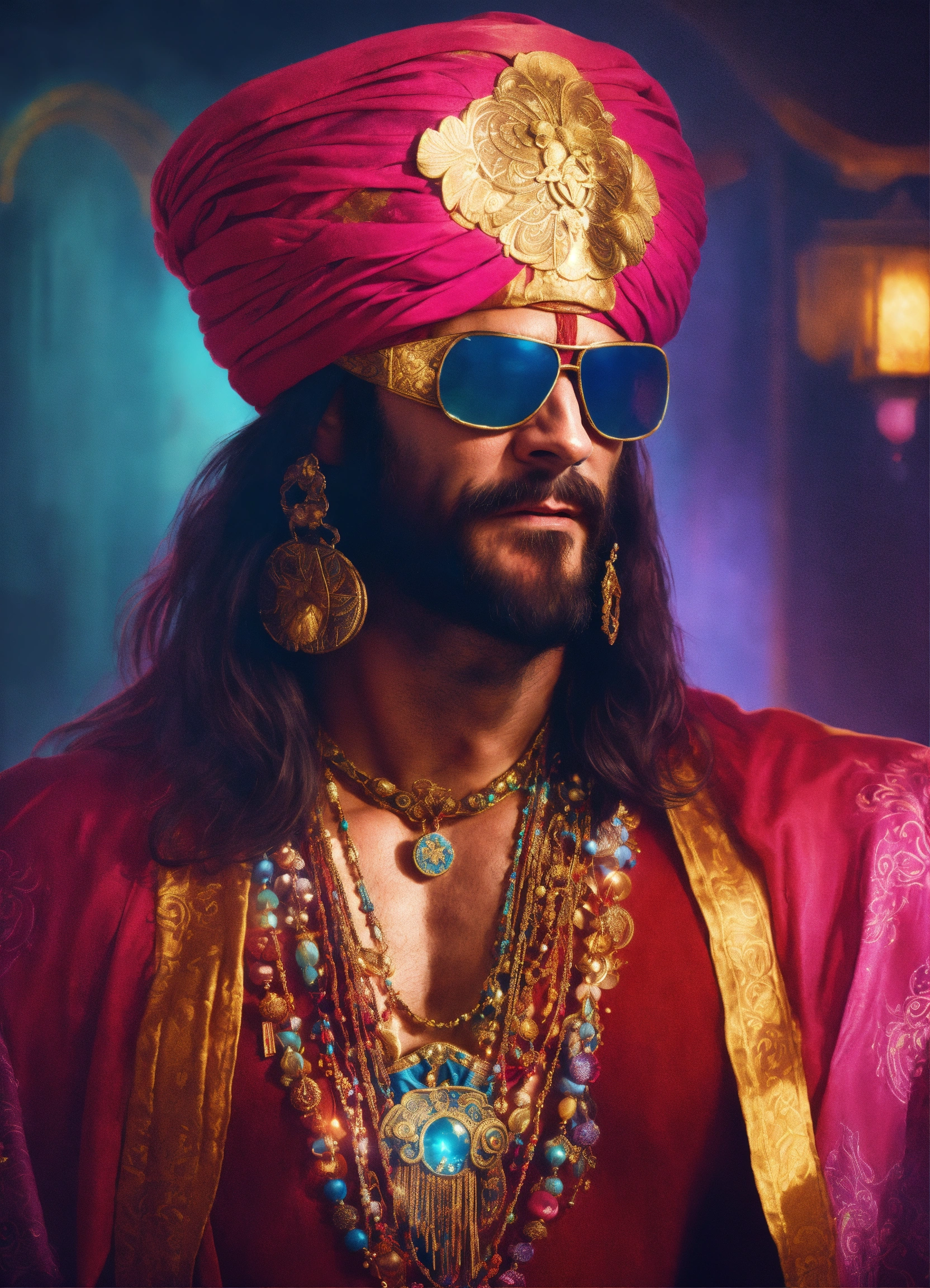 Macho man randy savage, dressed as a fortune teller, wearing an ornate turban, fantasy art, digital painting, hyperdetailed, atmospheric lighting, trending on artstation