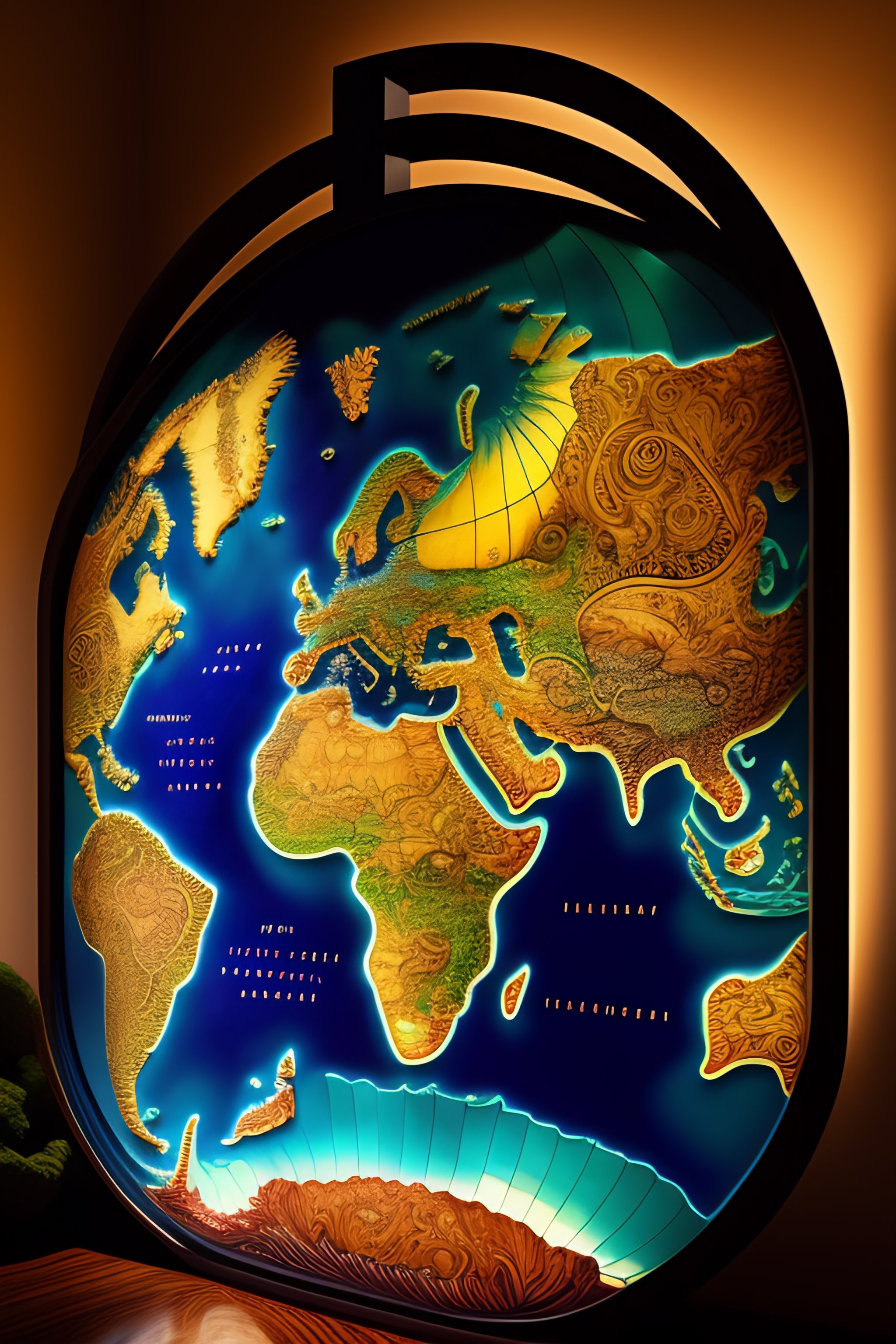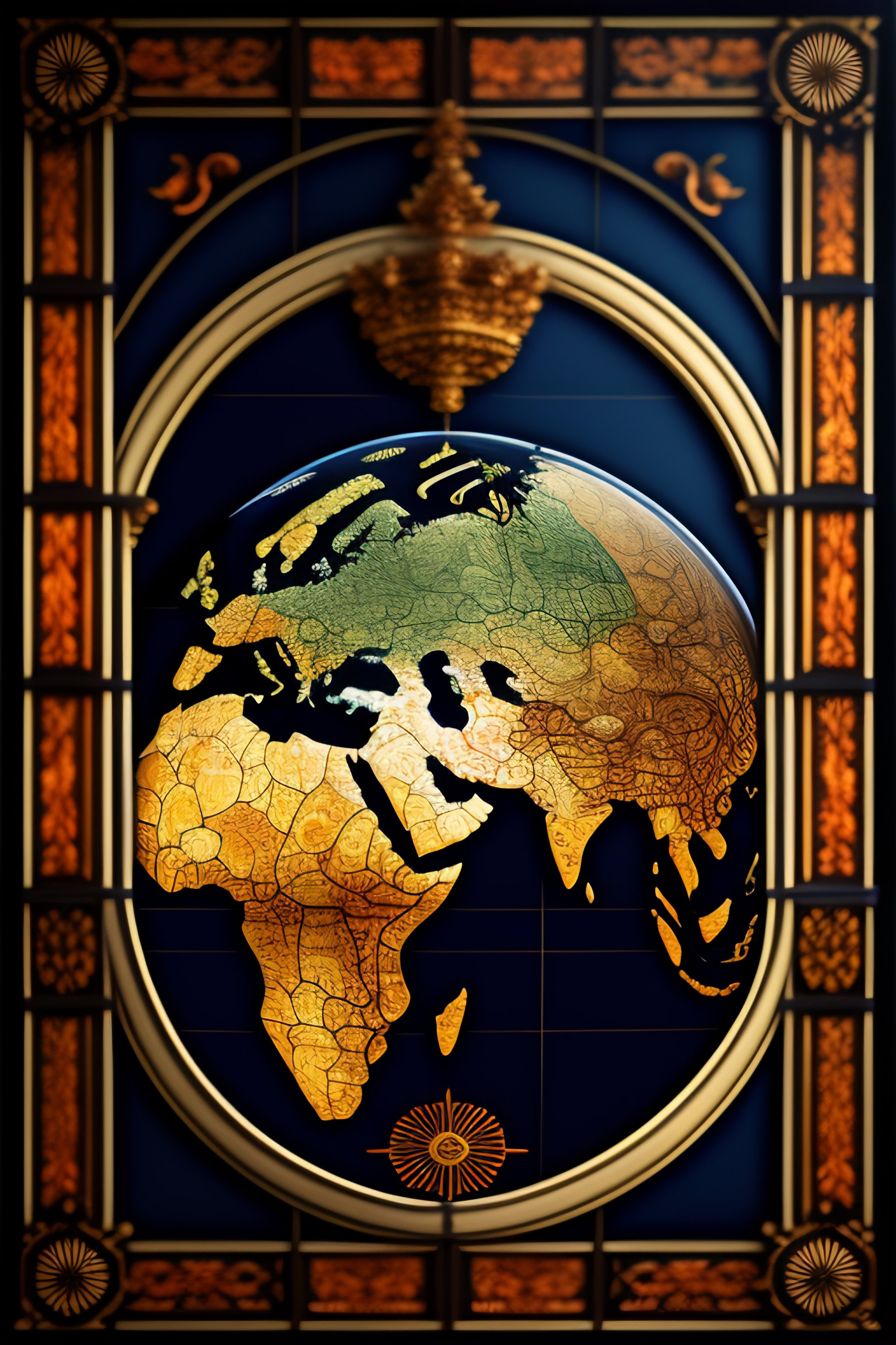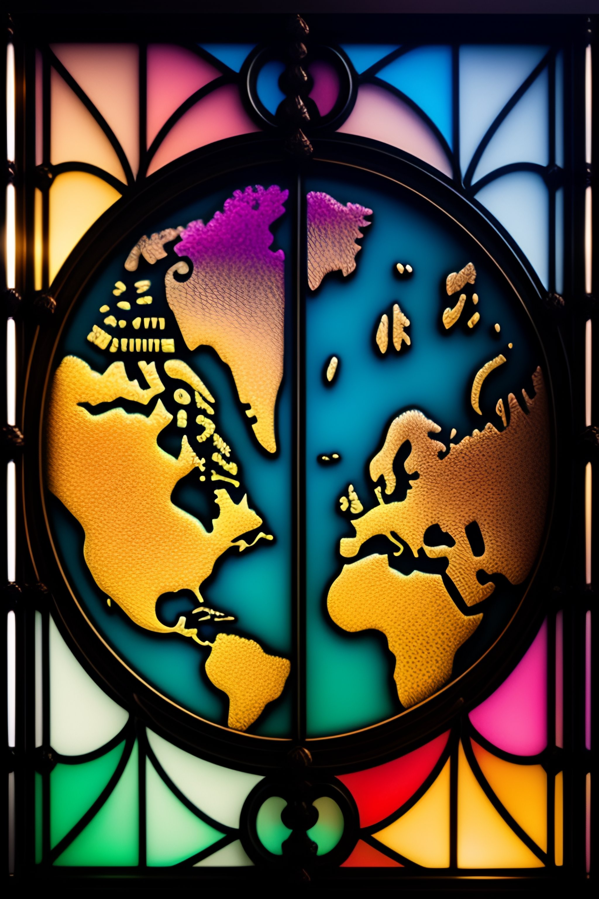 Ornate world map made of stained glass