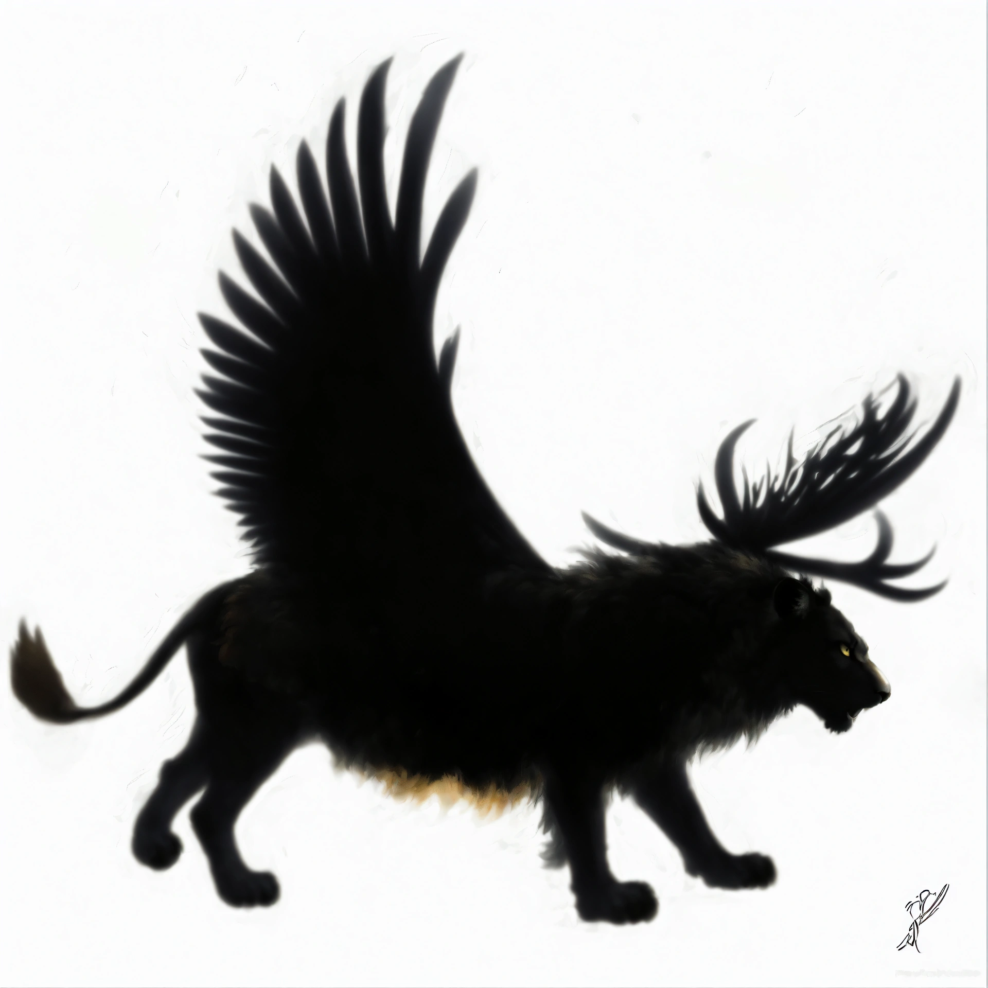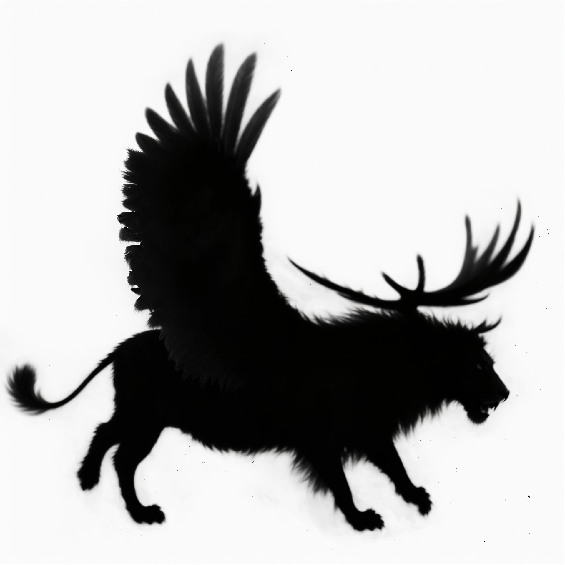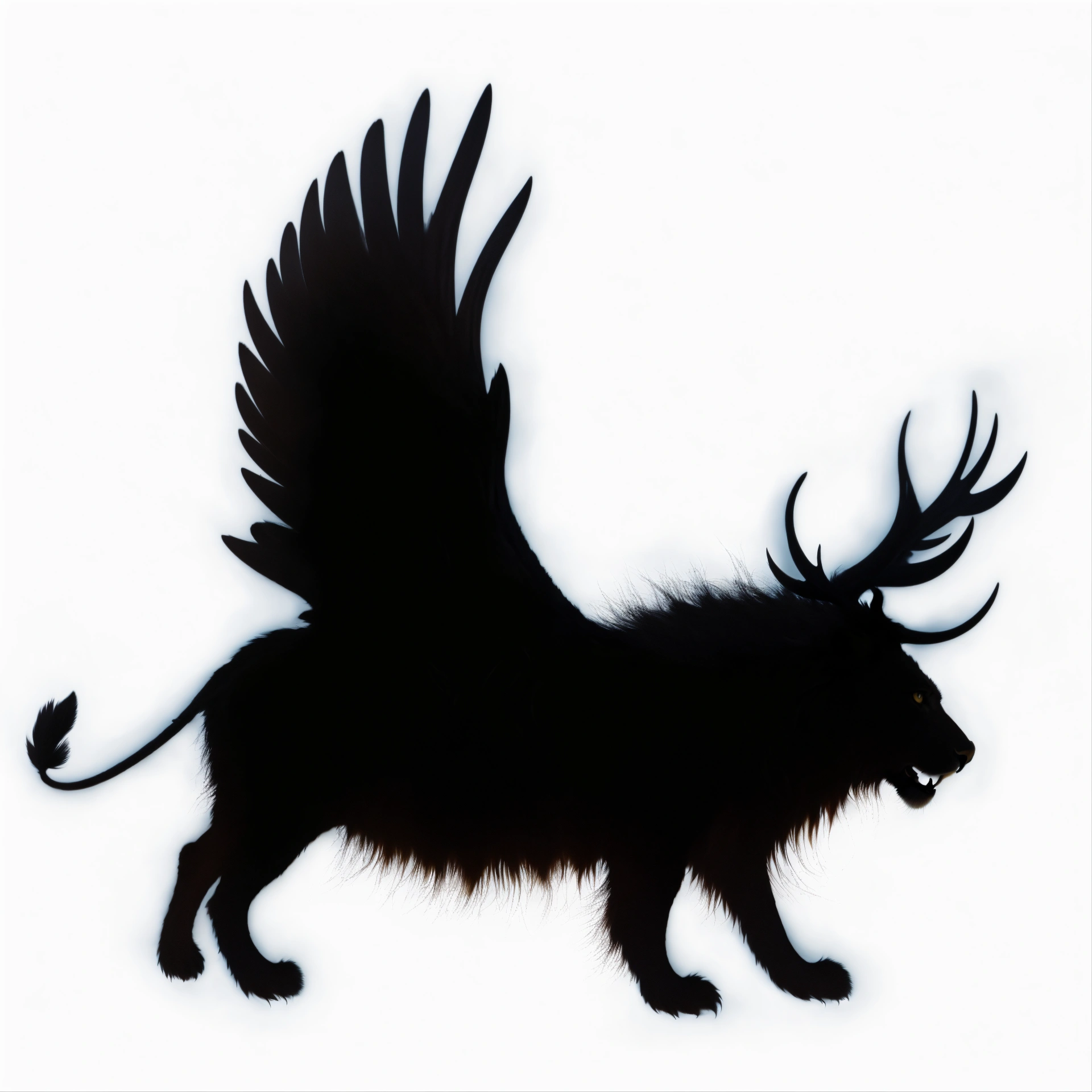 A naturally textured surrealistic fantastical creature composed of a mix of naturally looking and isolated animal attributes (head of a lion, eagle wings, lion tail, deer body, wolf fur), dwelling in a fusion of reality and surrealism, amidst the wonders of nature.